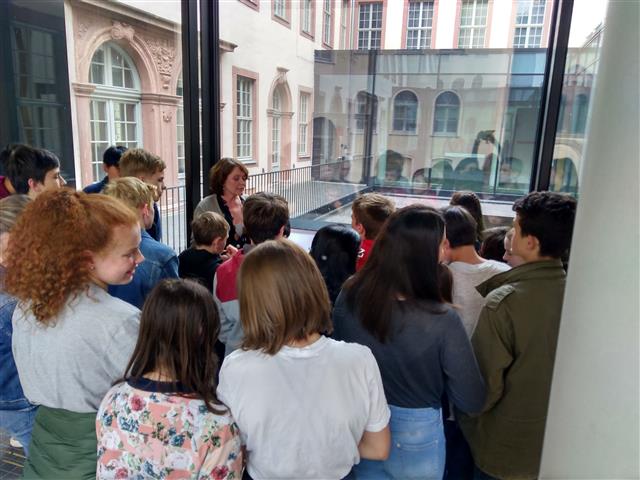 In diesem Zusammenhang unternahmen die 7e einen Ausflug in das mittelalterliche Frankfurt. Eingerahmt wurde die Führung im Historischen Museum in Frankfurt von verschiedenen Vorträgen zu wichtigen historischen Gebäuden außerhalb und innerhalb der Epoche des Mittelalters auf dem Weg zum Historischen Museum am Mainufer, die von den Schülern in Gruppen eigenständig vorbereitet, den Klassenkameraden vor Ort vorgetragen und zum Teil per Quiz direkt im Anschluss abgefragt wurden.