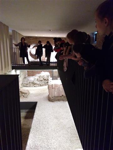 Im Historischen Museum wartete Frau Dolce mit ihrer Führung. Über die Reste der Staufischen Stadtmauer im Museum, vorbei an einem Modell zur karolingischen Königspfalz und einem interaktiven Modell zur Entstehung und zum Ausbau der Stadt Frankfurt erfuhren die Schüler einiges über die für Frankfurt bedeutsamen Kaiser und deren Besonderheiten.