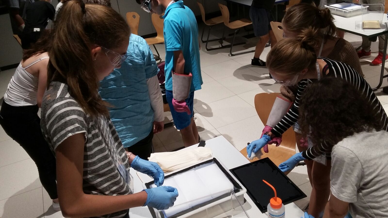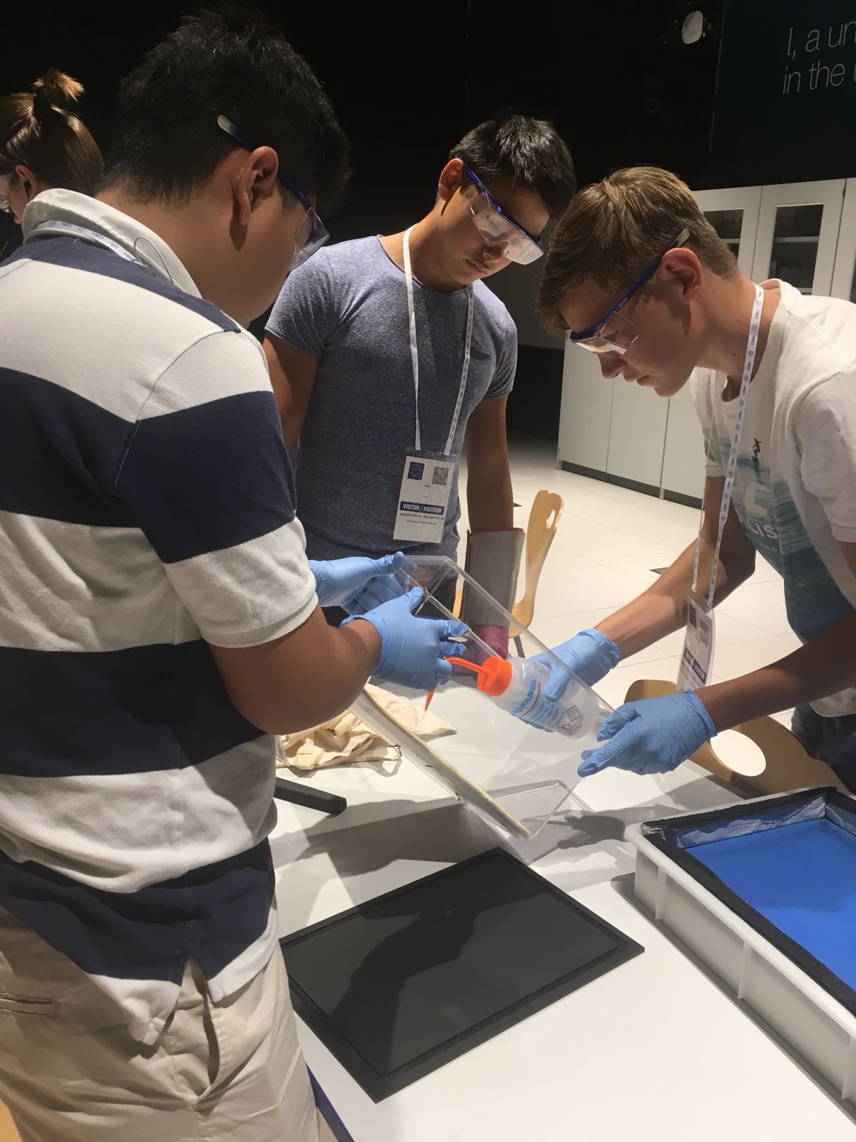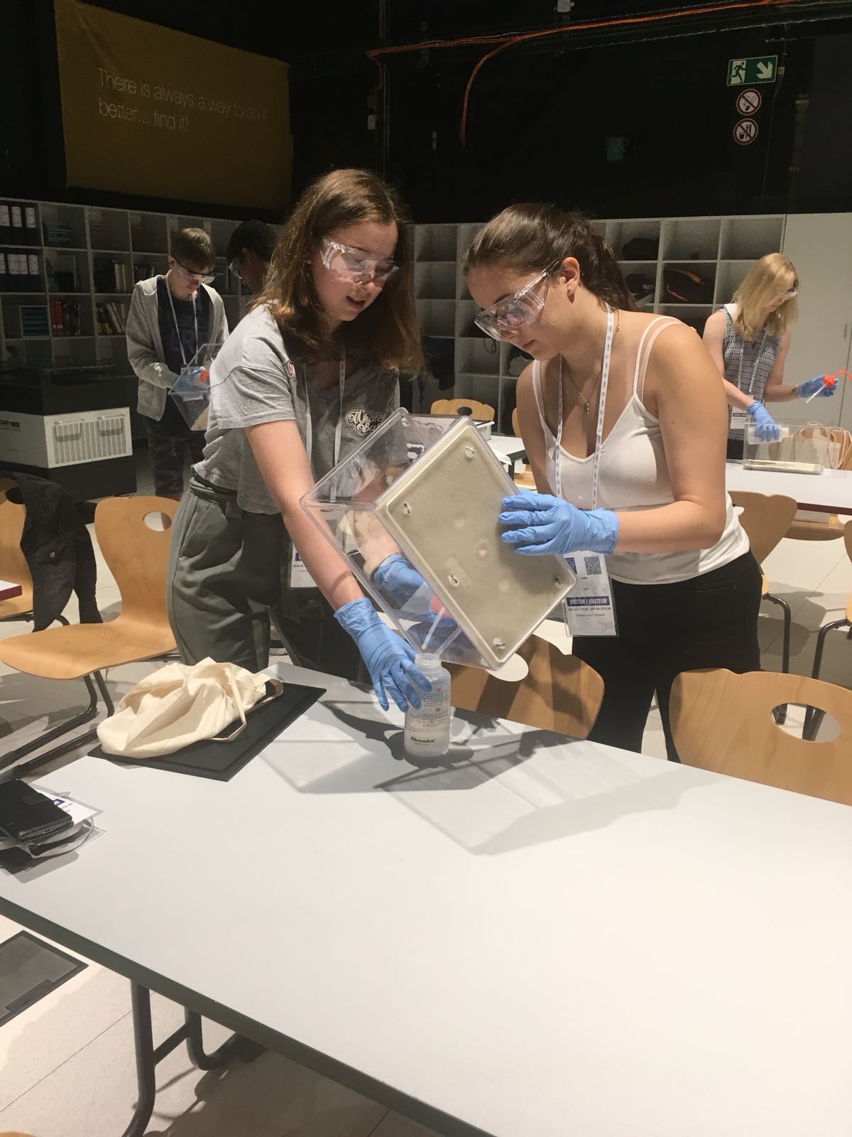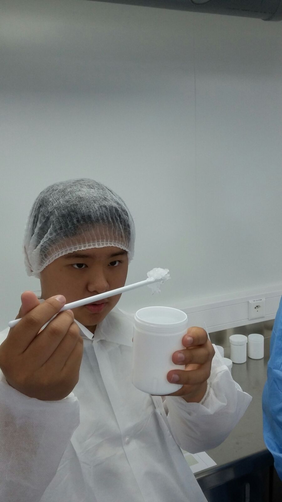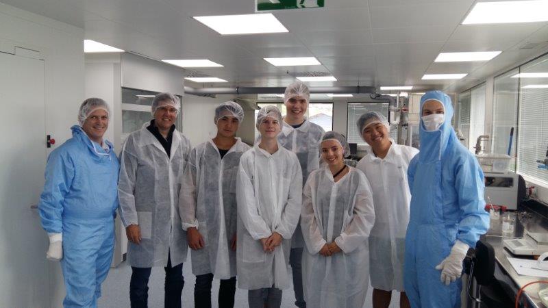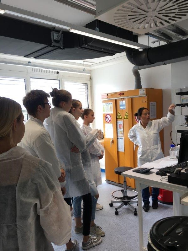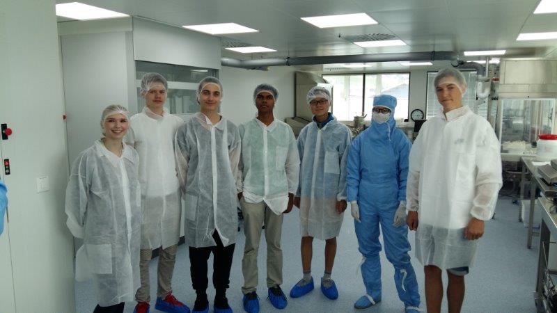 Am nächsten Tag brachen wir zu der pharmazeutischen Firma MERZ auf, in der wir zuerst in Gruppen aufgeteilt und daraufhin an mehrere Stationen geführt wurden. Herr Dr. Pfeil erklärte uns in einem interessanten Vortrag mehr über die Hintergründe der Pharmafirma, die sich von einem kleinen Familienbetrieb zu einem hoch angesehenen Unternehmen mit mehreren Standpunkten entwickelt hatte. Anschließend stellte er uns die dort hergestellten Produkte zur Faltenbekämpfung vor. Man unterscheidet hier zwischen einem Arzneimittel namens „Xeomin“ und dem Filler „Belotero“. „Belotero“ füllt die Falten unter der Haut auf, wohingegen „Xeomin“ den betreffenden Muskel entspannt, sodass die Falten temporär verschwinden. Nach diesem theoretischen Teil und einem von der Firma bereitgestellten Mittagessen ging es nun mit dem praktischen Part weiter. Mit Schutzkleidung ausgestattet durften wir ein Labor betreten, welches für uns einen Reinraum simulieren sollte. Dort konnten wir Großteile der Herstellung des gelartigen Fillers „Belotero“ selbst ausführen. Abschließend wurde uns die Funktionsweise  spezieller Geräte erklärt und wir erhielten einen Einblick in die Arbeit der Mitarbeiter.