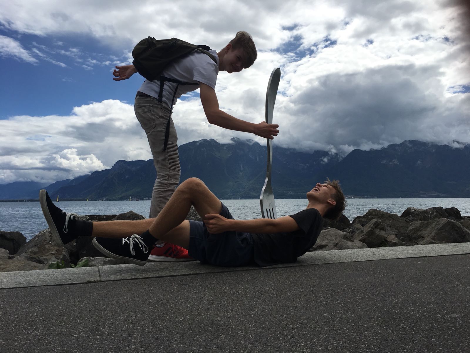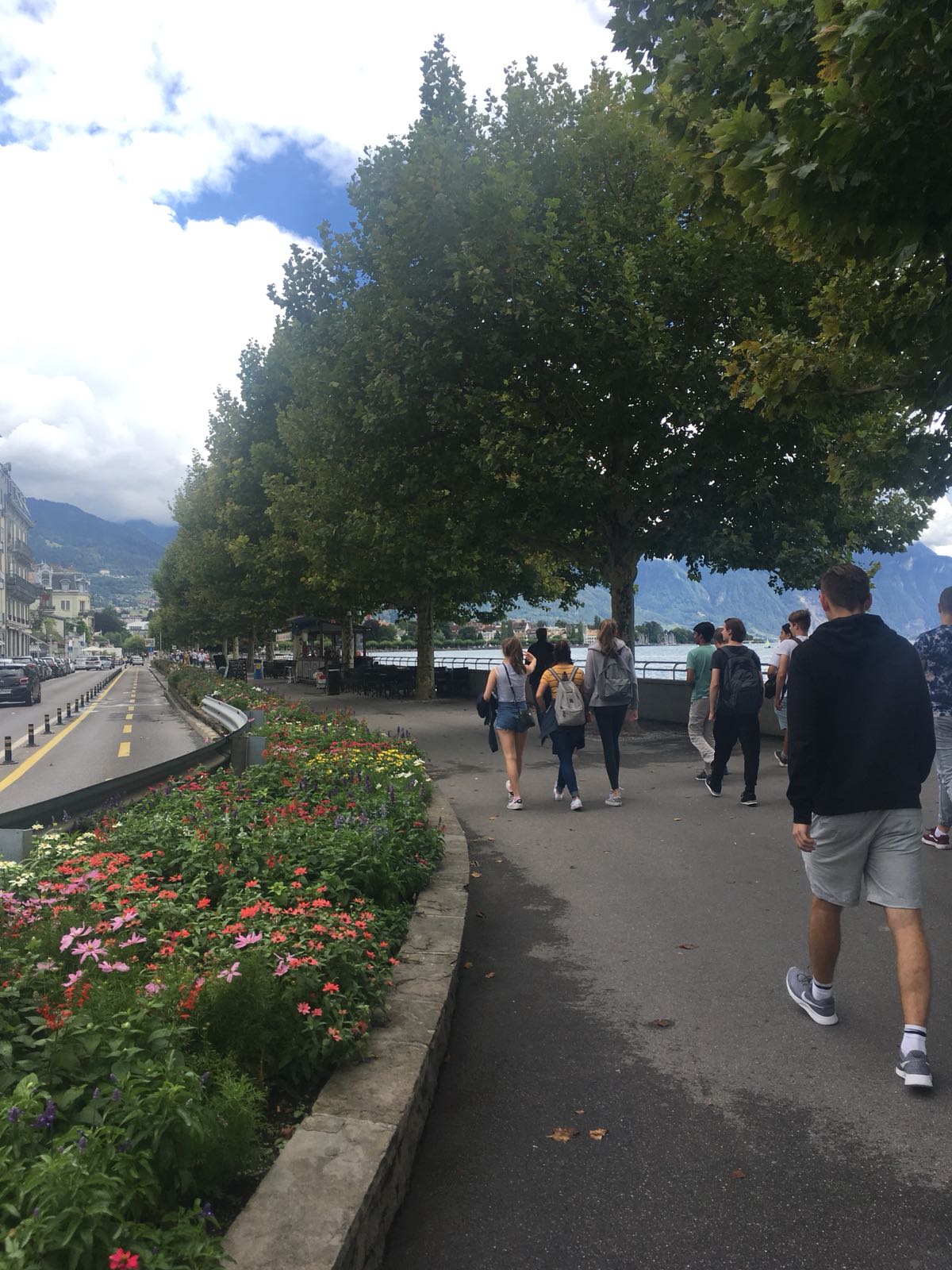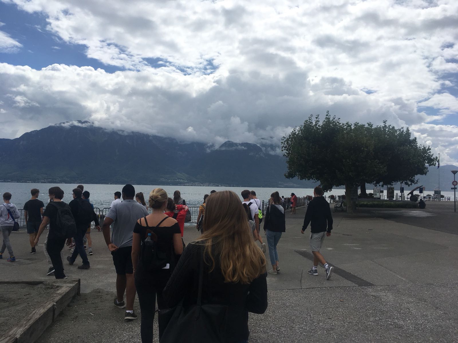 Nachmittags pausierten wir an der malerischen Seepromenade in Vevey, bevor wir zu einem weiteren Programmpunkt antraten: der Besichtigung des Interaktiv-Museums „Le Nest“ von Nestle. Mit Audioguides ausgestattet wurden wir durch detailreich eingerichtete Räume geführt, in denen wir mehr über Henri Nestle erfuhren. Ihm war es als erstem gelungen, einen Muttermilch-Ersatz namens „Henri Nestle’s Kindermehl“ industriell herzustellen, mit dem man Säuglinge, die normale Muttermilch nicht vertrugen, füttern konnte. Auch der interaktive Aspekt kam nicht zu kurz: Im letzten Teil des Museums gab es zahlreiche Lerneinheiten, die von technischen Gadgets, wie beispielsweise Virtual-Reality-Brillen, unterstützt wurden. Abends kehrten wir müde von diesem eindrucksvollen Tag in die Jugendherberge zurück. Den verbleibenden Abend nutzte ein Großteil der Gruppe, um Beachvolleyball zu spielen. Andere machten sich auf in die Innenstadt oder zum nahegelegenen See.