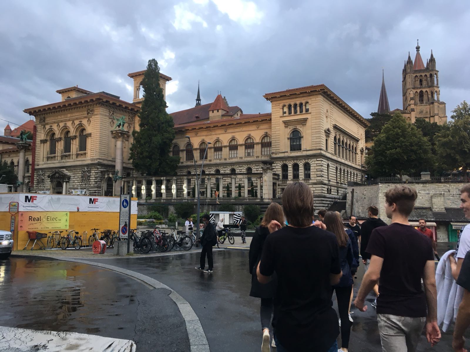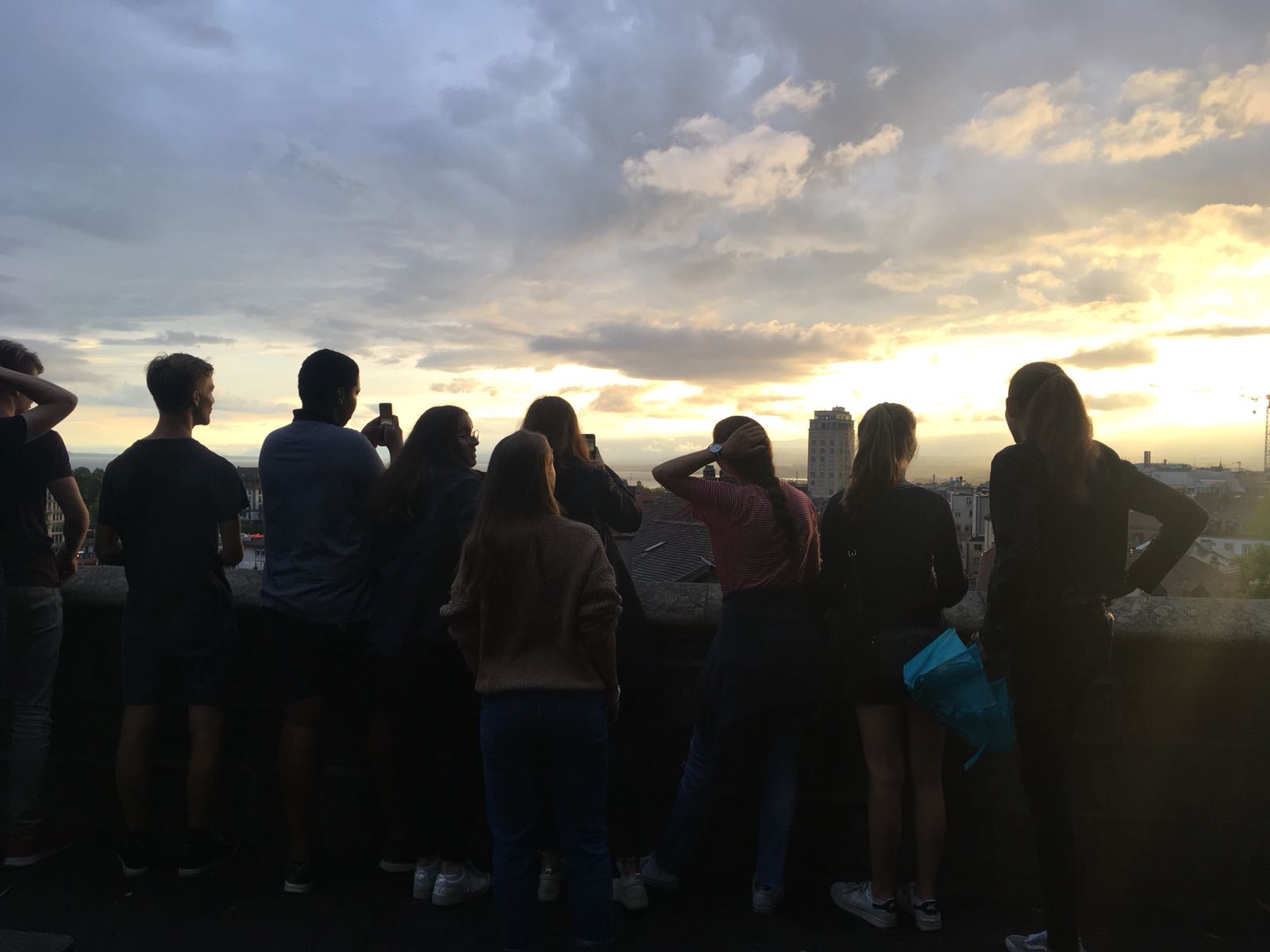 Nach achtstündiger Busfahrt trafen wir in unserer Jugendherberge in Lausanne ein, von der wir allerdings schon nach dem Abendessen wieder aufbrachen: Gemeinsam fuhren wir in die wunderschöne Lausanner Innenstadt und spazierten zum Hauptturm der Kathedrale. Von der hoch gelegenen Aussichtsplattform aus hatten wir einen tollen Blick auf die gesamte Stadt, den Genfer See und genossen gemeinsam den Sonnenuntergang.