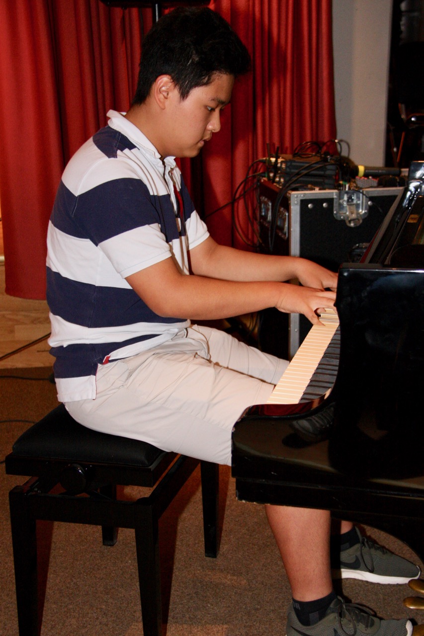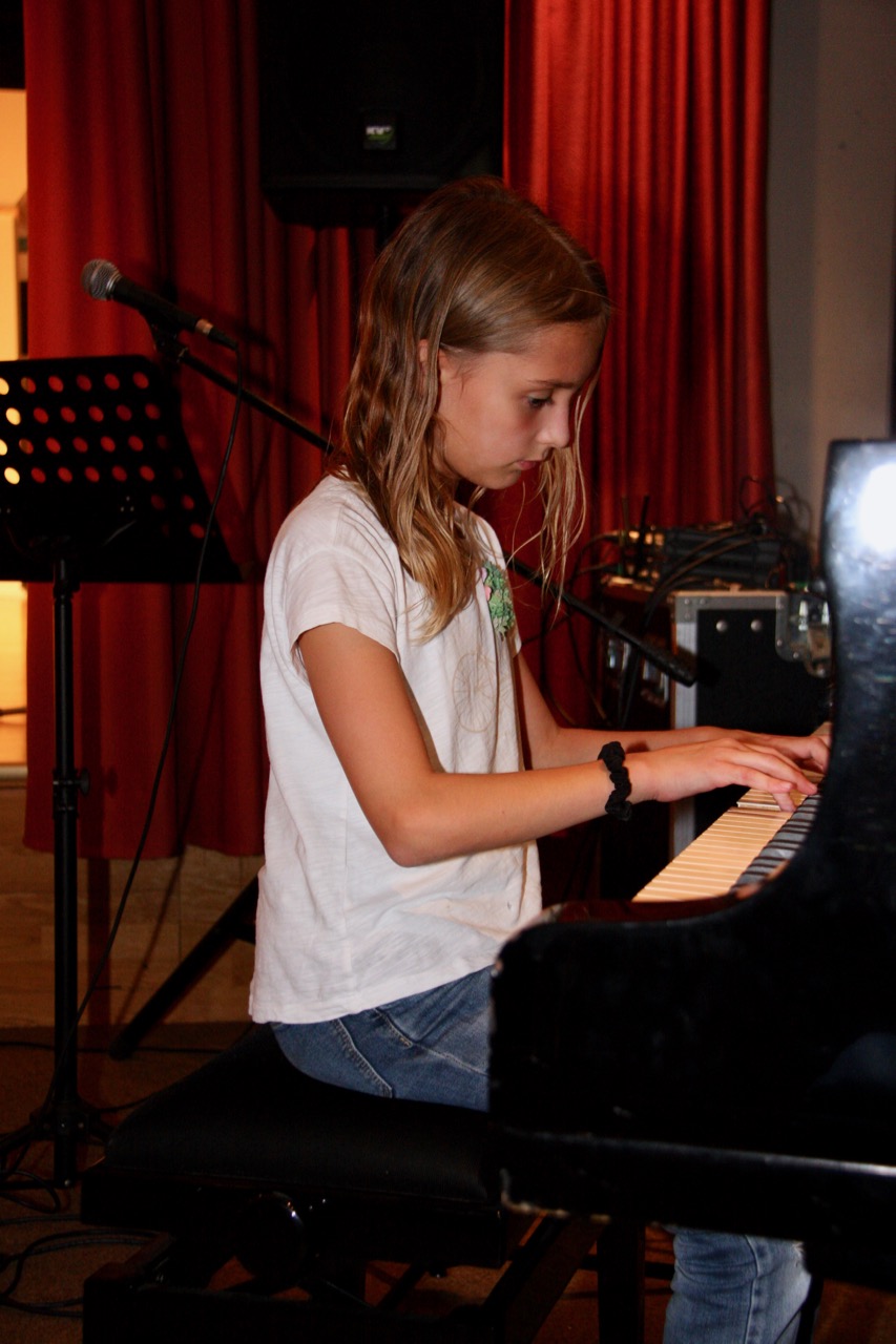 Clara und Uyara aus der 5f zeigten ihre Gymnastik-Künste, Tu-Yen aus der 5f sang, Maximus aus der 6a sang und begleitete sich dabei selbst auf der Gitarre, Tim aus der 6b spielte Klavier, Jule aus der 6b spielte Gitarre, Leonie und Michaela aus der 6d tanzten, Taqwa, Sung-Hee und Michaela aus der 6d sangen gemeinsam, Elias aus der 6e spielte ein selbst zusammengestelltes Medley auf dem Klavier, Kasia aus der 6e spielte Gitarre, Filippa aus der 7d sang, Johanna aus der 7g sang unter Klavierbegleitung von Ajin aus der 7g, Moritz aus der 8f und Jannis aus der 8g zeigten Kartentricks und Taehoon aus der Q1 spielte ein selbst komponiertes Stück auf dem Klavier – eine wahrhaft vielseitige Kostprobe der Talente, die an unserer Schule oftmals unentdeckt bleiben.