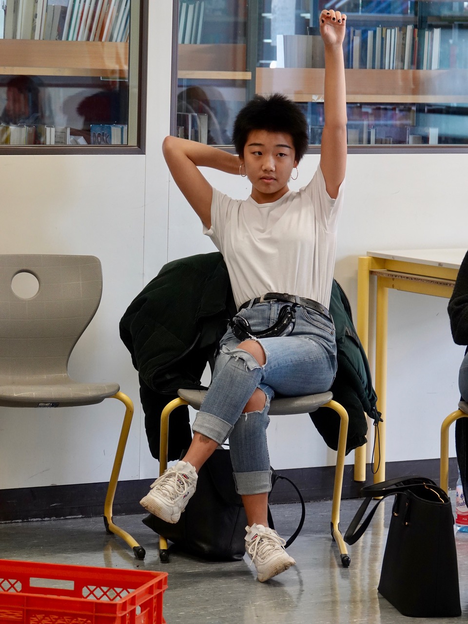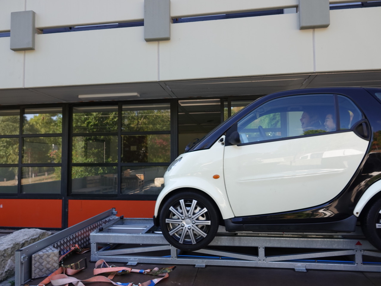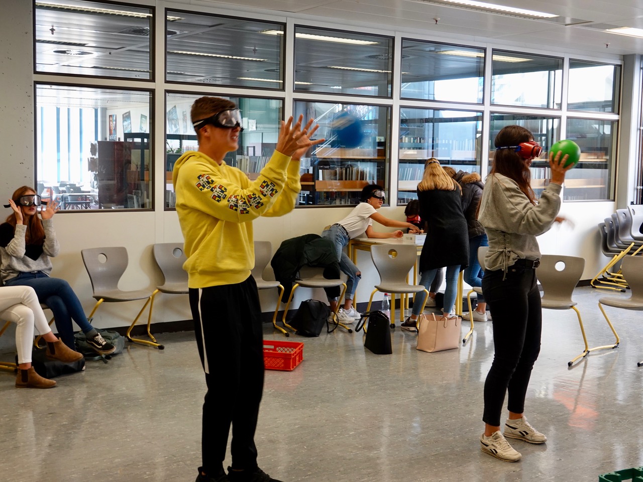 Nach einer allgemeinen Einführung für die gesamte Jahrgangsstufe mit Frau Klaus und Herrn Neumeister von der Hessischen Polizei besuchten die Schülerinnen und Schüler in Gruppen einzelne Stationen: Etwa den Rauschbrillenparcours, eine Trunkenheitssimulation mit eigens präparierten Brillen, die den Schülern sehr schnell deutlich machte, wie schnell man die Kontrolle über sicher geglaubte Fähigkeiten verlieren kann. Im Überschlagssimulator lernten die Schüler, sich aus einem Fahrzeug zu befreien, das bei einem Unfall auf dem Dach landete. Bei der Aufprallsimulation saßen die jungen Leute – angeschnallt – in einem von Herrn Fischer und seinen Kollegen von der Landesverkehrswacht präparierten Smart, der auf einem Gurtschlitten mit einer Geschwindigkeit von etwa 10 Stundenkilometern schlagartig zum Stehen gebracht wurde. Die kläglichen Reste eines Unfallwagens gleich daneben demonstrierten eindrücklich, wie es aussehen kann, wenn es mit höheren Geschwindigkeiten zum Crash kommt. Weiter ging es mit Sofortmaßnahmen am Unfallort, die Jörg Libbert vom Deutschen Roten Kreuz an einem Dummy anschaulich demonstrierte. Auch die direkte Kommunikation mit Menschen, die Suchtproblematik am eigenen Leibe erfahren haben und nun anderen Betroffenen helfen, war an diesem Vormittag in Zusammenarbeit mit Prof. Dr. med. Krakow, Chefarzt an der Asklepios Klinik Falkenstein und der Gruppe „Die Fleckenbühler“ möglich. Thema waren auch sogenannte „Booster“, mitunter amphetaminhaltige Präparate, die oft in Fitnessstudios angeboten werden und zu schweren gesundheitlichen Schädigungen führen können.