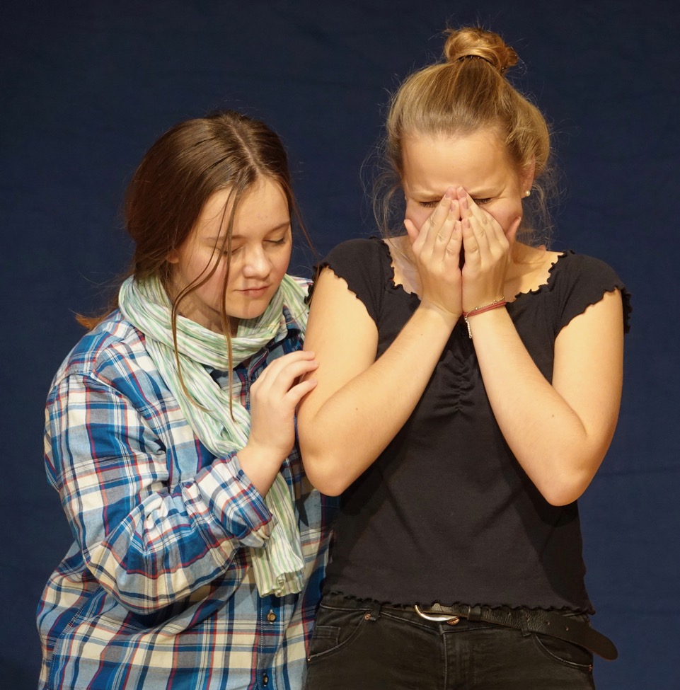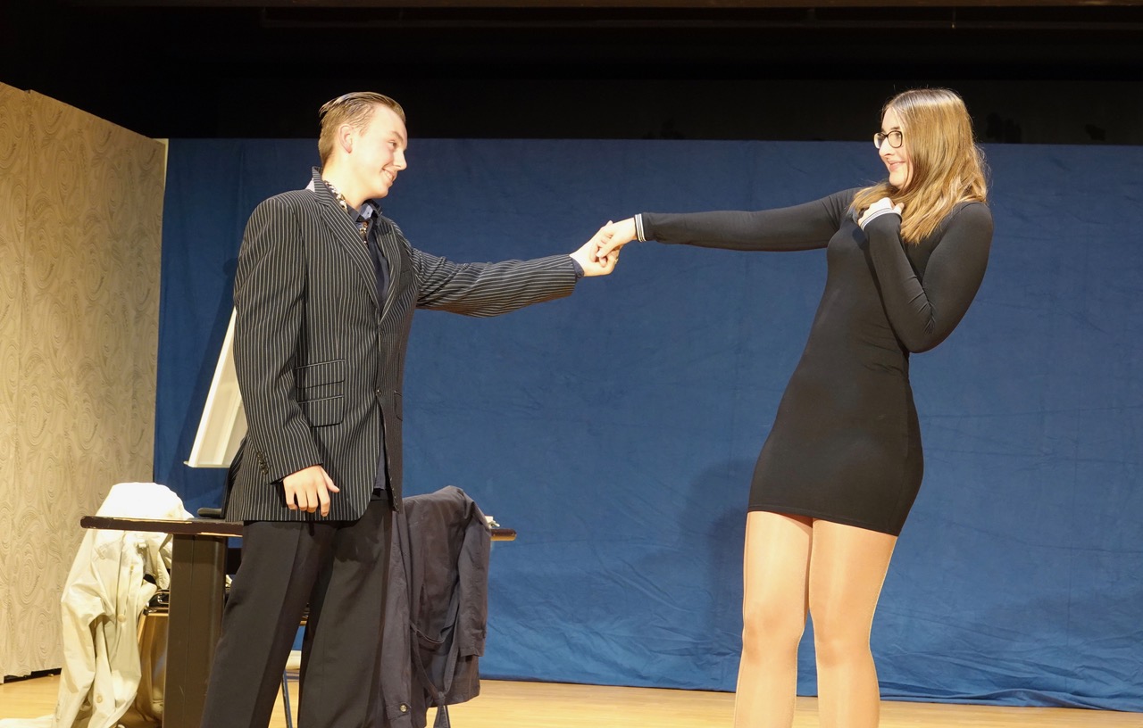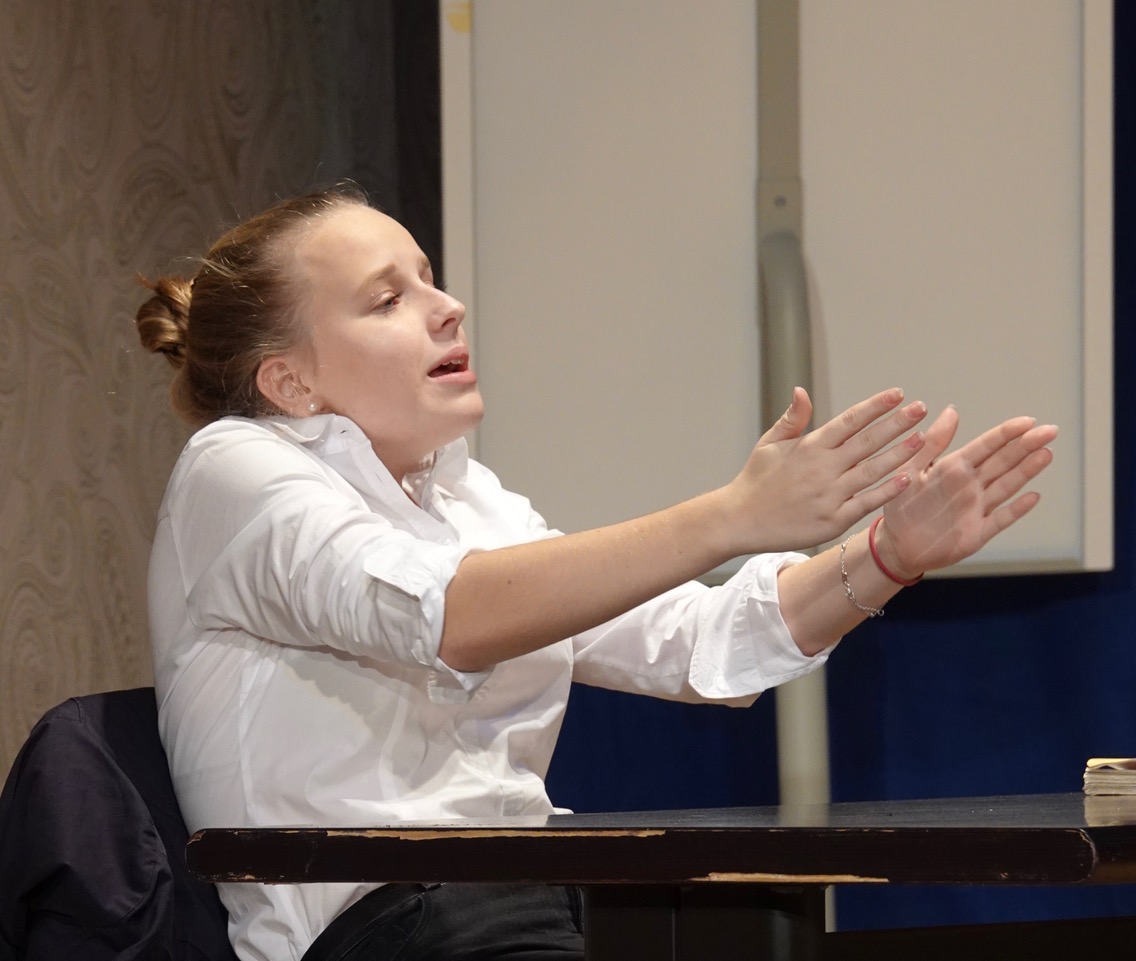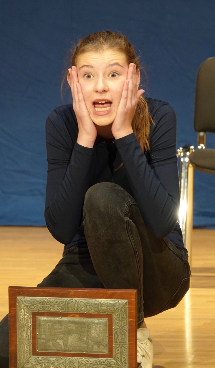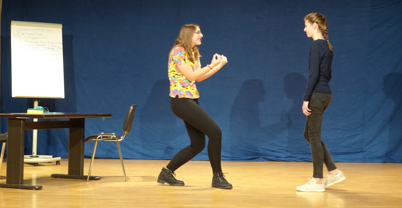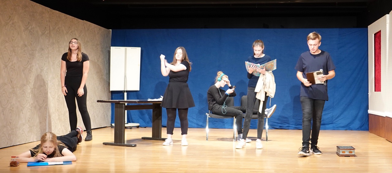 „Gretchen 89ff“: der ungewöhnliche Titel geht auf die Reclam-Ausgabe von Goethes Faust I zurück. Auf Seite 89 folgende findet sich die sogenannte Kästchenszene („Margarethe, ziemlich durcheinander“), jene Szene, die in Lutz Hübners Stück von diversen Regisseuren und Schauspielerinnen geprobt wird und gleichsam den Aufhänger für eine überaus unterhaltsame Charakterstudie im Theatermilieu bildet. Hübner zeigt Schauspielerinnen, wie man sie kennt und liebt, pointiert, mitunter auch etwas überspitzt charakterisiert. Da sind unter anderem die Diva („Herrgottnochmal, in diesem Kaff ein Taxi zu kriegen scheint ja ein Ding der Unmöglichkeit zu sein.“) oder die Anfängerin („Guten Morgen, Herr Riedel, ich hab da ... ich hab da einige Schwierigkeiten mit der Szene ...“) aber auch Regisseur-Typen, wie sie von Schauspielerinnen und Schauspielern geliebt – oder gefürchtet – werden. Da gibt es den Freudianer, den Streicher, den alten Haudegen, den Schmerzensmann oder auch das wianerlnde, durch und durch faunische Tourneepferd, gleichsam ganz oben auf der #MeToo-Kandidatenliste. Letztere Rolle war in dieser Produktion der Theater-AG des Taunusgymnasiums in der Inszenierung von Stefanie Berg mit Maximilian Beck grandios besetzt – nicht minder virtuos spielte Henriette Hammerschmitt den Konterpart, eine Schauspielerin, die sich in der schier ausweglosen Notlage befindet, den aufdringlichen Annäherungsversuchen des Regisseurs ausweichen zu müssen, ohne ihn zu verprellen. Alle Darsteller im Stück waren mit mehreren Rollen betraut, so auch Mara Damberger (Anfängerin, Schauspielerin, Requisiteurin), Josefine Jungnickel (Regisseurin, Diva, Schauspielerin), Katharina Miers (Schauspielerin, Hospitant), Lorena Wack (Schauspielerin, Schmerzensmann) und Laura Reul (Streicherin, Schauspielerin). Plastisch charakterisierten die Akteurinnen Hübners Figuren, das mitunter nicht ganz einfache „Umschalten“ zwischen den verschiedenen Partien meisterten sie brillant. Begeisterter Applaus belohnte einen sehr unterhaltsamen Abend mit tollen schauspielerischen Leistungen. Johannes Vogel und Esrom Berhane ließen die Dinge im rechten Licht erscheinen.