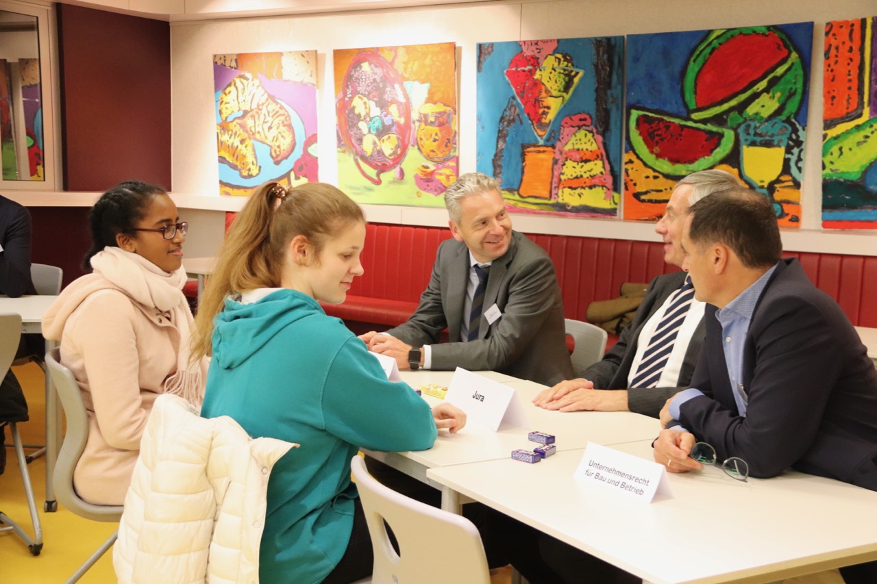 Frau Herbst, Studienleiterin am Taunusgymnasium, sah den Abend als gelungen an und freute sich über die Bereitschaft der Führungskräfte, sich trotz ihres vollen Terminkalenders Zeit für den Nachwuchs zu nehmen. Auch seitens der Schülerinnen und Schüler wurde das Angebot positiv bewertet: Durch die persönlichen Gespräche könne man tatsächlich Antworten auf ganz spezifische Fragen erhalten – von Personen direkt aus der Praxis, die sich in ihrer Branche bestens auskennen.