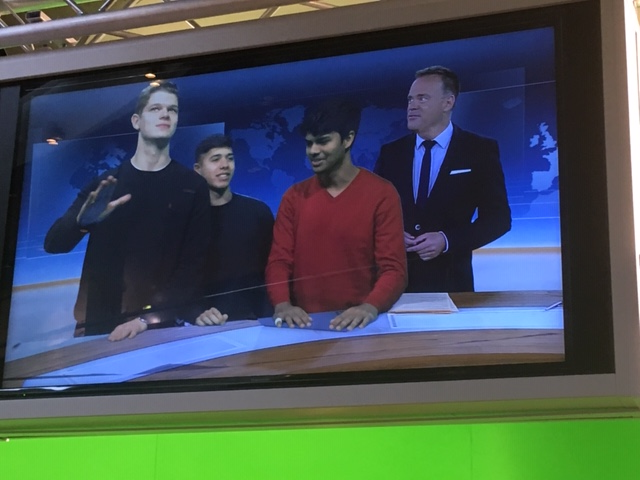 Wir wurden auf dem Lerchenberg erwartet und bekamen zunächst gezeigt, wie eine Sendung, in diesem Fall das „heute-Journal“, entsteht. Wir staunten, wie viele redaktionelle Entscheidungen und Vorarbeiten von Journalisten in der ganzen Welt nötig sind und wie immens der Zeitdruck ist, um das „heute-Journal“ täglich zu produzieren. Später konnten wir uns Regieräume und ein Fernsehstudio (und natürlich die Torwand des „Sportstudios“) genauer ansehen. Dabei bekamen wir unsere zahlreichen Fragen rund um Medien, Informationsauswahl, Sprache im Fernsehen und technische Voraussetzungen beantwortet. So konnten wir mit einem „neuen“ Blick auf das, was man im Fernsehen sieht und hört, nach Hause fahren.