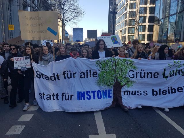 Alle Schülerinnen waren begeistert von der positiven und politischen, aber keineswegs aggressiven Stimmung auf dem Marsch durch die Stadt. Parolen wie „What do you want?“ - „Climate justice!“ „When do you want it?“ - „NOW“ und die Gleichsetzung von Kohle aus Bank und Mine als herzlosen Vertretern und Zeichen für die Gleichgültigkeit gegenüber unserem Planeten wurden untermauert von eindringlichen Plakaten, die auf die Folgen der Massentierhaltung aufmerksam machten, den Wunsch nach einer plastikfreien Welt formulierten oder einfach nur klarstellten, dass es keinen Planeten B gibt, sondern wir uns um die Gesundheit unserer Erde endlich Gedanken machen sollten. Insbesondere die Ergebnisse der Kohlekommission wurden immer wieder problematisiert und ein kompletter Ausstieg aus der Kohleförderung bzw. Gewinnung von Strom und Wärme aus Kohle weit vor 2038 gefordert.