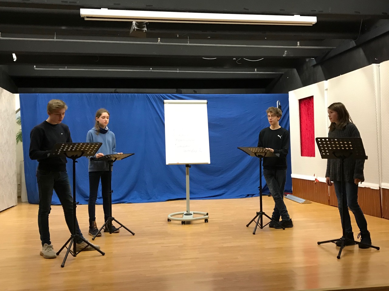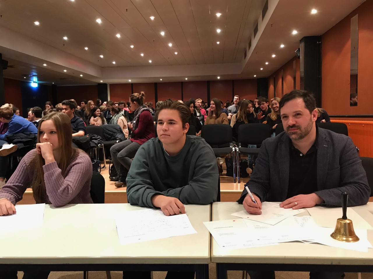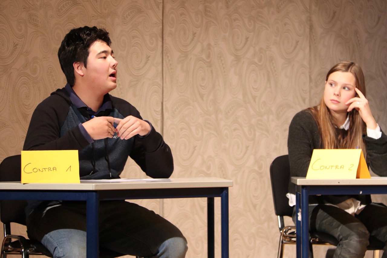 Der Wettbewerb der E-Phase am 19.2. umfasste gleich drei Runden. In den ersten beiden Runden debattierten die TeilnehmerInnen zu der Frage: „Soll ein Schulfach ‚praktische Lebensführung‘ eingeführt werden?“. Dabei nahmen Stella Alles und Jonathan Smith die Pro-Position ein; ihre Kontrahenten waren Johannes Vogel und Geronimo Toma. In der zweiten Runde traten Katharina Miers und Leonard Schmid auf der Pro-Seite gegen Laura Reul und Johanna Grabe auf der Contra-Seite an. Nach jeder Debatte erhielten alle Teilnehmer von der Jury – Frau Herbst und Frau Mühe – wiederum ein hilfreiches Feedback. Die vier Sieger der ersten Runden, Stella Alles, Geronimo Toma, Johanna Grabe und Leonard Schmid, debattierten schließlich zur Frage: „Soll das Eintrittsalter bei der Bundeswehr auf 18 Jahre heraufgesetzt werden?“. Dabei konnten sich Leonard Schmid und Johanna Grabe mit Eloquenz und durchdachten Argumenten bei der Jury – Frau Hemerka und Frau Gilgen – durchsetzen, die ebenfalls allen Debattanten Tipps für die Zukunft mitgaben. Auch die beiden Gewinner der E-Phase werden am 25. Februar am Taunusgymnasium beim Regionalwettbewerb ihrer Altersstufe antreten, um sich mit den Finalisten anderer Schulen im Debattieren zu messen.