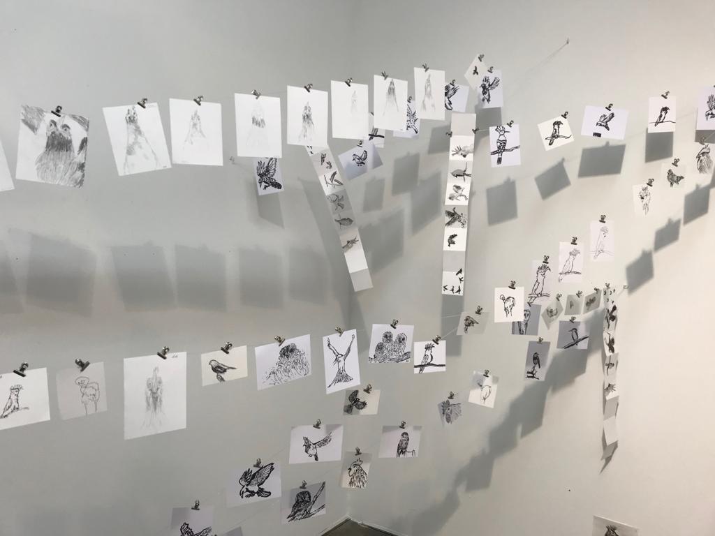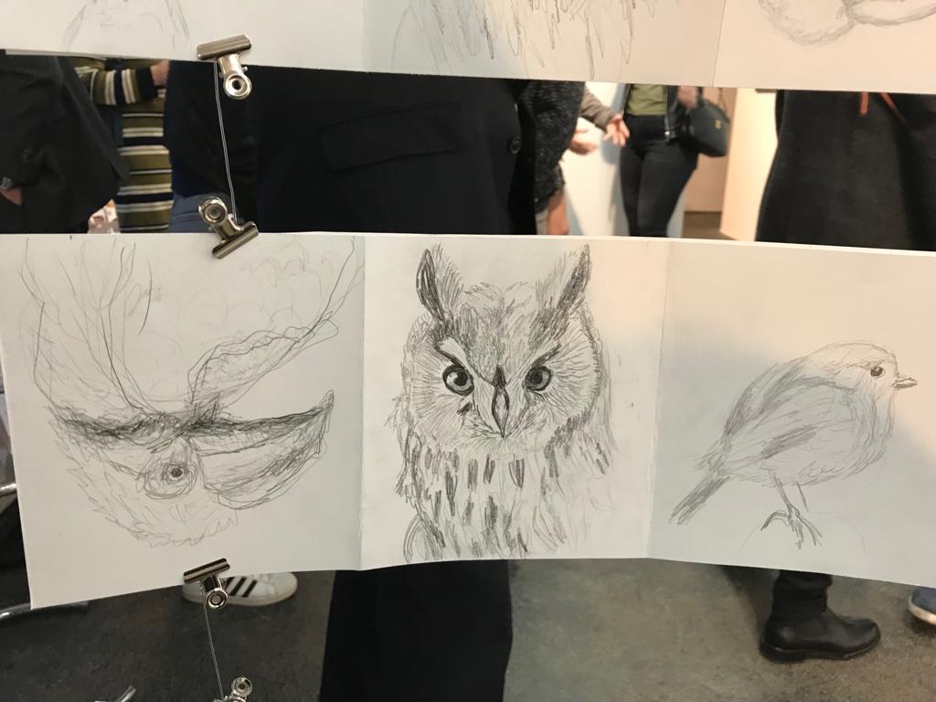 „Unscheinbar, auffallend, ernst, frech, elegant – unglaubliche Vielfalt in Farbe, Form und Ausdruck. Motiv der Ausstellung sind unsere gefiederten Erdbewohner. Von schnellen filigranen Skizzen hin zu farbigen Ausarbeitungen kann der Betrachter eine Fülle von experimentellen zeichnerischen und malerischen Annäherungen an die Vogelwelt entdecken. Die Schüler schulten durch die Techniken und gewählten Materialien das schnelle Erfassen, das genaue Beobachten sowie das spontane und impulsive Umsetzen in eine künstlerische Arbeit.“