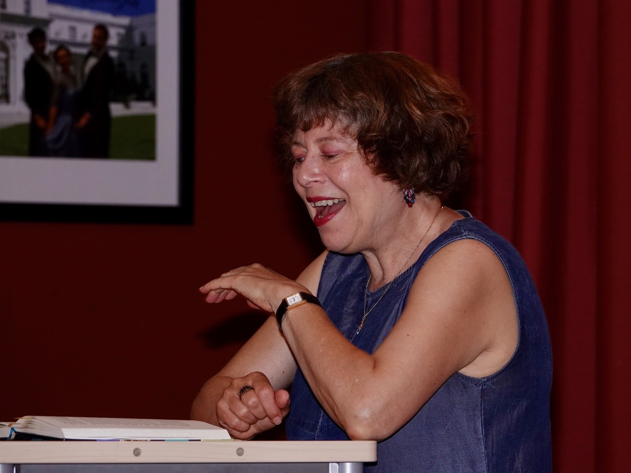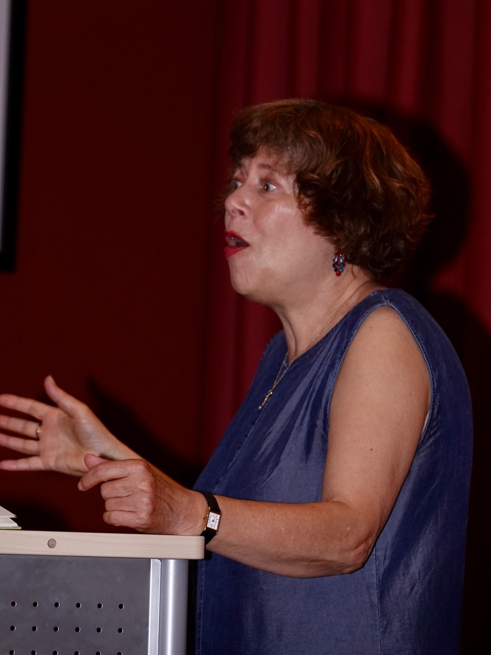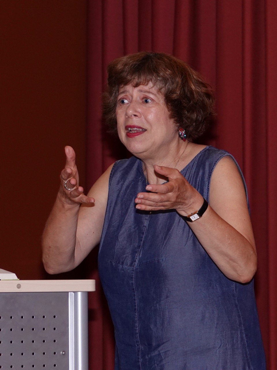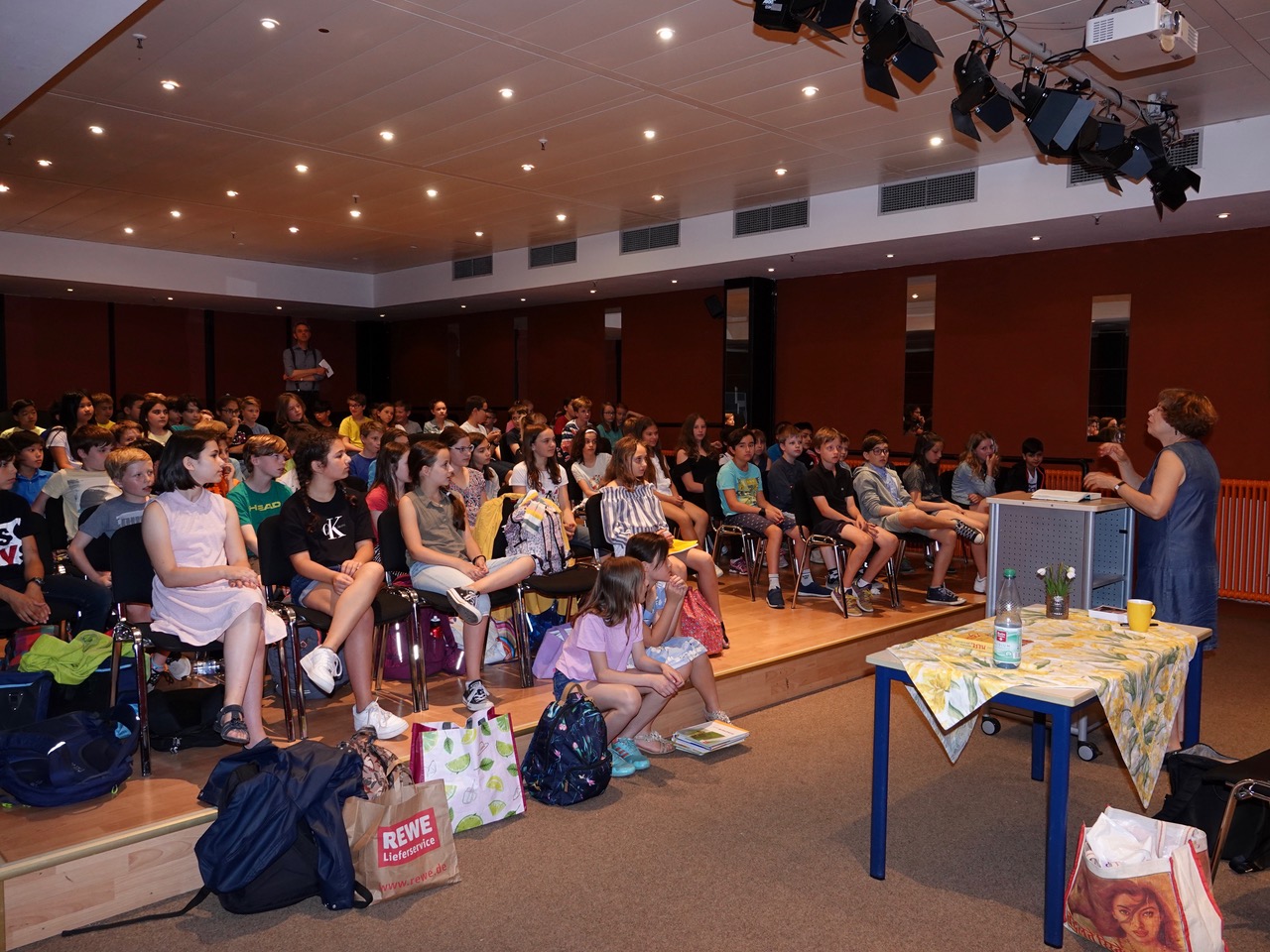 Ihr wahrscheinlich bekanntestes Buch ist wohl „Hilfe, ich habe meine Lehrerin geschrumpft“, zu dem eine bekannte Verfilmung existiert. Auf Einladung der Fachschaft Deutsch las Sabine Ludwig am Taunusgymnasium aus Band 2 der Erzählung, betitelt „Hilfe, mein Lehrer geht in die Luft!“ und aus dem Krimi „Pandora und der phänomenale Mr. Philby“, der im südenglischen Cornwall spielt. Sabine Ludwig wurde 1954 in West-Berlin geboren, nach dem Romanistik- und Germanistikstudium war sie Lehrerin an einem Berliner Gymnasium, Produktionsassistentin in der Filmabteilung des LCB (Literarisches Colloquium Berlin), wissenschaftliche Mitarbeiterin im Haus der Kulturen der Welt und Redakteurin beim Sender Freies Berlin, bevor sie sich als Autorin und Übersetzerin aus dem Englischen und Französischen selbständig machte. Eine Reihe von Preisen und Nominierungen säumen ihren bisherigen Weg. Im Theatersaal des Taunusgymnasiums fand Sabine Ludwig unmittelbaren Zugang zu ihrer jungen Hörerschaft, die aufmerksam dem überaus lebendigen Vortrag der Autorin lauschte, aber auch interessiert Fragen stellte, sobald sich Gelegenheit dazu bot. Zum Schluss gab es Autogramme für die zahlreich nach vorn drängenden Fans – sicherlich ein gutes Zeichen, dass sich Schülerinnen und Schüler für Geschichten in elaborierter, bildkräftiger Sprache begeistern können.