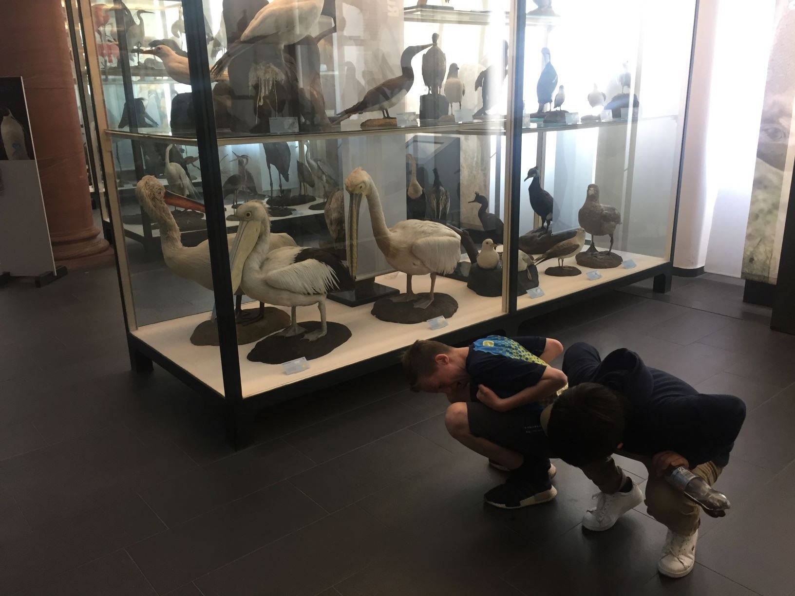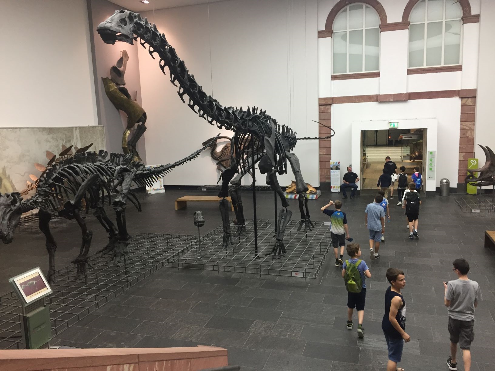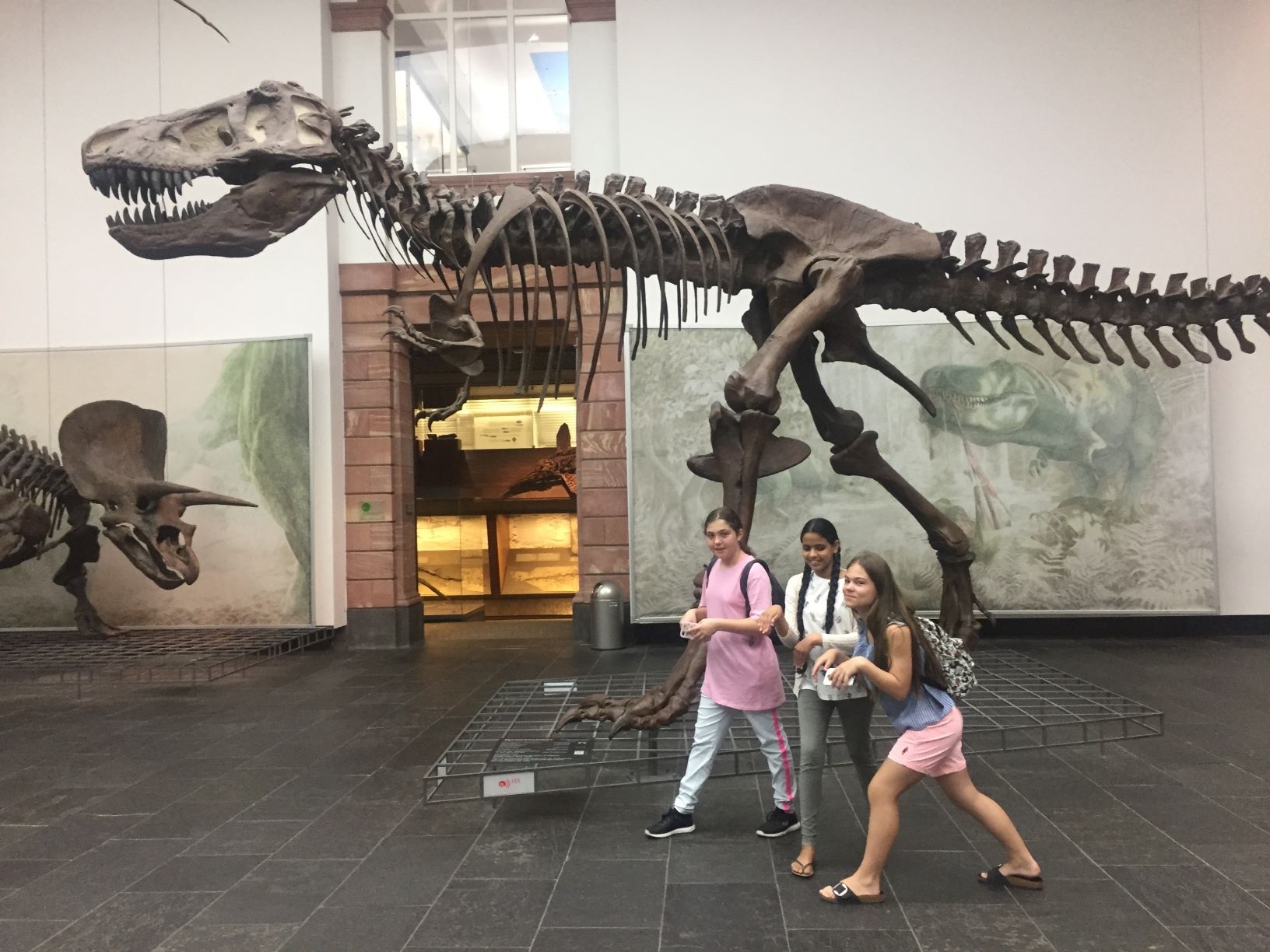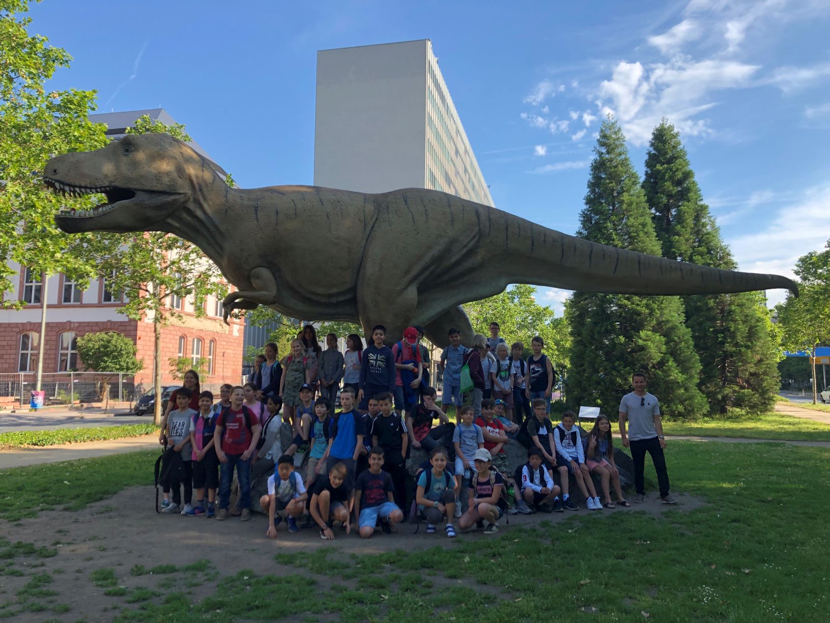 Am 03.06 trafen wir uns mit den Ethik-Gruppen um 07.20 Uhr am Bahnhof in Königstein. Wir fuhren nach Frankfurt zum Senckenberg Museum. Nach einem kurzen Frühstück vor dem Museum und Fotos mit einem "freilebenden" T-Rex gingen wir in das Museum. Dort wurden wir zuerst in Gruppen herumgeführt. Die Museumsführerin hat uns viel über Dinos, die alten Zeiten, zum Beispiel die Kreidezeit und der Jura, erzählt. Ebenfalls wurde uns anhand von Fossilien erklärt, wie man falsche und richtige unterscheiden kann. Danach haben wir Gruppen gebildet und durften uns alles genauer anschauen, unteranderem einen großen Fischsaurier und viele ausgestopfte Tiere. Nach einem schönen Tag im Senckenberg Museum hat unsere Ethik-Gruppe viel Wissen über Dinos, Fossilien und die Erdzeitalter erlernt.