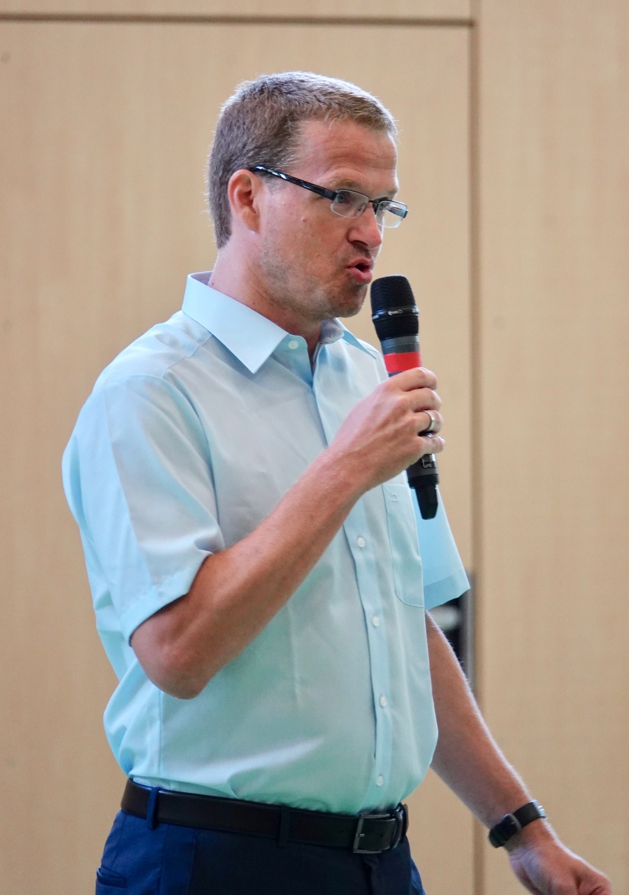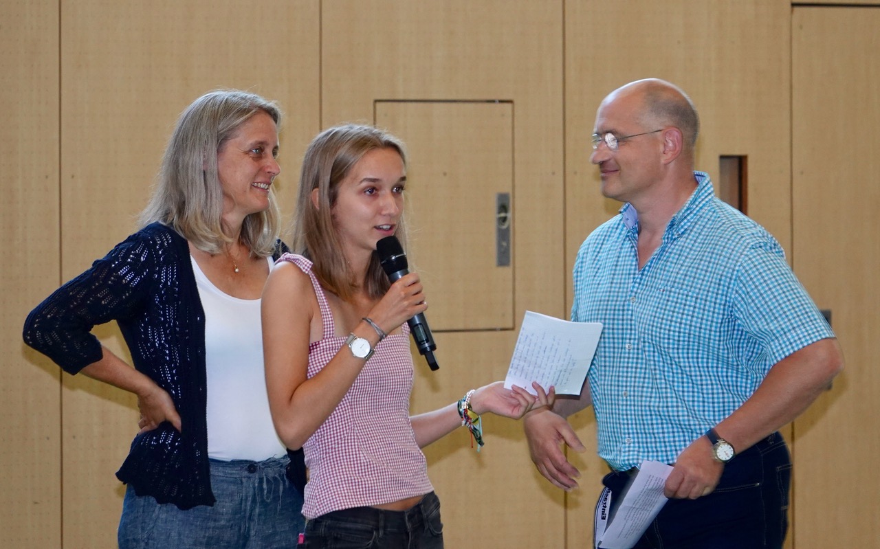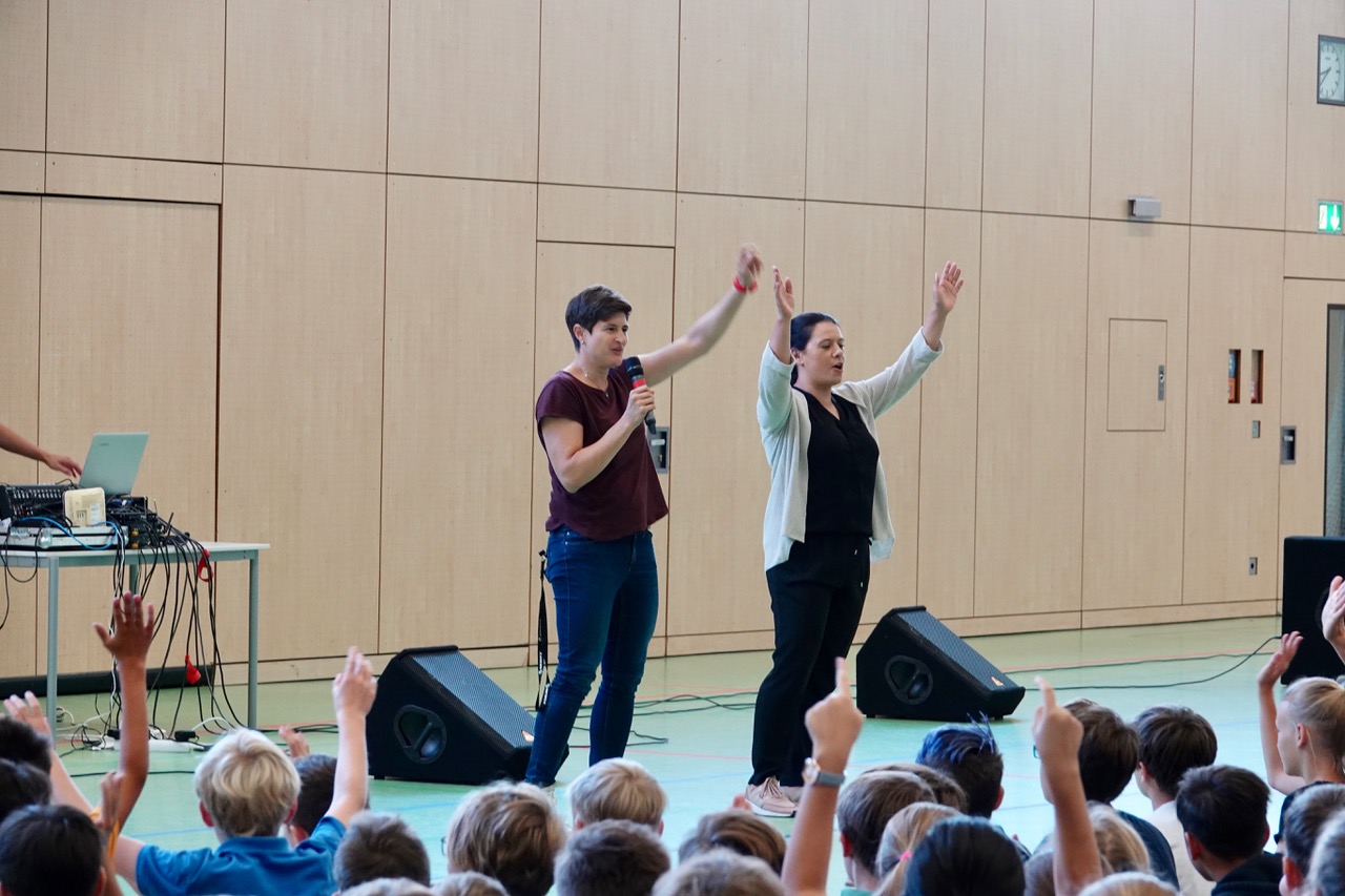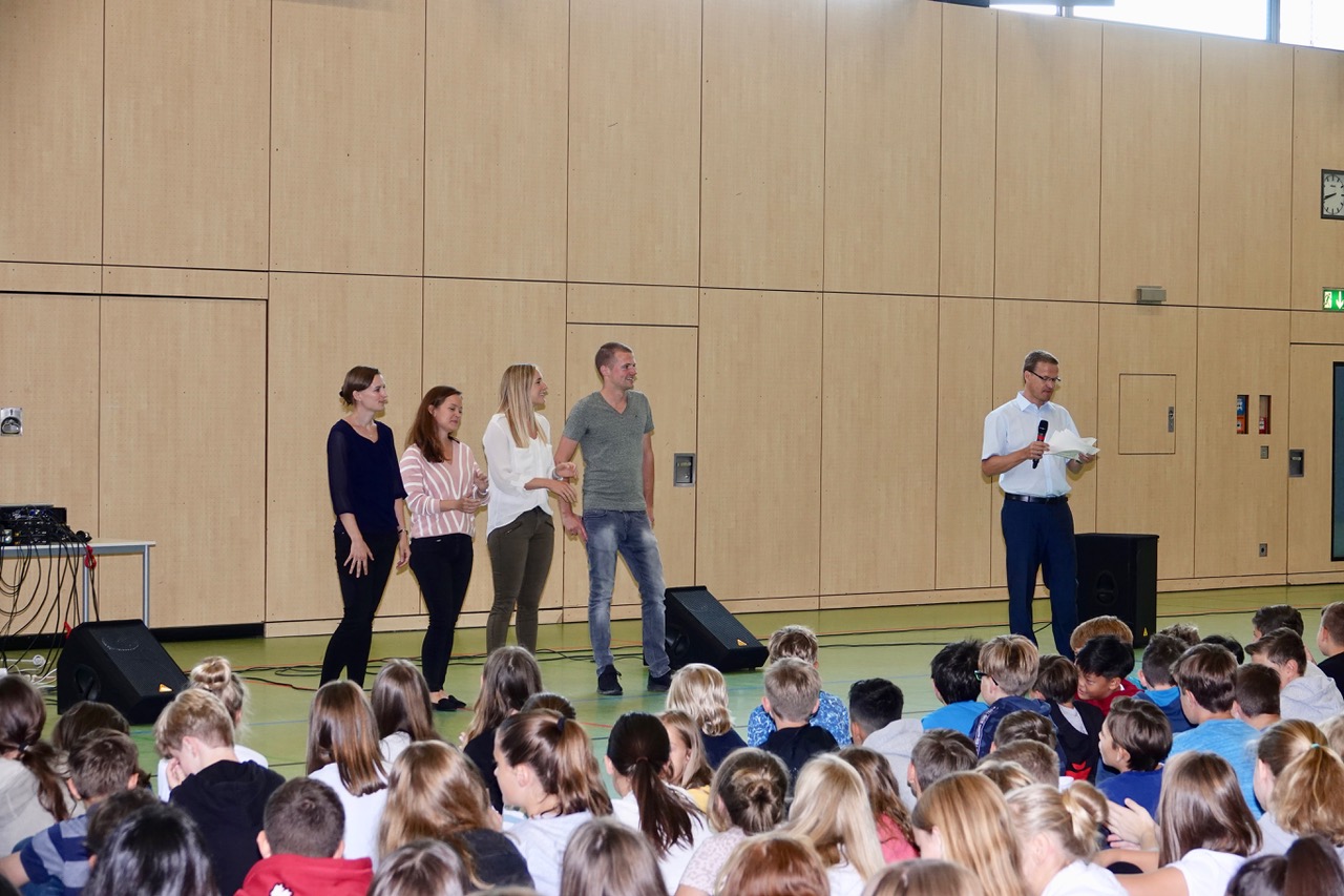 Zum ersten Male fand er statt, der „Auftakt“, und er erinnerte ein wenig an die allmorgendlich an britischen Schulen stattfindende „Assembly“. Die Idee dahinter ist ähnlich: Nicht einfach „irgendwie“ das neue Schuljahr zu beginnen, sondern im Rahmen einer gemeinschaftsstiftenden Veranstaltung einander wahrzunehmen, sich auf das Kommende einzustellen und mit den „latest news“ versorgt zu werden, die alle – als Schulgemeinschaft – betreffen. Mit einigen rhythmischen Aufwärmübungen kam die Sache in Schwung, danach begrüßte der Schulleiter die Schulgemeinde und stellte die neuen Kolleginnen und Kollegen vor. Der Schulsprecher gab seinen Mitschülerinnen und Mitschülern motivierende Worte mit auf den Weg, und das Vertrauenslehrer-Team stellte sich vor – für alle Fälle. Schließlich wurde das Motto des Schuljahres ausgegeben: „Sozial – tolerant – respektvoll“ lautet der Leitspruch für dieses Schuljahr – und hoffentlich noch weit darüber hinaus.