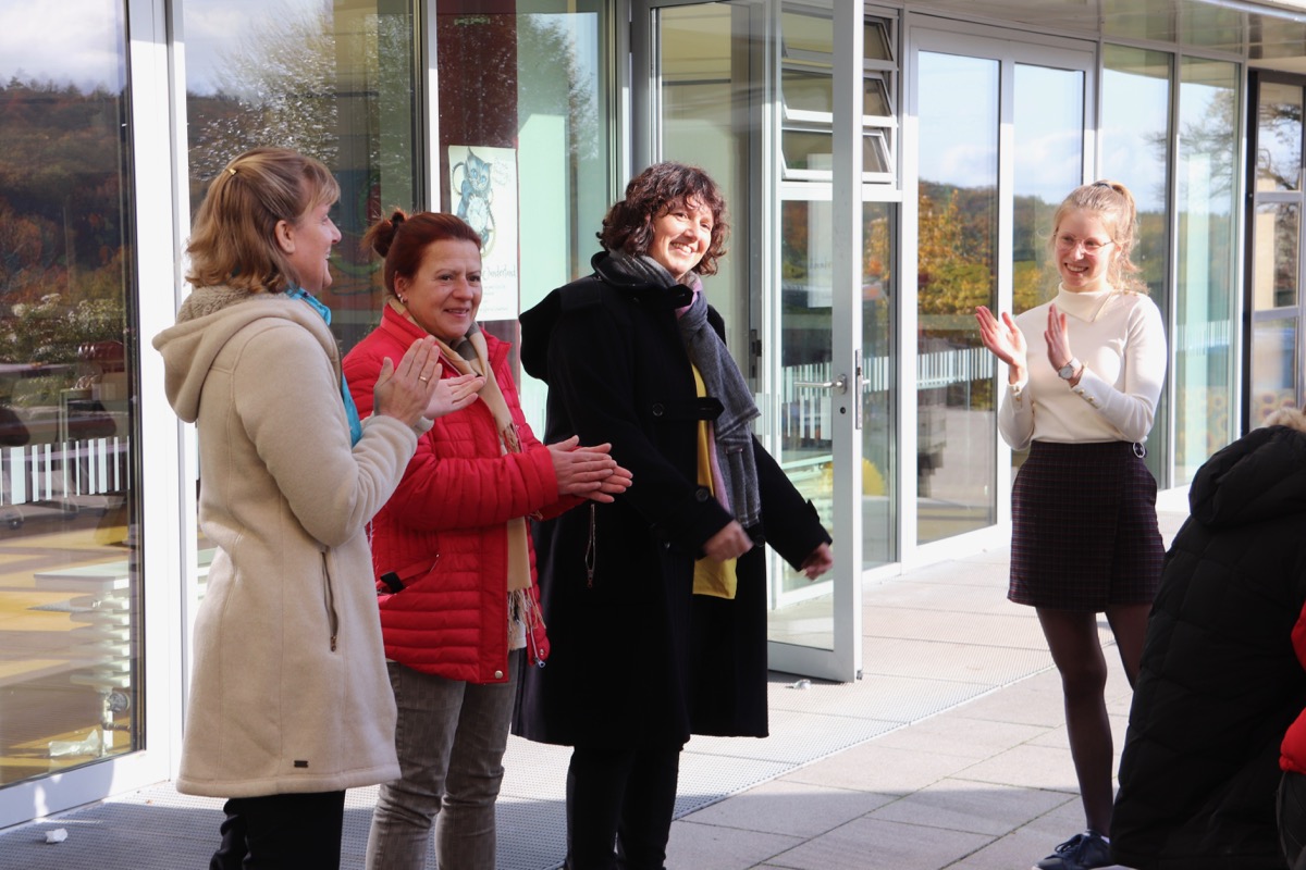 Eingeweiht wurde die Markise nun von Schulleiter Herrn Henkel, Frau Peveling (Vorsitzende des WoB), Frau Mesterharm (stellvertretende Vorsitzende) sowie Frau Schuster (Schatzmeisterin des WoB), die die Anregung für die Markise lieferte. Ebenfalls bei der feierlichen Einweihung dabei: Christina Herold, die neue Schulsprecherin, sowie ein Kunst-Grundkurs der Einführungsphase.