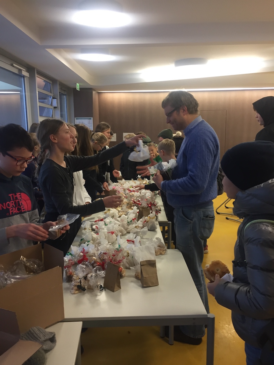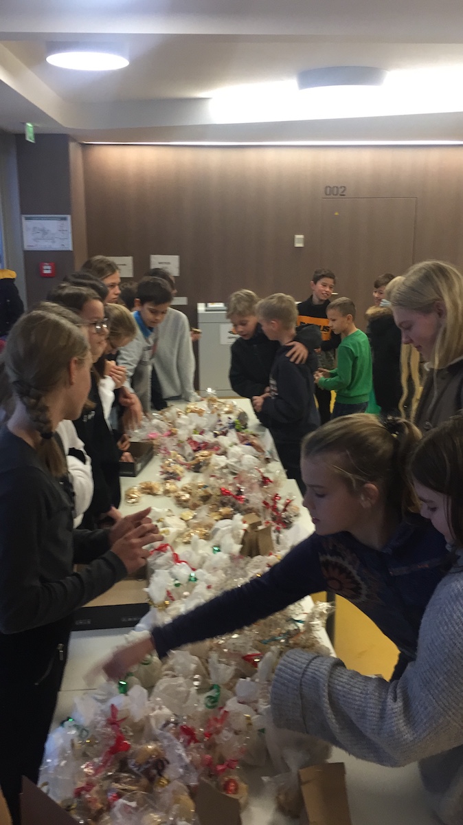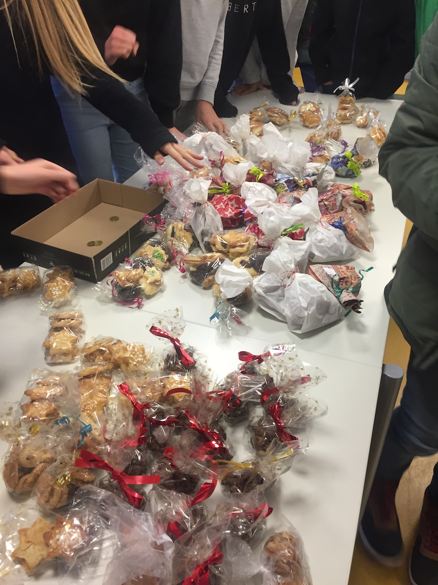 Die Klassen 6d und 6e von Frau Berg und Herrn Langner verkauften am Freitag, den 13.12., selbstgebackene Plätzchen für Amguri. Die Plätzchen, abgepackt in kleine Tüten, konnten für den Betrag von 50 Cent oder 1€ plus beliebige Spende im Pausenbereich der Kantine während der 1. Pause erworben werden. Die von den Schülerinnen und Schülern organisierte Verkaufsaktion wurde im Rahmen des Projekts „Adventskalender der guten Taten“ durchgeführt. Dabei erfüllen die Schülerinnen und Schüler an jedem Tag eine kleine gute Tat, die die vorweihnachtliche, besinnliche Stimmung am Taunusgymnasium fördern soll. Durch die Plätzchenaktion konnten über 100 Euro für das Amguri-Projekt gespendet werden.