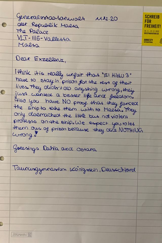Die Schülerinnen und Schüler der Ethik-Lerngruppen der Jahrgangsstufe 7, 8 und auch Q3 haben sich eindrucksvoll für die Menschenrechte engagiert. Im Rahmen des internationalen Tages der Menschenrechte am 10. Dezember nahmen die Schülerinnen und Schüler aus den Ethik-Lerngruppen am Briefmarathon der Menschenrechtsorganisation Amnesty International teil. Hierbei standen verschiedene Jugendliche im Vordergrund, die sich in ihrer Heimat für die Einhaltung der Menschenrechte eingesetzt haben, und folgend harten Repressalien ausgesetzt sind. Diese reichen von Haftstrafen bis hin zur Androhung der Todesstrafe. Mit Briefen an die entsprechenden Botschaften dieser Länder und auch Briefen an die direkt Betroffenen setzten die Schülerinnen und Schüler des TGK ein deutliches Zeichen der Forderung zur Einhaltung der Menschenrechte.