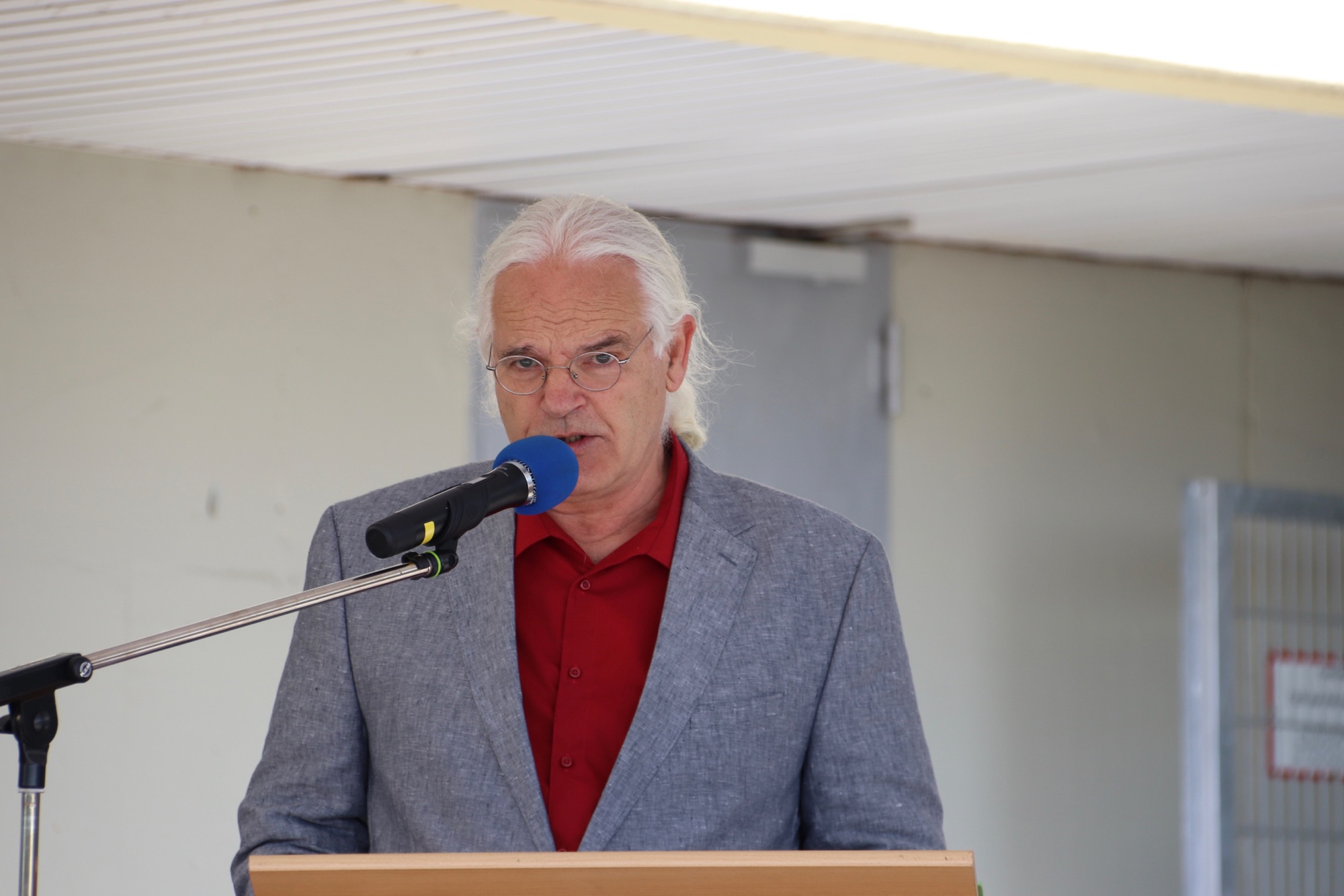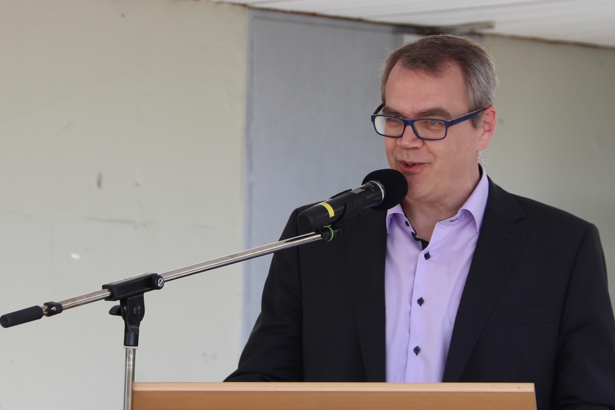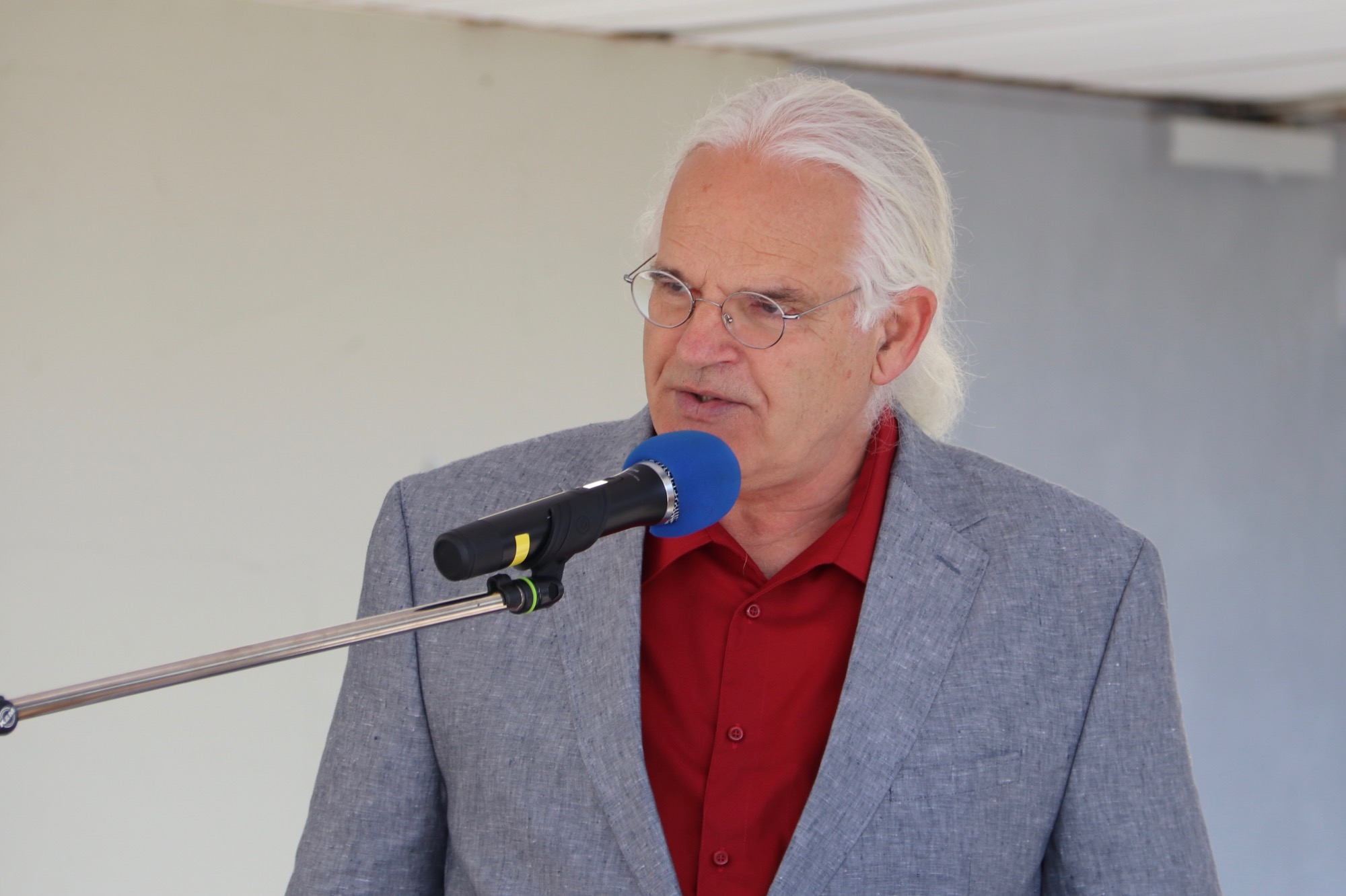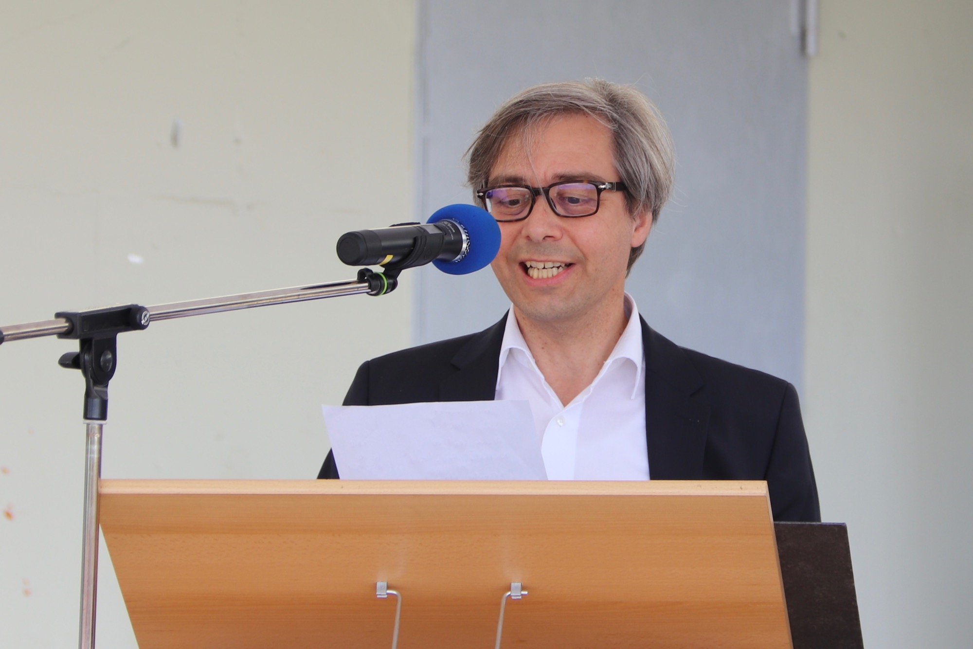 In seiner humorvollen, mit literarischen Bezügen gespickten Rede ging Herr Budde als Vertreter der Lehrkräfte zunächst auf die schwierigen Bedingungen der mündlichen Abiturprüfungen ein – 30 Grad Raumtemperatur und Maskenpflicht. Er betonte, dass das diesjährige Abitur ein vollwertiges sei, und kein „Corona-Notabitur“; trotzdem seien die Abiturient*innen der „Corona-Jahrgang“ mit zahlreichen Einschränkungen, etwa bei den Feierlichkeiten. Aber es sei auch etwas Besonderes zu lernen, „dass nicht immer alles geradeaus läuft“. Entscheidend werde sein, so Herr Budde, „dass ihr mit euch selbst eure Identität abklärt“, wobei einige schon recht gut aufgestellt seien, andere jedoch noch nicht. Er warnte vor der Gefahr, ein fremdbestimmtes Leben zu führen, und plädierte dafür, sich auf höhere Ziele zu berufen. Man brauche einen inneren Kompass, der die Richtung im Leben verlässlich anzeige. Das Glück im Leben müsse man sich erarbeiten – daher sei es nun die dringlichste Aufgabe herauszufinden, wofür man „brenne“.