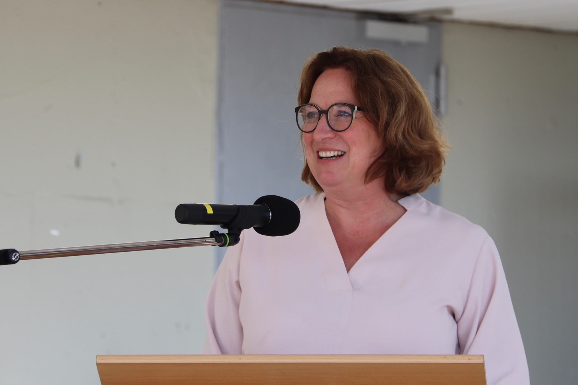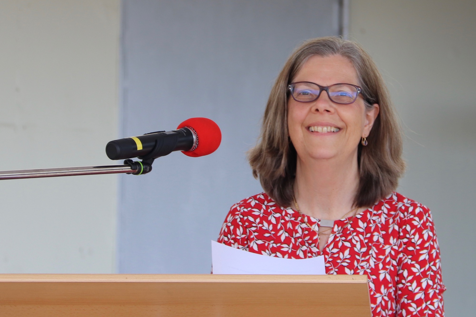 Als Vertreterin der Elternschaft bekräftigte Frau Mosig-Miers in ihrer Rede, wie stolz die Eltern seien, dass ihre Kinder trotz aller Widrigkeiten ein richtiges Abitur geschafft hätten. Nun stünden ihnen alle Türen offen – angesichts der zahlreichen Studiengänge und Ausbildungswege sei es jedoch herausfordernd, die richtige Tür zu finden. Frau Mosig-Miers dankte auch den Lehrkräften für ihr Engagement, gerade auch in den schwierigen Zeiten der Pandemie. Schließlich wünschte sie den Abiturient*innen, dass sie beruflich und privat ihren Weg finden. „Ihr seid die Zukunft, und die Zukunft gehört euch! Macht das Beste daraus!“