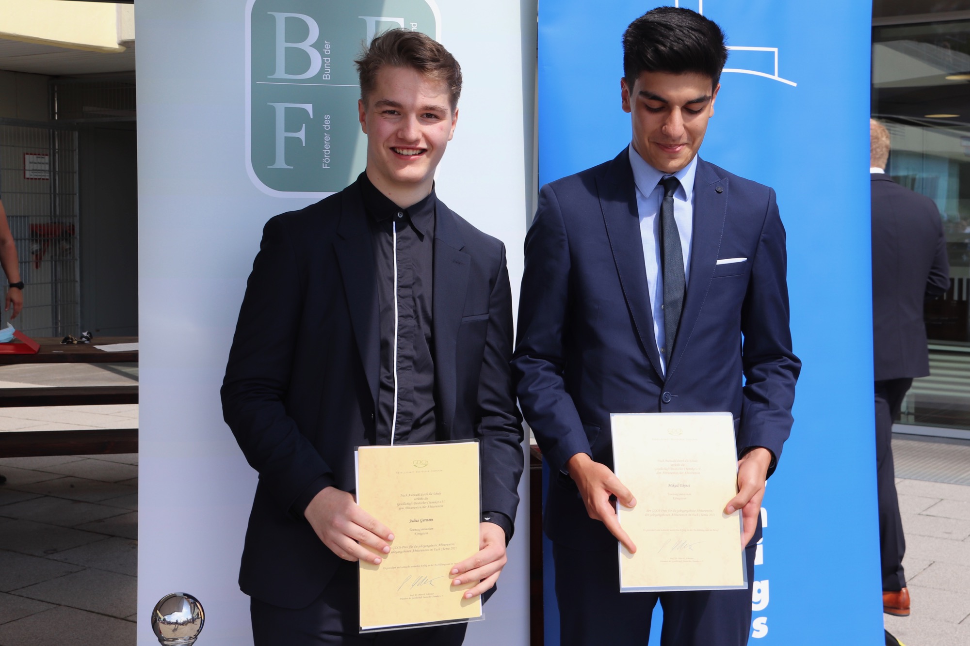 Zunächst wurden zahlreiche sozial engagierte Schülerinnen und Schüler gewürdigt, die im Nachhilfepool, in der Hausaufgabenbetreuung, bei der Leitung der Schach-AG, in der Schülervertretung, beim Sanitätsdienst und beim Entwicklungshilfeprojekt Amguri mitwirkten. Der alljährliche Dieter-Behrend-Preis für gesellschaftliches und politisches Engagement ging an Julius Gerstein, der sich durch sein kritisches Denken und seinen verlässlichen Einsatz auch für seine Mitschüler*innen auszeichnete.