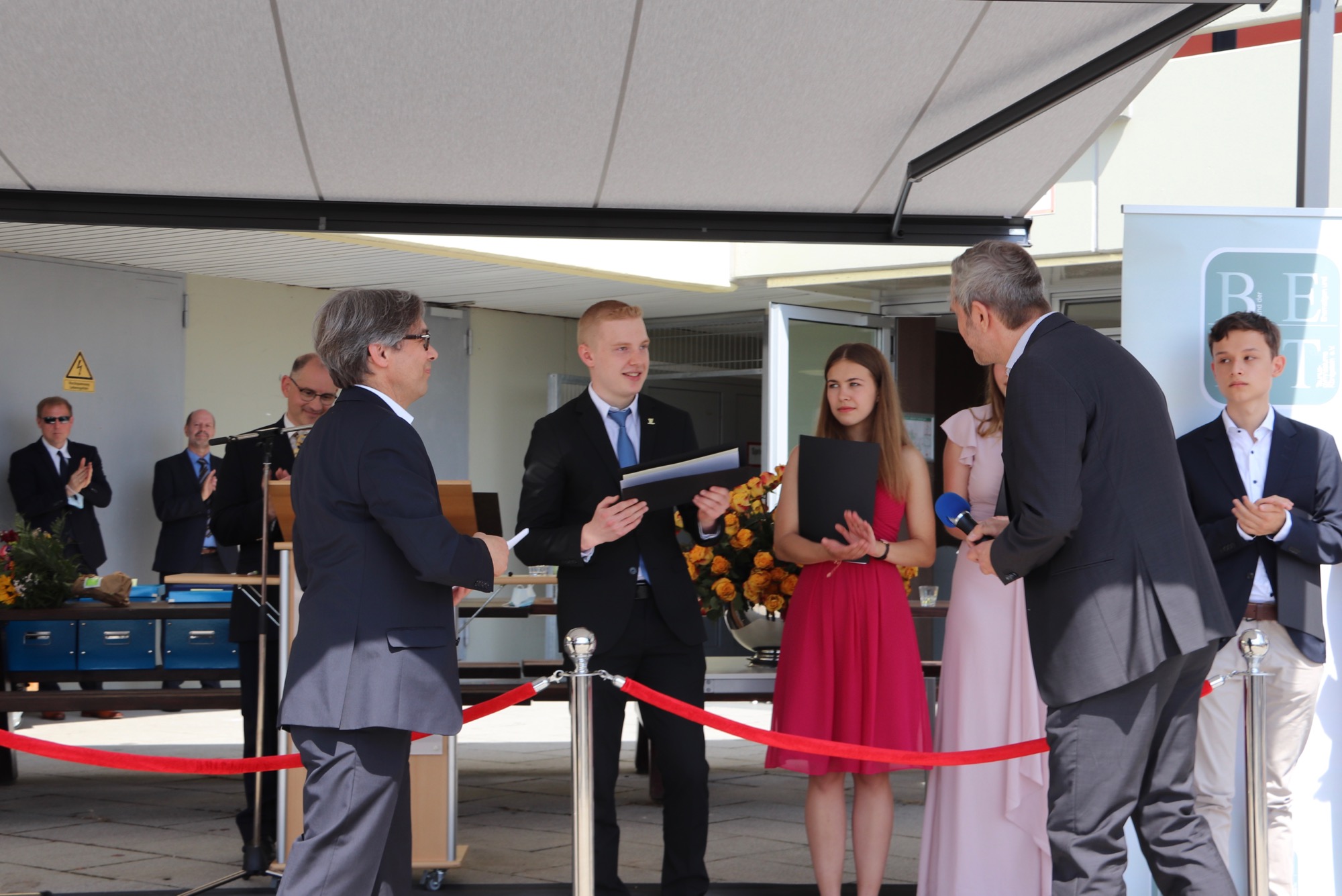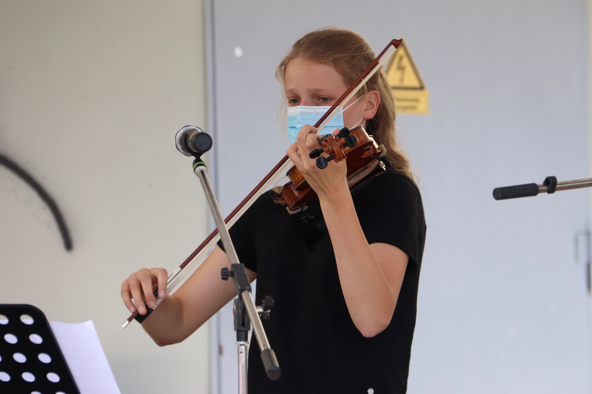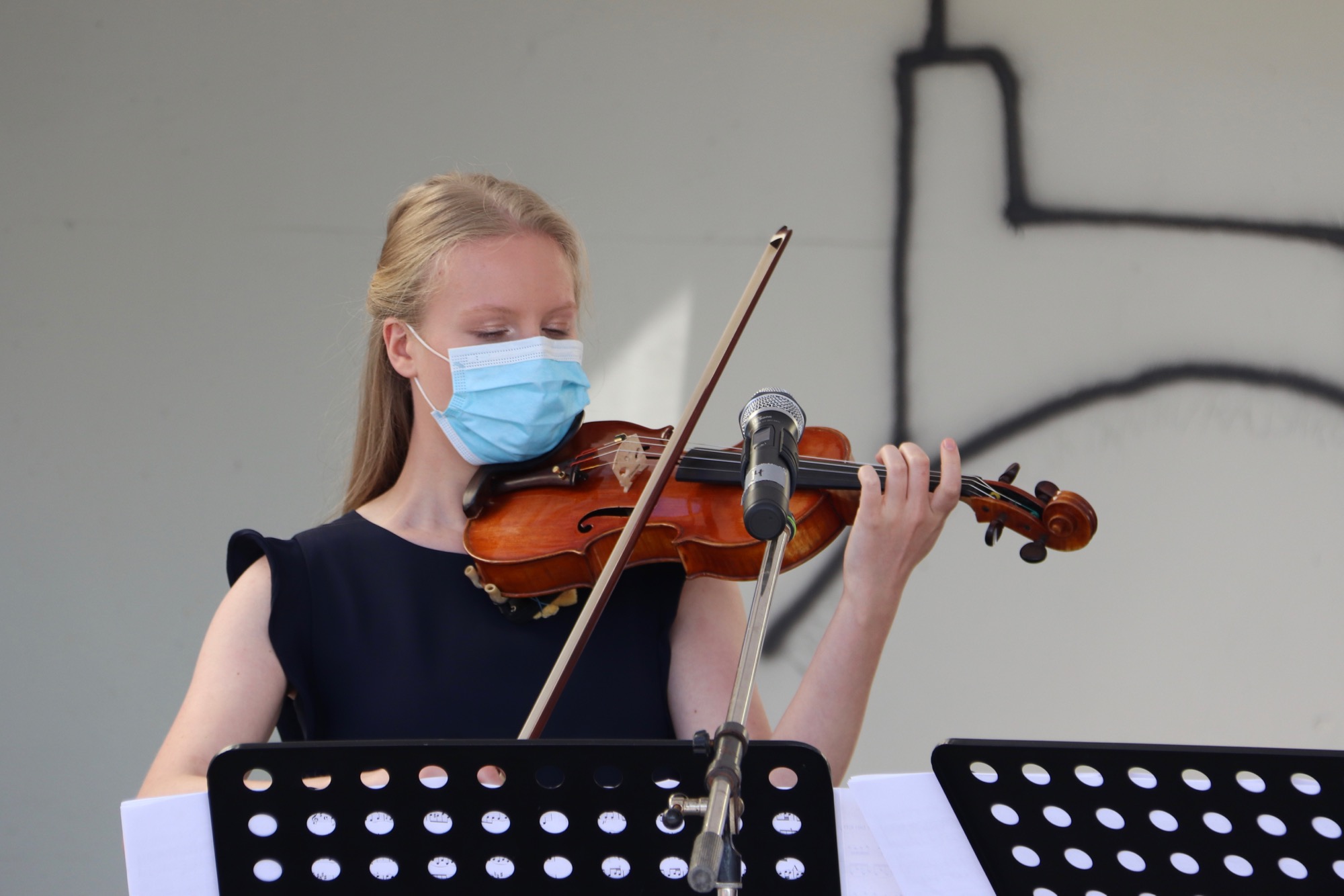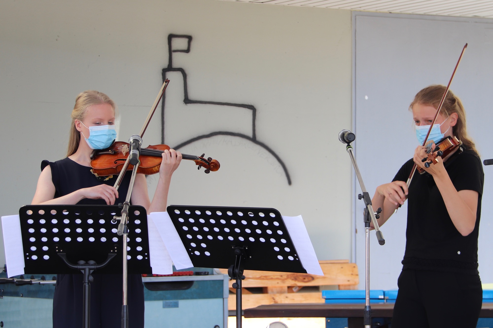 Umrahmt wurden die Redebeiträge durch hochklassige Mozart-Darbietungen von Natalie Reinhard, selbst Abiturientin, und Pauline Kaltenbach, beide an der Violine.