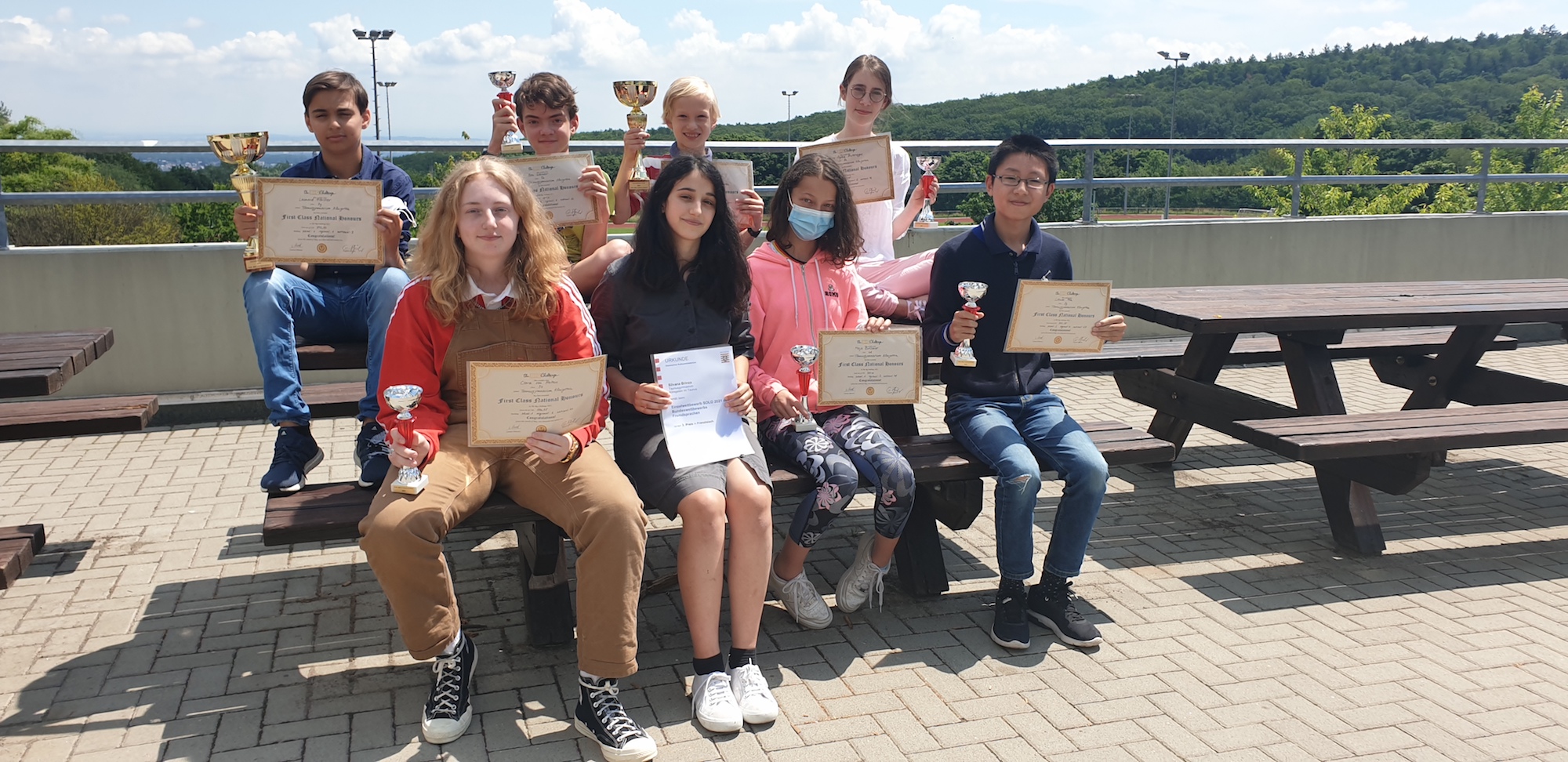 Besonders erfolgreich waren Simon Gaulke (5a), der den 2. Platz auf Bundesebene mit 350 von 350 Punkten erreichte und hessenweit den 1. Platz belegte; Leonard Förster (7g), der den 3. Platz auf Bundesebene und hessenweit die Nr. 1 erreichte; Maja Butscher (6d, 2. Platz Landesebene), Kira Hollstegge (8a, 2. Platz Landesebene), Clara von Hollen (9b, 2. Platz Landesebene), Ben Werner (5a, 4. Platz Landesebene) und Likuan Fan (8g, 4. Platz Landesebene).