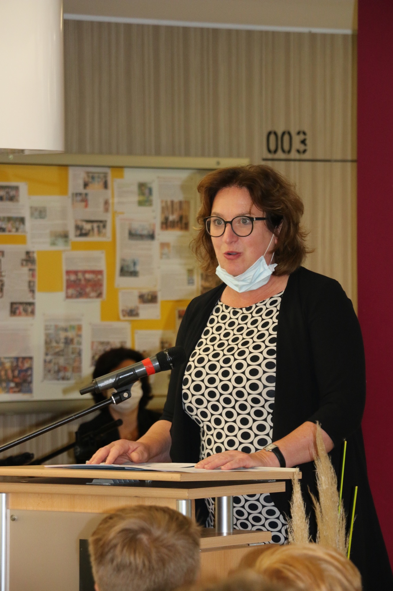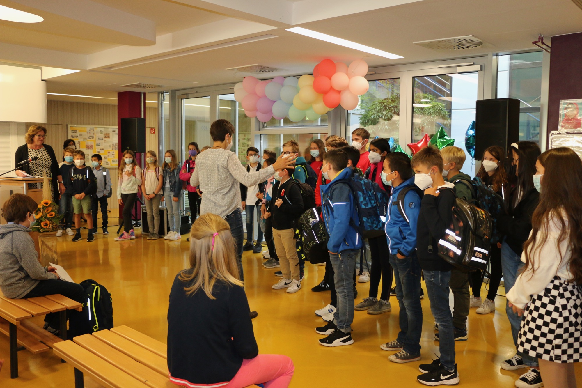 „Das haben wir noch nie probiert, also geht es sicher gut“ – so das Leitmotiv der Ansprache von Schulleiterin Frau Herbst, in der sie sich wiederholt auf Ideen aus dem Lindgren-Klassiker Pippi Langstrumpf bezog. Sie habe sich eine Einschulungsfeier wie in den letzten Jahren gewünscht, mit Orchester, Gottdesdienst und vielen Gästen. Doch trotz des ungewohnten Rahmens hieß Frau Herbst die neuen Fünftklässler*innen und ihre Eltern besonders herzlich willkommen. Und sie machte den Neulingen Mut: „Traut euch etwas zu und verzweifelt nicht, wenn es nicht gleich beim ersten Mal funktioniert. Lasst euch helfen, wenn ihr Hilfe braucht, verliert aber nicht den Blick für andere, die vielleicht eure Hilfe oder euer Lächeln brauchen! Aber vertraut darauf, dass wir alle hier nur das Beste für euch wollen.“