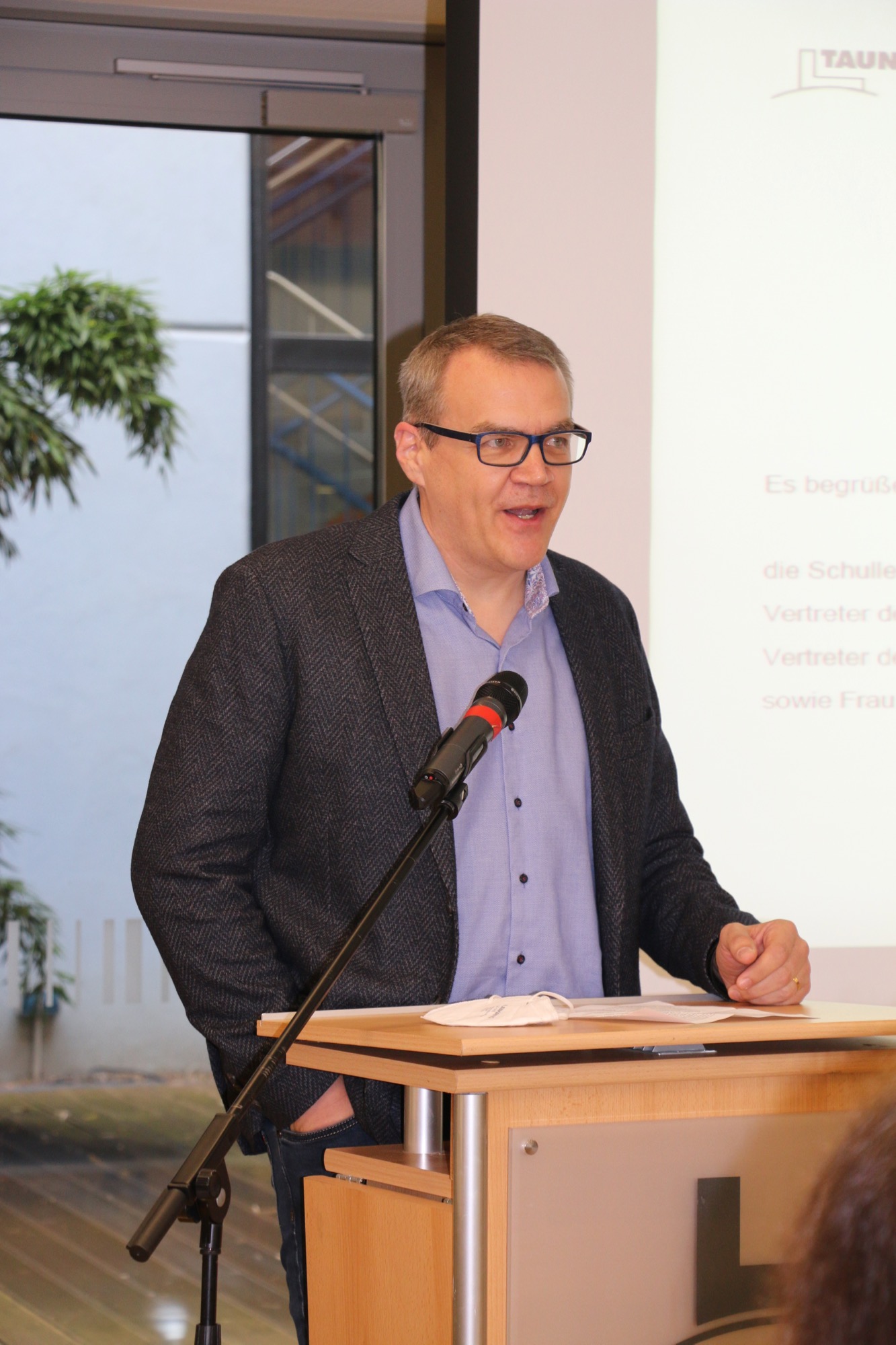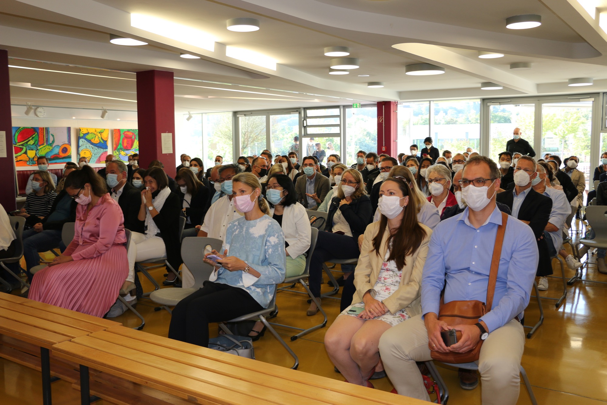 Dann kam für die Jüngsten des Taunusgymnasiums der große Moment: Sie lernten ihre Klassenkamerad*innen und ihre Klassenlehrer*innen kennen und gingen mit ihnen zu ihren Klassenzimmern. Nun erklärte Frau Herbst den Eltern noch wichtige Informationen zum Schulstart, darunter das Hygiene- und Testkonzept mit dem neuen Testheft.