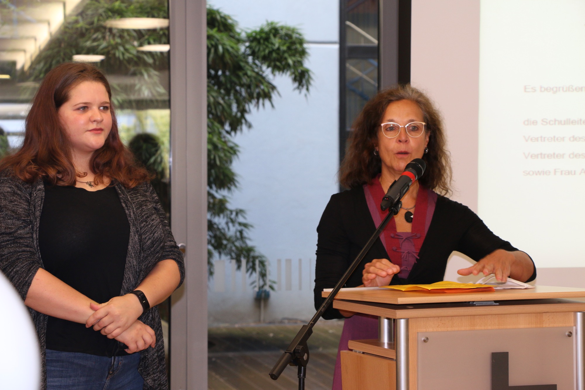 Frau Achenbach, Leiterin der Pädagogischen Mittagsbetreuung, klärte über das Betreuungskonzept am Taunusgymnasium auf und stellte ihre Mitarbeiterin Frau Alfki vor. Zudem warb sie für das Schulranzen-Projekt.