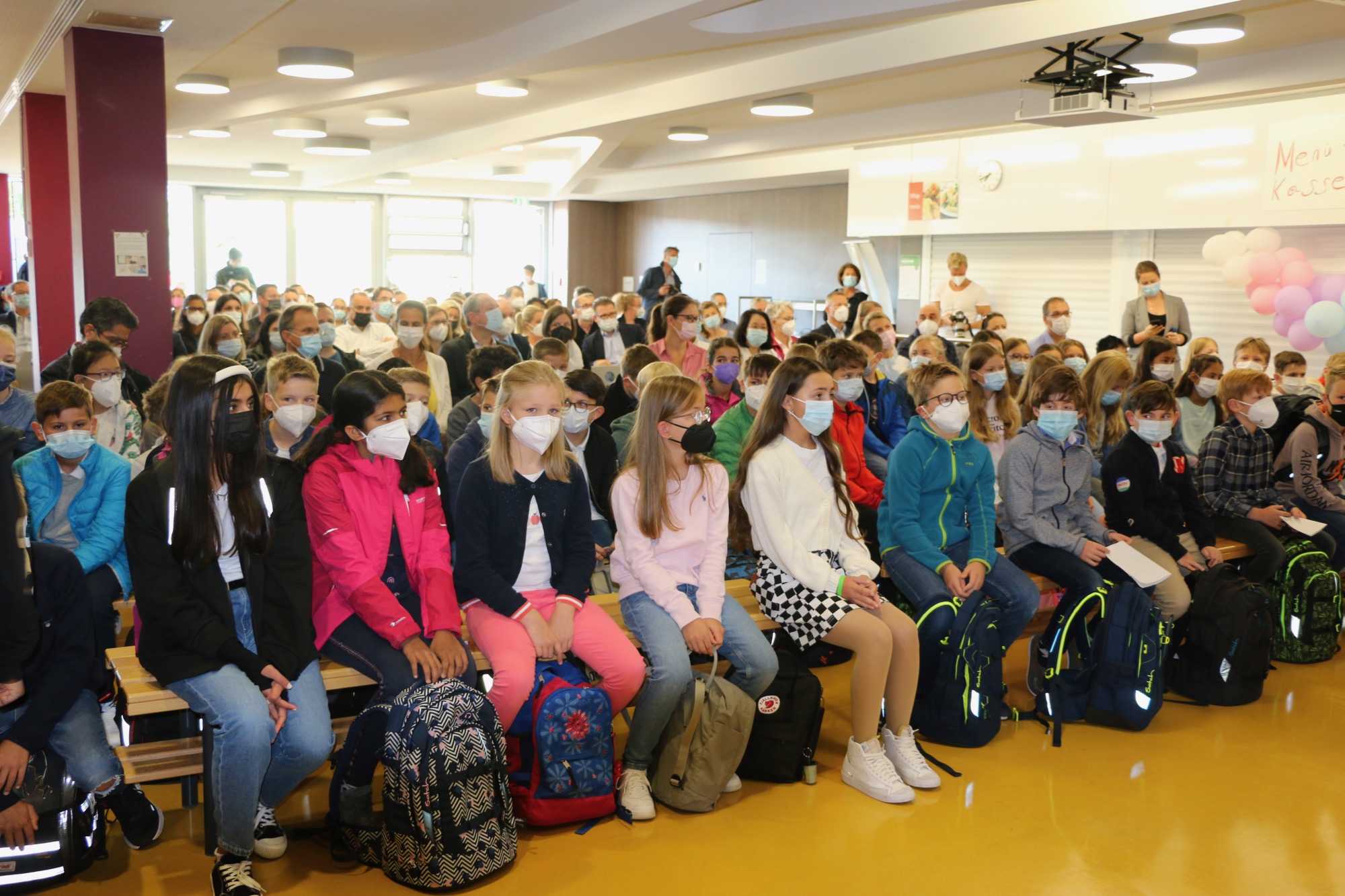 Nicht eine Feier gab es zur diesjährigen Einschulung der neuen Fünftklässler*innen am Taunusgymnasium – nein, in diesem Jahr waren es sogar drei Feiern, immer für zwei Klassen eine eigene. Viele hatten gehofft, dieses Schuljahr ohne Gedanken an die Pandemie beginnen zu können, doch leider kam es anders. Die feierliche Stimmung ließen sich die neuen Schüler*innen, Eltern und Lehrkräfte trotzdem nicht nehmen: In der festlich geschmückten Cafeteria wurde mit guter Laune dieser wichtige neue Lebensabschnitt der Kinder eingeläutet.
