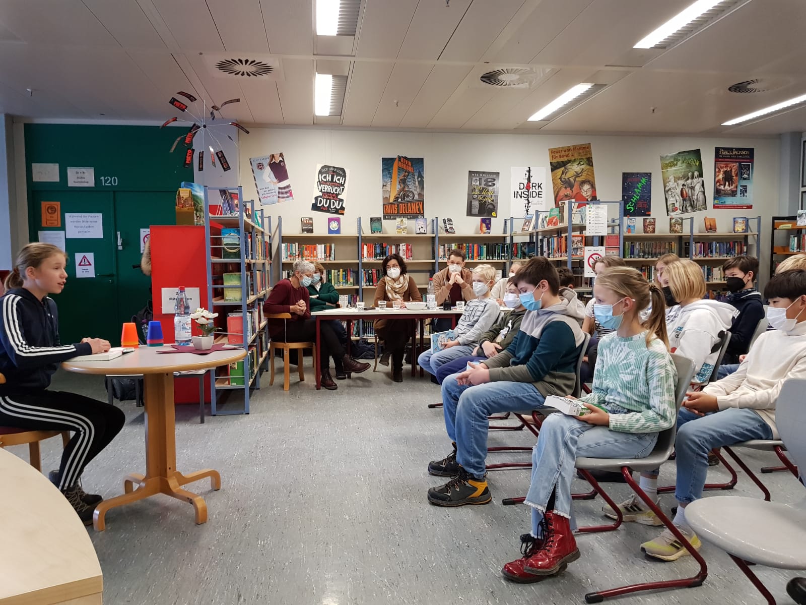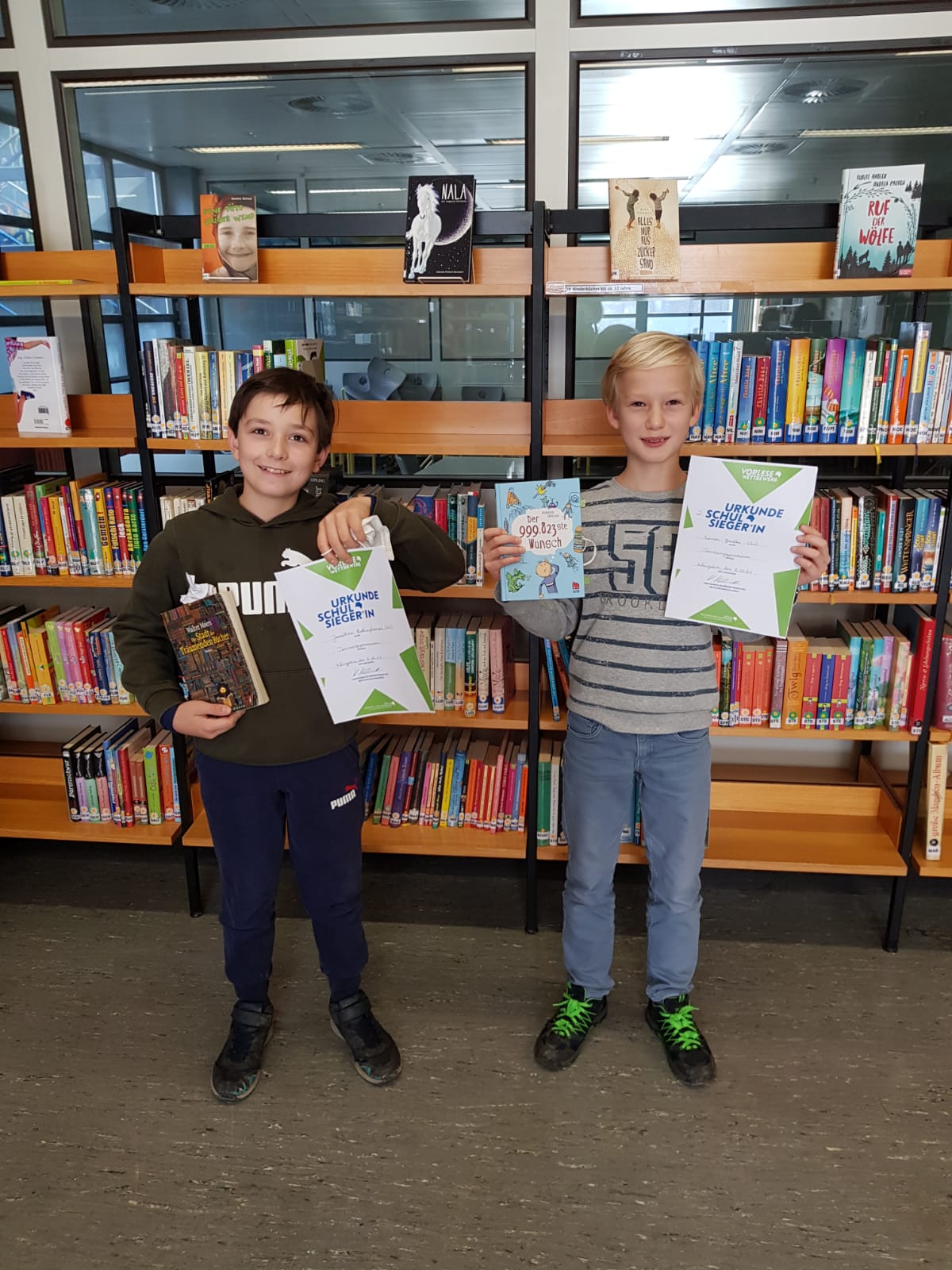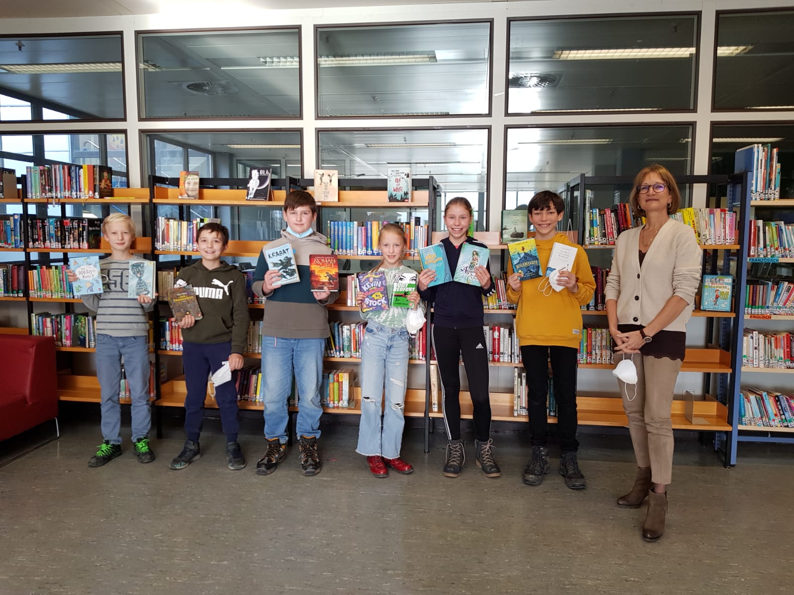 Am Donnerstag, den 9. Dezember fand in unserer Schulbibliothek der diesjährige Vorlesewettbewerb der sechsten Klassen statt. Sechs Schüler*innen trugen dabei Passagen aus sehr unterschiedlichen, interessanten Büchern vor und konnten dieses Jahr neben der Jury auch wieder eine kleine Fan-Gruppe aus den jeweiligen Klassen erfreuen. Während alle Vorleser*innen sich bereits in ihren Klassen bewährt hatten, entschied sich die Jury für Jonathan Bellinghausen (Klasse 6b) als Schulsieger und für Simon Gaulke (Klasse 6a) als Zweitplatzierten. Jonathan las aus Walter Moers Jugendroman „Die Stadt der Träumenden Bücher“ und wusste mit seinem überaus lebendigen, spannenden Vortrag besonders zu überzeugen. Anschließend gab es für alle sechs Kinder wiederum von der Buchhandlung „Millenium“ gespendete Buchpräsente.
