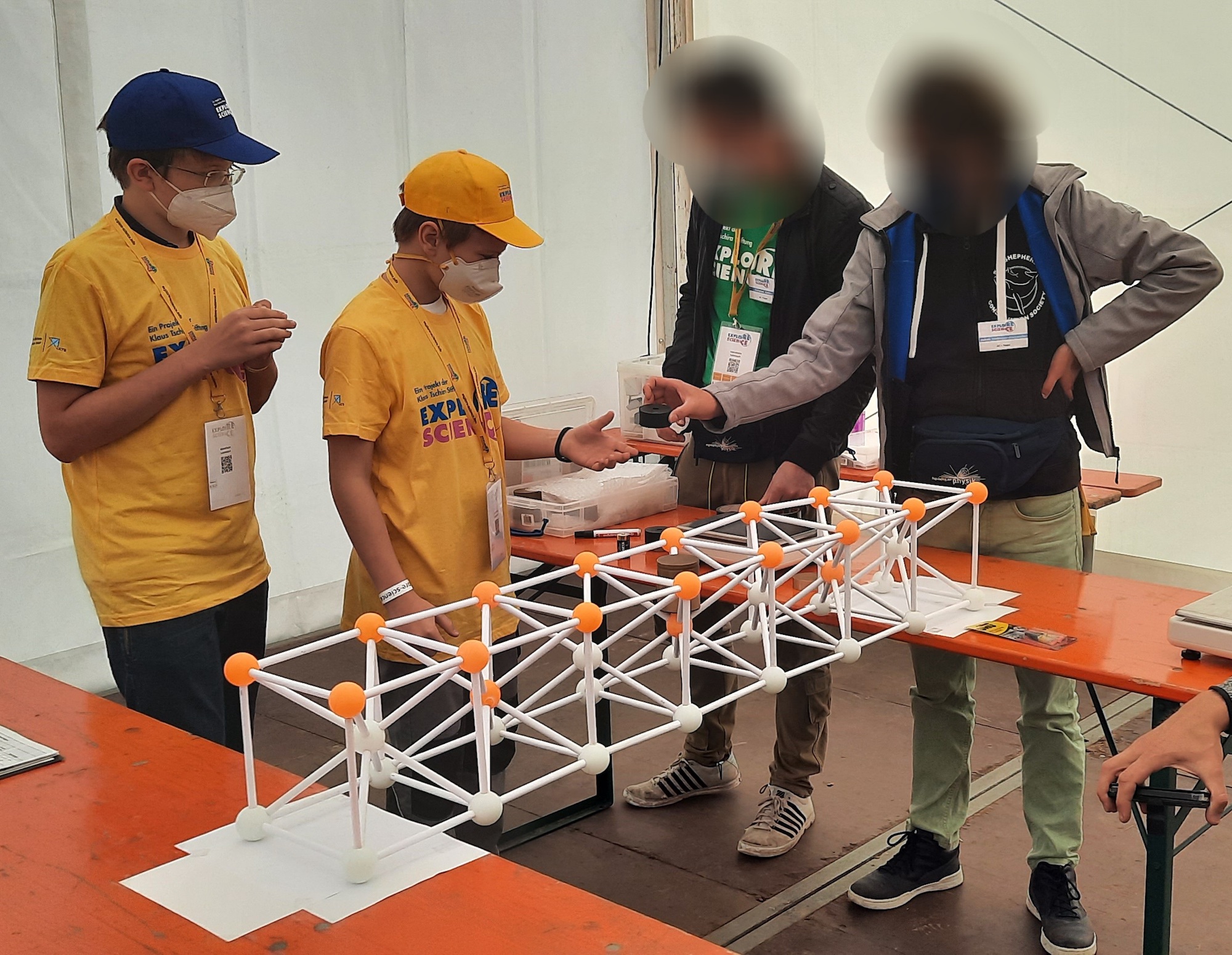 Die Aufgabe, die die beiden gemeinsam lösten: ein Modell einer Molekülkette zu entwerfen, das sich durch besondere Stabilität auszeichnet. Dabei durften lediglich normales Druckerpapier zur Papierröhrchen-Herstellung, Tischtennisbälle (Atome) und Klebstoff verwendet werden. Die Konstruktion durfte nur eine maximale Eigenmasse von 350 g haben und musste eine Distanz von 1 Meter zwischen zwei Tischen überbrücken. Auf einer Plattform in der Mitte des Modells wurden anschließend immer höhere Gewichte aufgelegt – so lange, bis das Modell die Last nicht mehr tragen konnte.