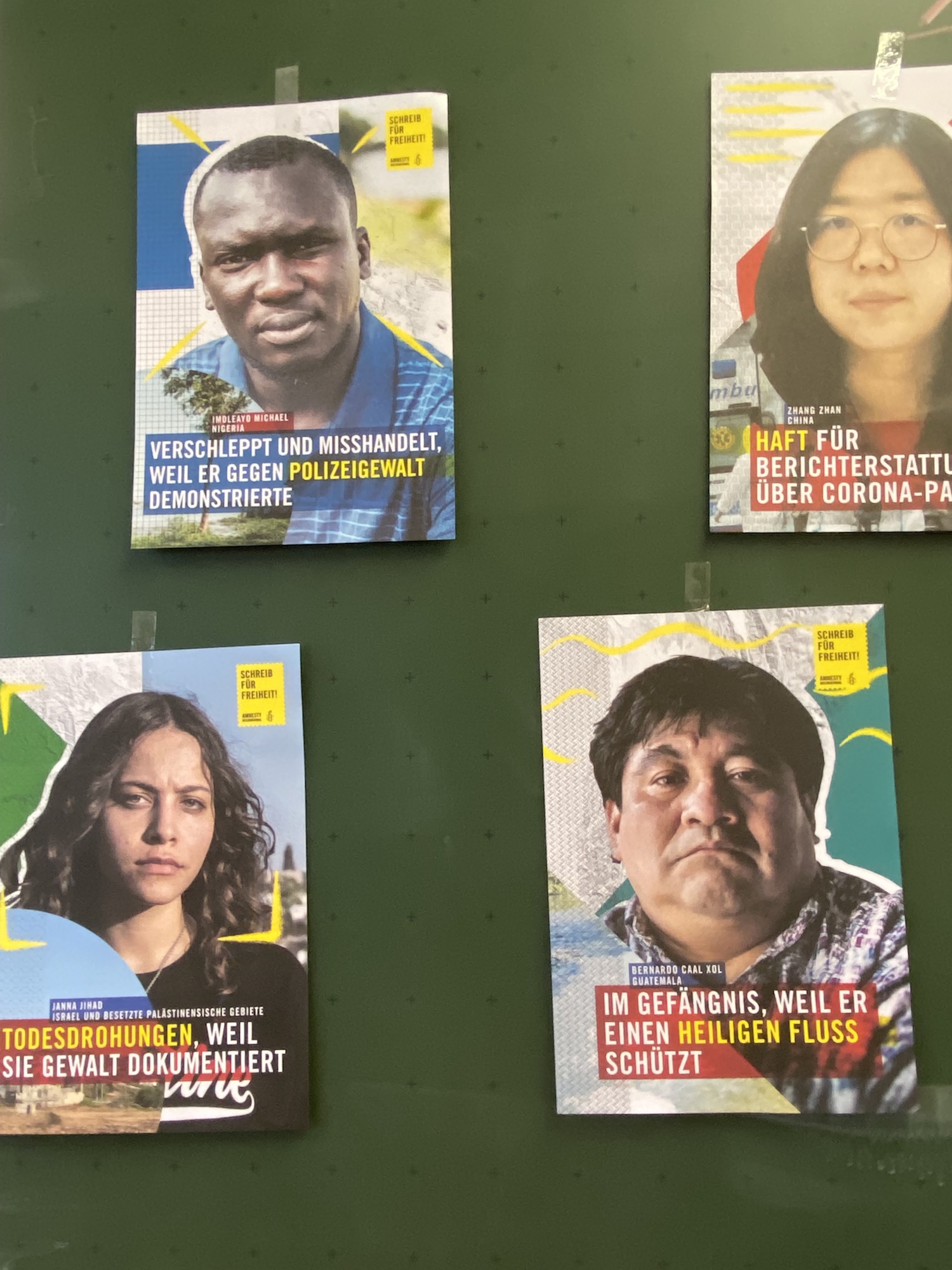 Wie? Mit Stift und Papier. Von Amnesty International wurden zehn Fälle vorgestellt, für die man sich einsetzen konnte.