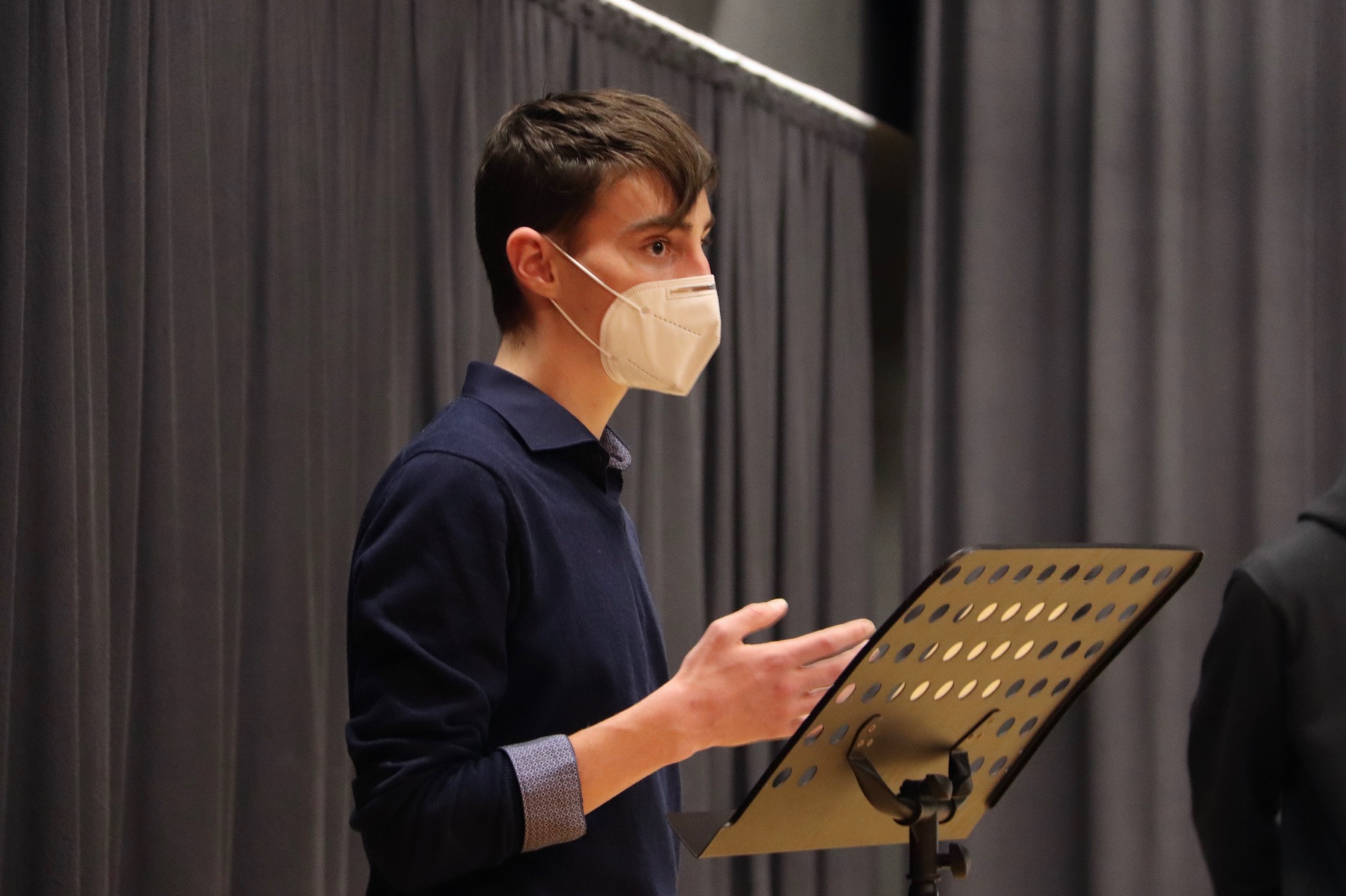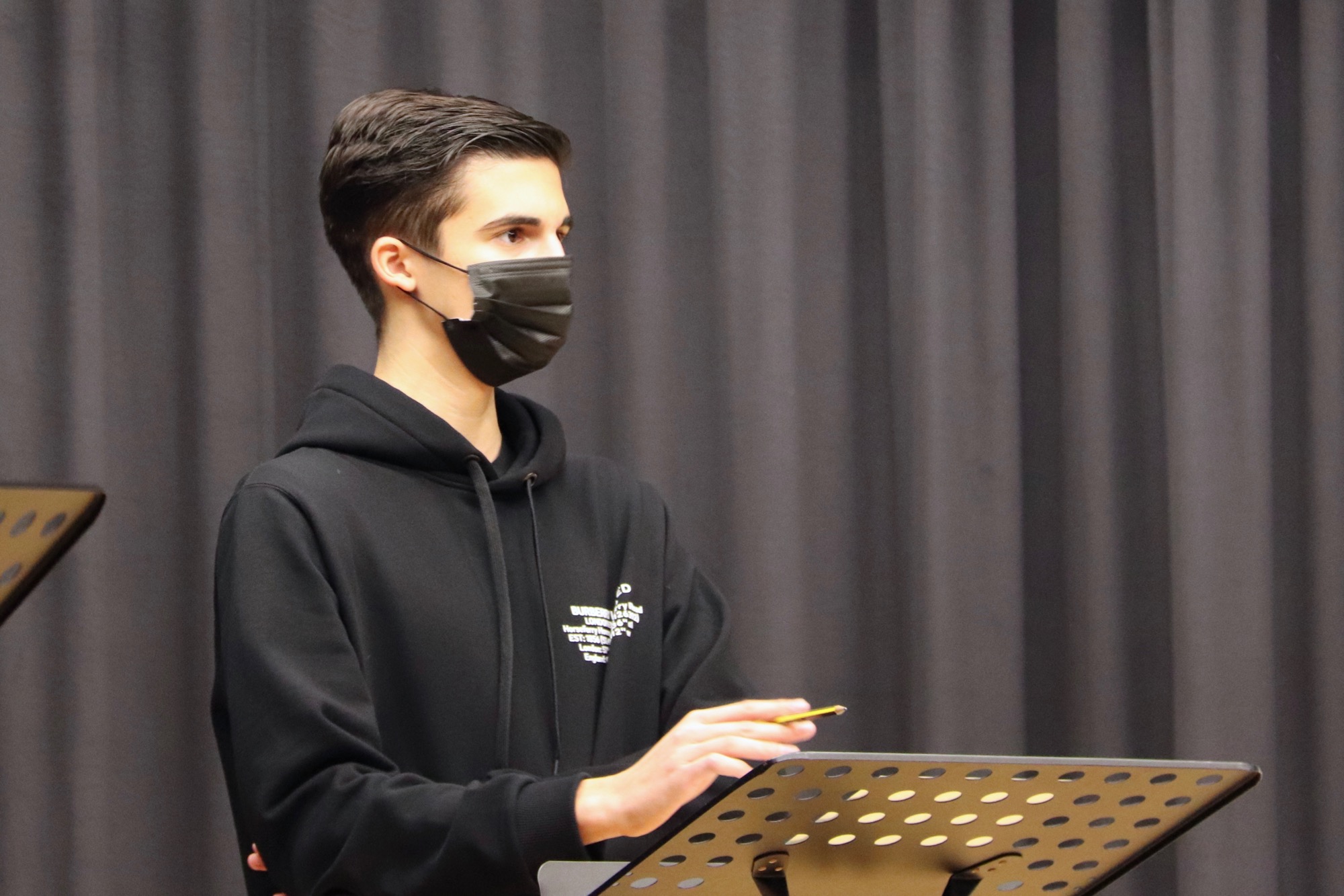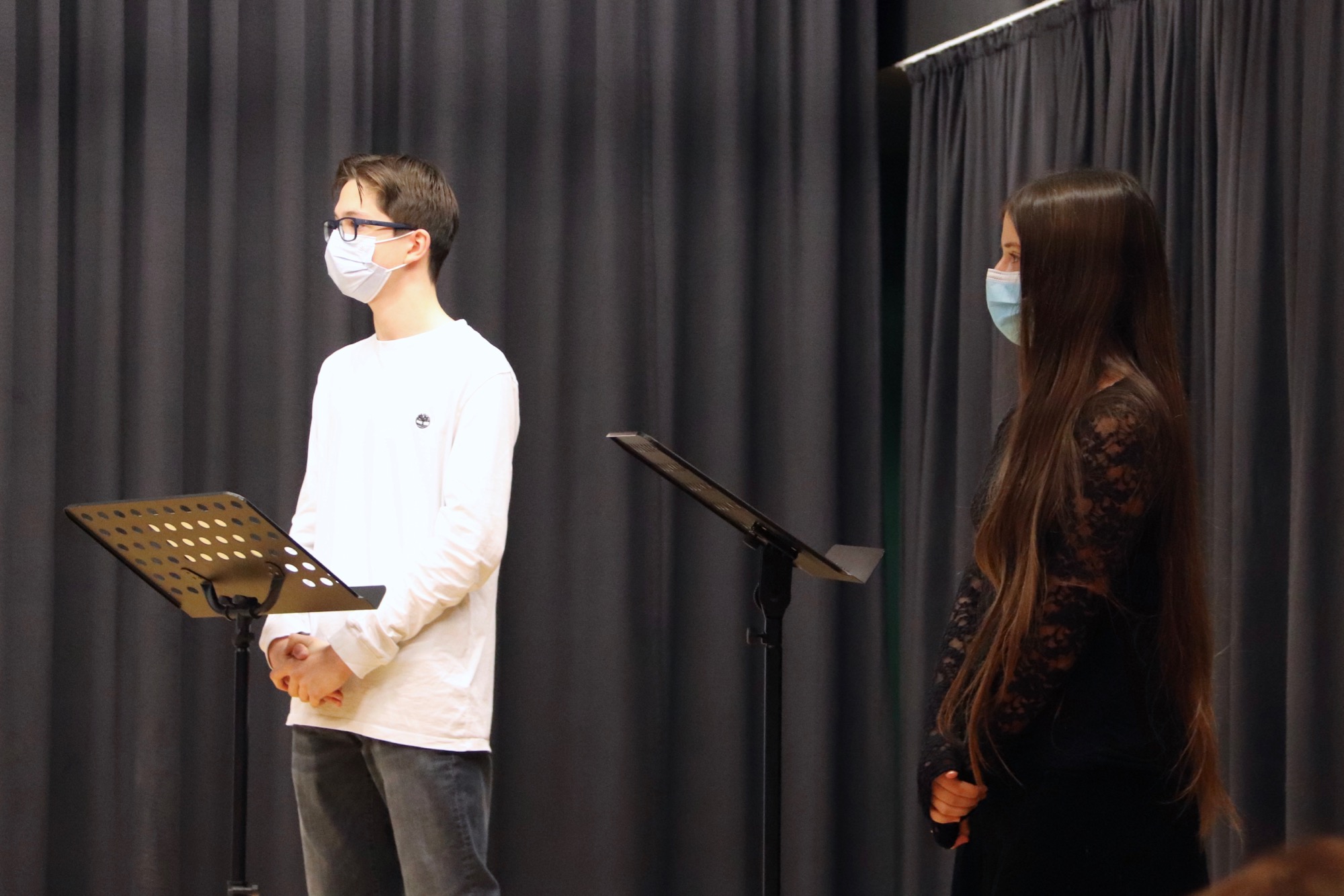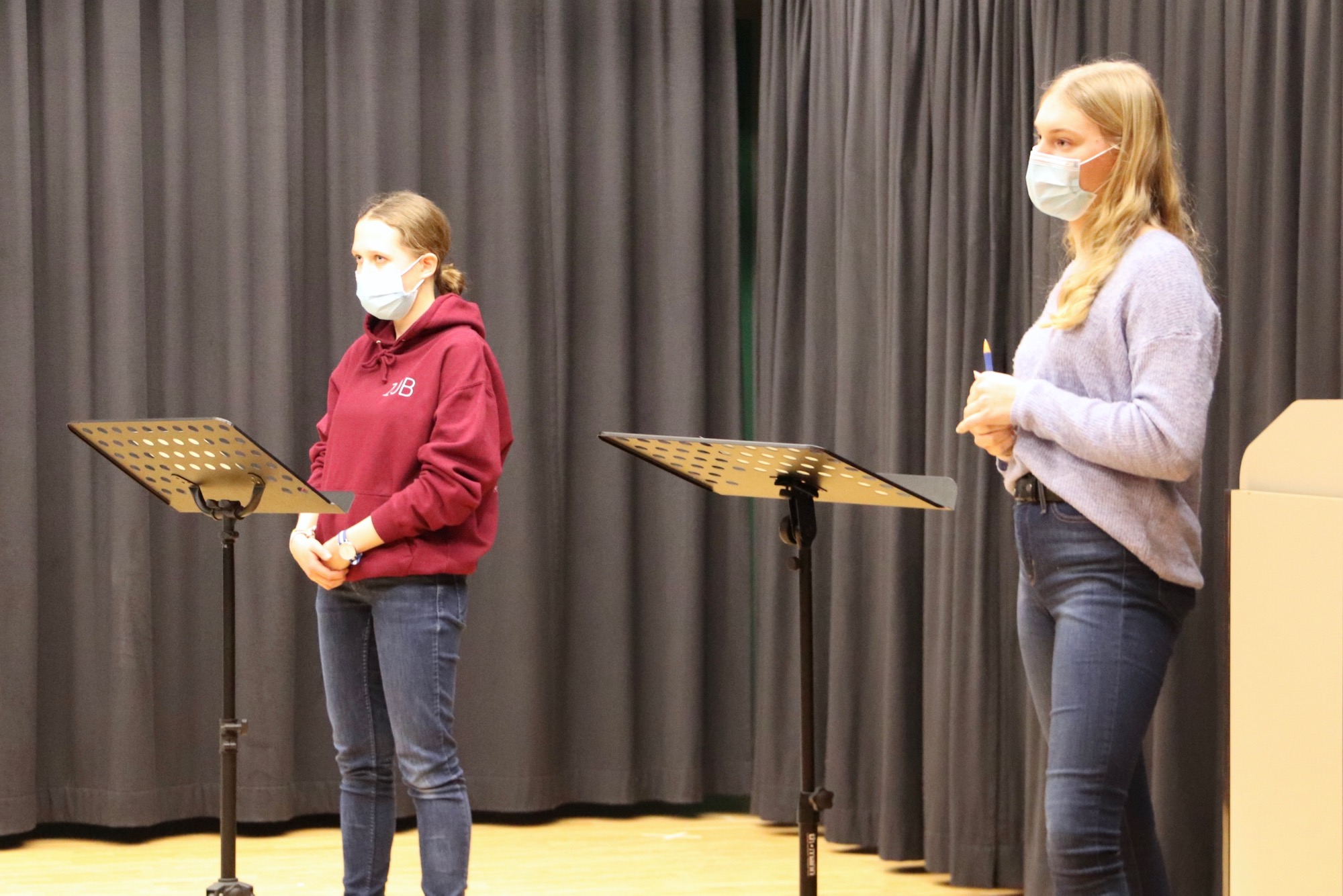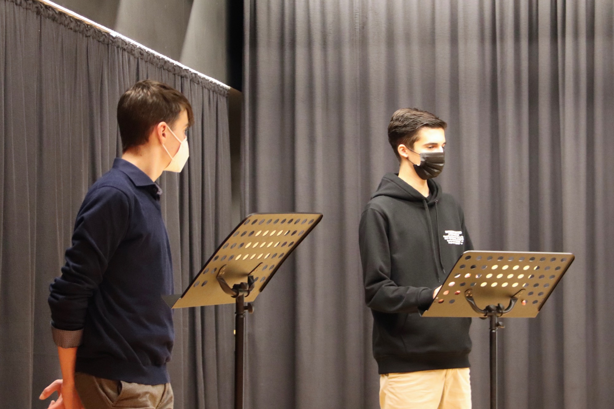 Geleitet und organisiert von Herrn Meinikmann, fanden die zwei Wettbewerbe im Theaterraum des Taunusgymnasiums statt – dieses Jahr ohne Publikum und mit Masken. Bei den 9./10. Klassen drehte sich die Debatte um das Thema „Sollen alle Schüler*innen am Taunusgymnasium ein Schul-Tablet zur Verfügung gestellt bekommen?“. Dazu vertraten Tom Jehle und Fabian Rusch die Pro-Position, während Naemi Russ und Roland Mößner die Contra-Position einnahmen.