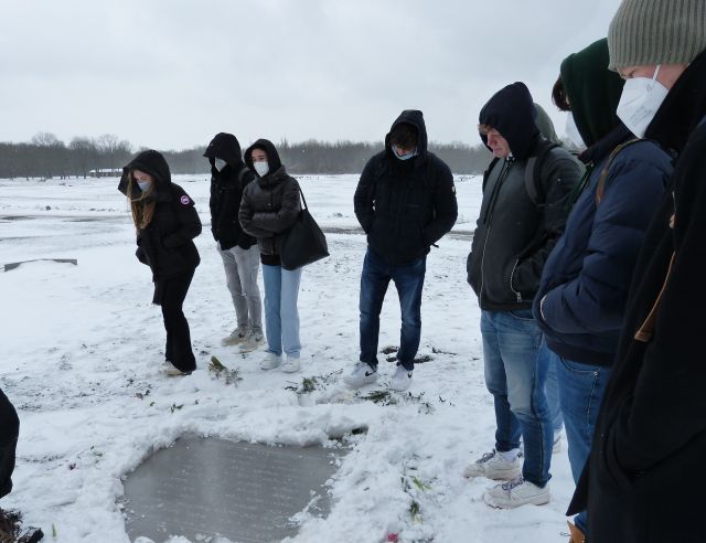 Nachdem die gesamte Oberstufenzeit von Einschränkungen wegen der Corona-Pandemie geprägt gewesen war, hatte sich der Leistungskurs Geschichte des diesjährigen Abiturjahrgangs unbedingt gewünscht die Exkursion in das Konzentrationslager Buchenwald nachholen zu können. Nachdem Lilly Stange, eine der Kursteilnehmerinnen, mit viel Engagement eine Führung vor Ort und den Besuch des Museums organisiert hatte, konnten wir per Bahn die Fahrt antreten. Uns erwartete eine sehr eindrückliche Führung bei Schnee und Eiseskälte, im „Krematorium“ waren wir ganz für uns, das Gelände war in seiner Leere besonders eindrucksvoll. In besonders starkem Kontrast zu den unmenschlichen Lebens- und Arbeitsbedingungen für die Häftlinge – insgesamt waren hier über 250 000 Menschen inhaftiert gewesen, von denen über 56 000 Menschen an entkräftender Arbeit bei mangelnder Versorgung, Folter, medizinischen Experimenten und Auszehrung starben - stand für die Schüler der KZ-eigene, nach damaligen Maßstäben besonders tierfreundlich angelegte Zoo für die SS-Wachmannschaften, der in unmittelbarer Nachbarschaft zum „Krematorium“ liegt. Die Dauerausstellung im dortigen Museum und die Kunstausstellung, die Kunstwerke zeigt, die heimlich von Häftlingen angefertigt worden waren und die beide von jedem in seinem eigenen Tempo und nach eigenen Interessen durchlaufen werden konnte, vervollständigte den Eindruck und rundete den Tag ab.