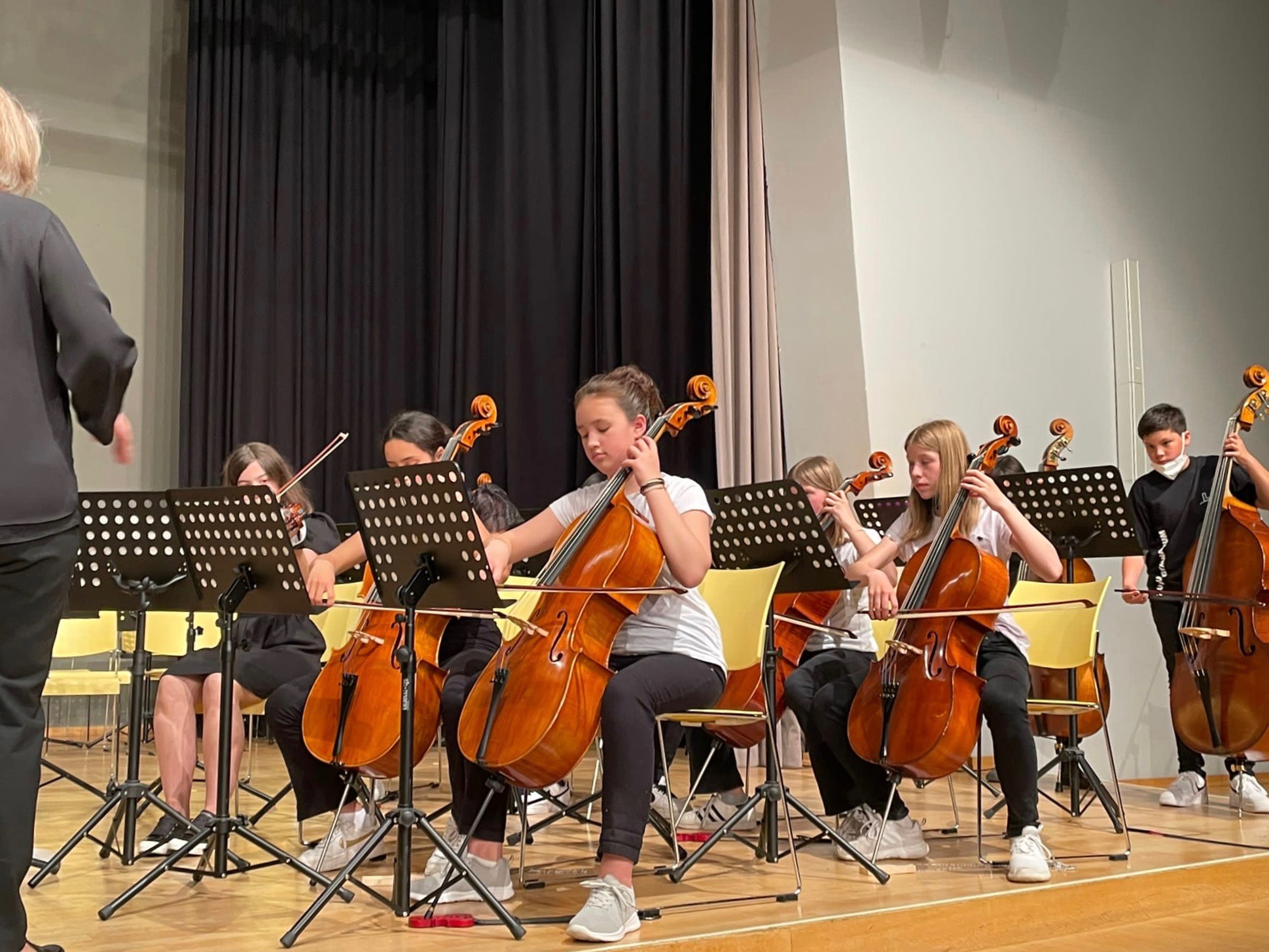Auch die Streichergruppe der Klasse 6 zauberte unter der Leitung von Frau Dr. Eden eine besondere Stimmung in den Saal – zunächst mit einer Kanon-Version des traditionellen „Bruder Jakob“, gefolgt von einem Orchesterarrangement desselben Lieds von B.P. Boch.