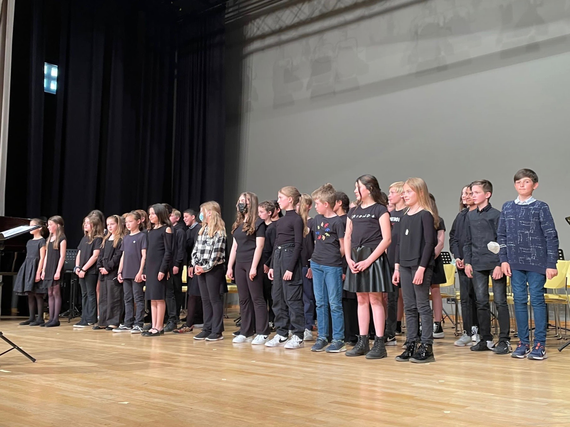 Die Gesangsgruppe der Klasse 6, ebenfalls geleitet von Frau Unterlerchner und Frau Büttner, berührte mit dem Song „Imagine“ von John Lennon das Publikum besonders emotional. Wie Herr Hublow anmerkte, war dieses Lied mit seiner Friedensbotschaft nie aktueller als heute.