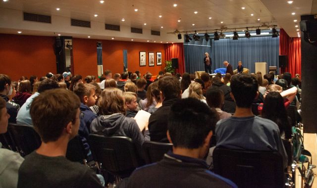 Nach einem Vortrag über die Entstehung des Grundgesetzes fand eine Podiumsdiskussion, auch unter reger Beteiligung der Schülerinnen und Schüler, statt. Abschließend erhielten die Schülerinnen und Schüler eine eigene Ausgabe des Grundgesetzes