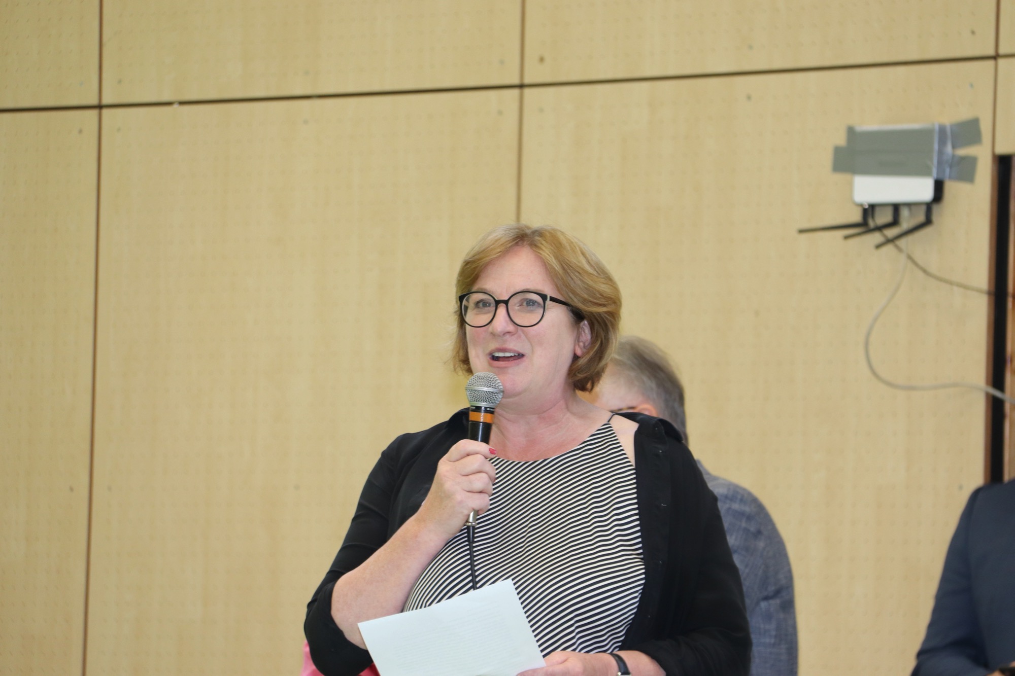 In ihrer Ansprache äußerte Frau Herbst, Schulleiterin des Taunusgymnasiums, ihren Respekt für die engagierte Arbeit der Lehrkräfte aus dem Bereich Tanz: Sie könne sich kaum vorstellen, „was für eine Arbeit für die Kolleginnen und Kollegen investiert haben, um die Begeisterung für den Tanz zu bewahren“ – denn es sei schwer genug gewesen, in der Pandemie überhaupt den „normalen“ Schulbetrieb aufrecht zu erhalten. „Wieviel schwieriger war es da, zusätzliche Aktivitäten zu etablieren und am Leben zu erhalten“, so Frau Herbst weiter. Und sie stellte fest: „Wer auch immer heute gewinnt – gewonnen hat auf jeden Fall jetzt schon das Tanzen“.