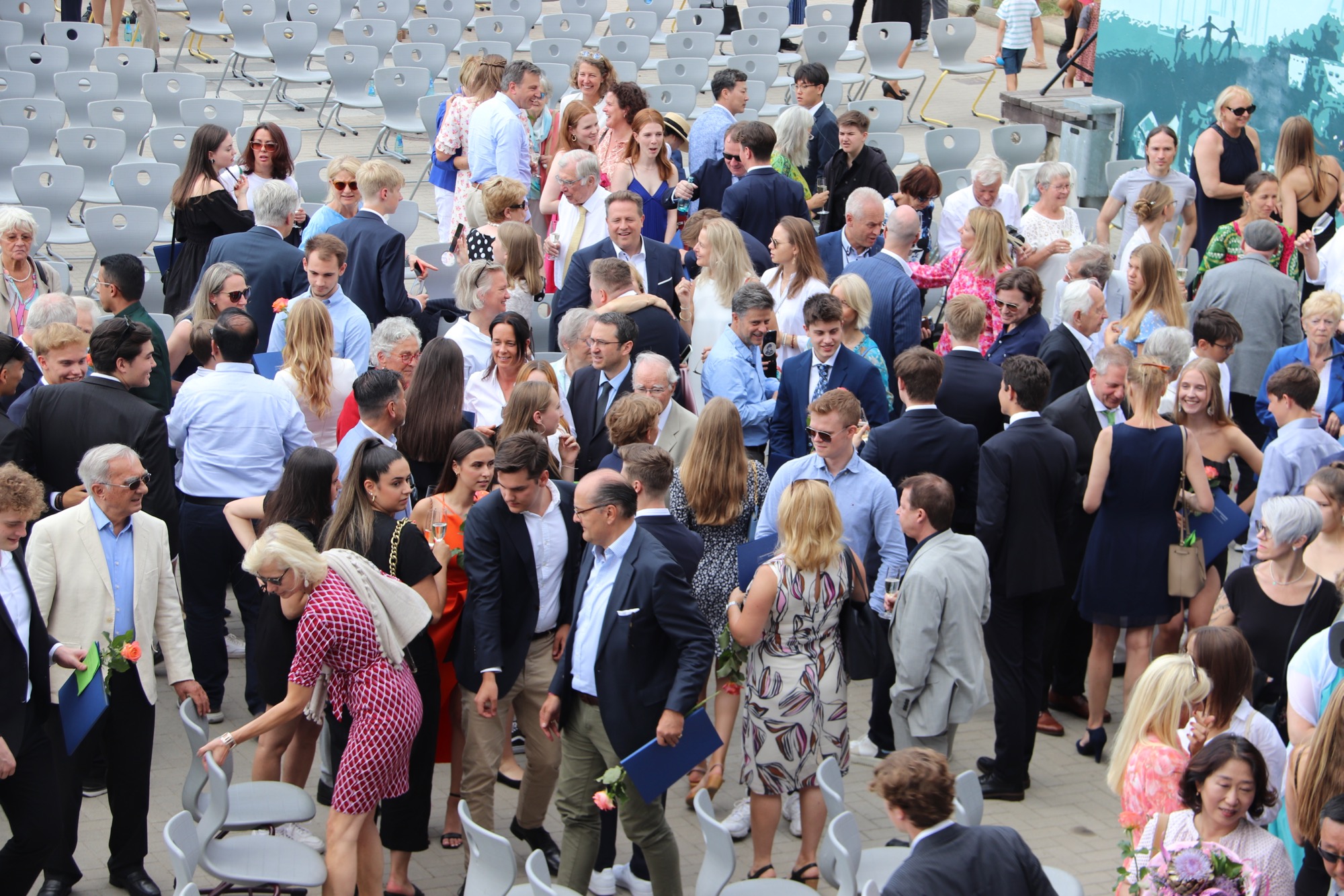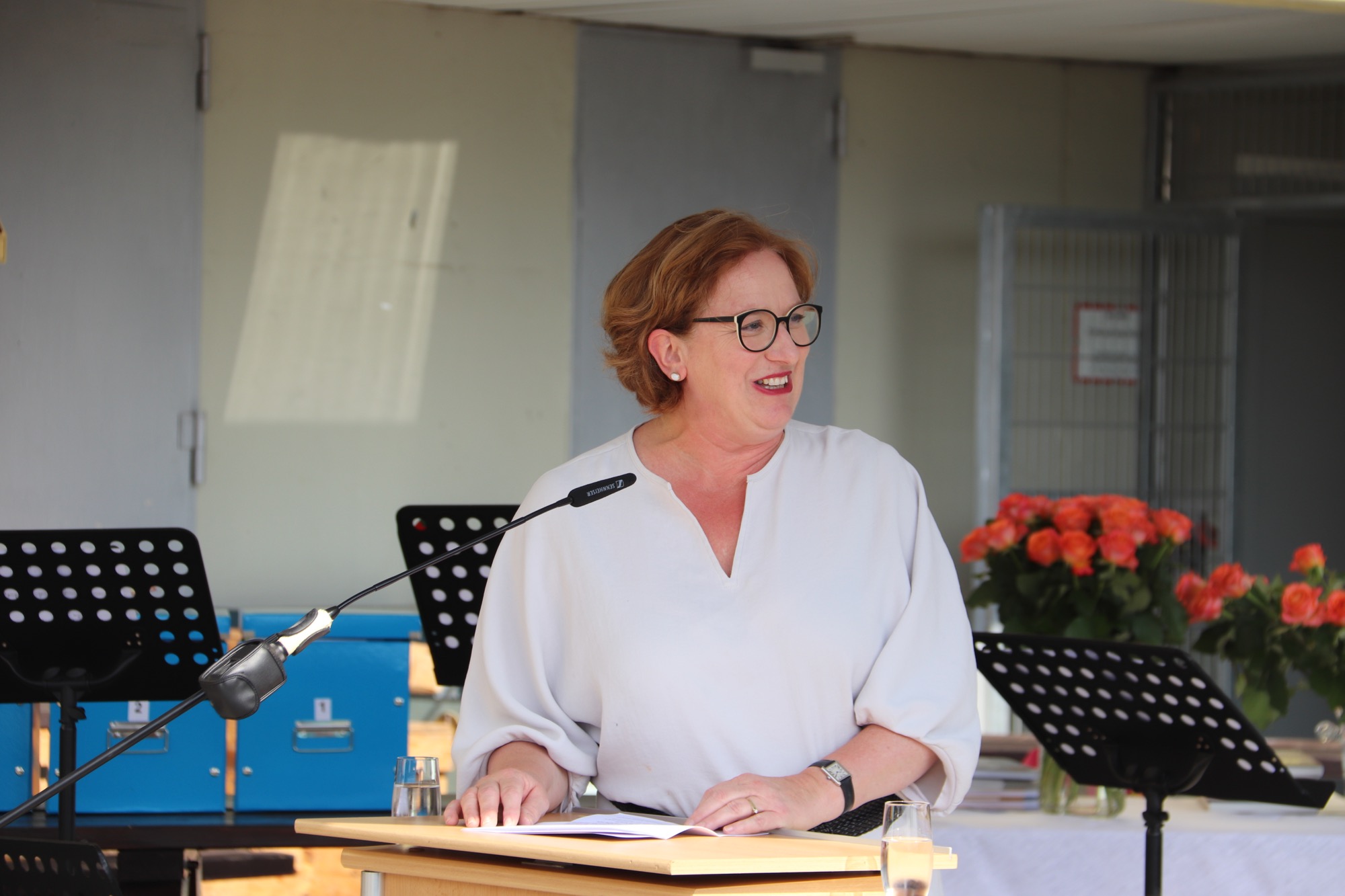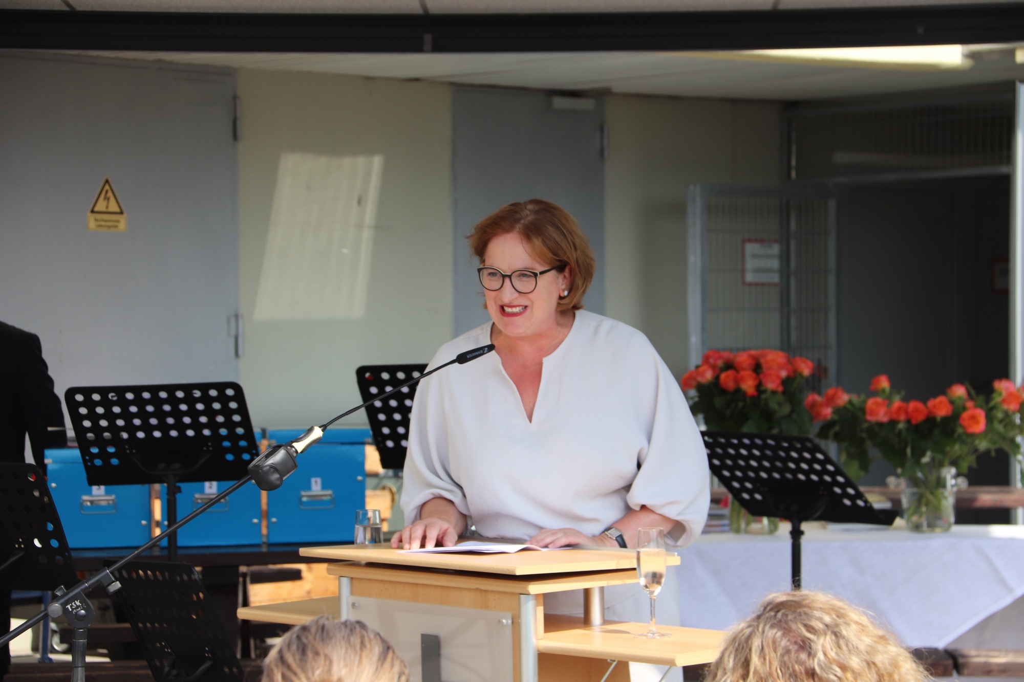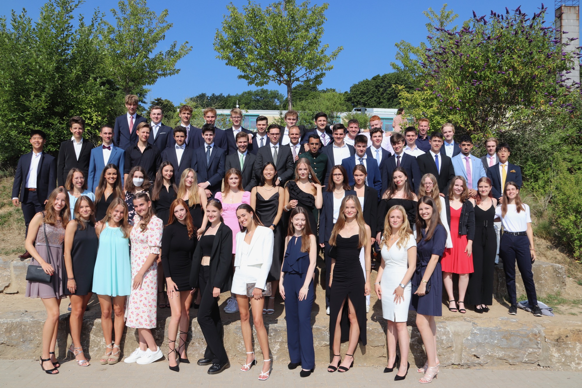 Als Vertreterin der Elternschaft bekräftigte Frau Köpf in ihrer Rede, wie herausfordernd die letzten Jahre für alle Familien gewesen seien, und gab den Absolvent*innen einige gute Ratschläge und Gedanken mit auf den Weg. In ihrer Rede von Seiten der Abiturient*innen ließen Lina Schumann und Charlotte Peeters zahlreiche Schlüsselerlebnisse der gemeinsamen Schulzeit Revue passieren und gratulierten ihren Weggefährt*innen zum erreichten Abitur – gefolgt von großem Applaus.