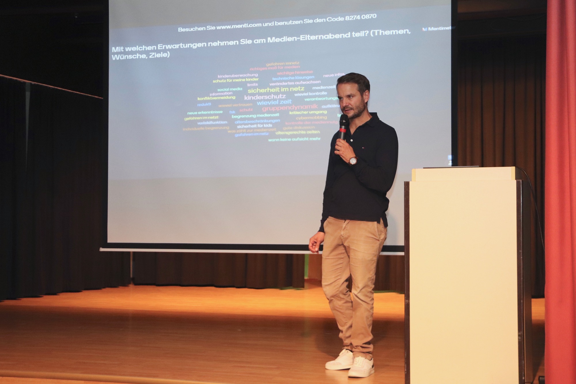 Eine Mischung verschiedener Themen sorgte für einen informativen und interaktiven Abend: Informationen zur schulischen Praxis, Empfehlungen für Eltern, aktuelle Themen des Jugendmedienschutzes, Jugendliche Medienwelten und Desinformationen im Netz. Indem Herr Langner die Eltern mit gebündelten Informationen versorgte, auf unterhaltsame Art Video-Inhalte einband und eine ausführliche, spannende und konstruktive Diskussion auch der Eltern untereinander in Gang brachte, gingen diese anschließend bereichert und zugleich gut unterhalten nach Hause.