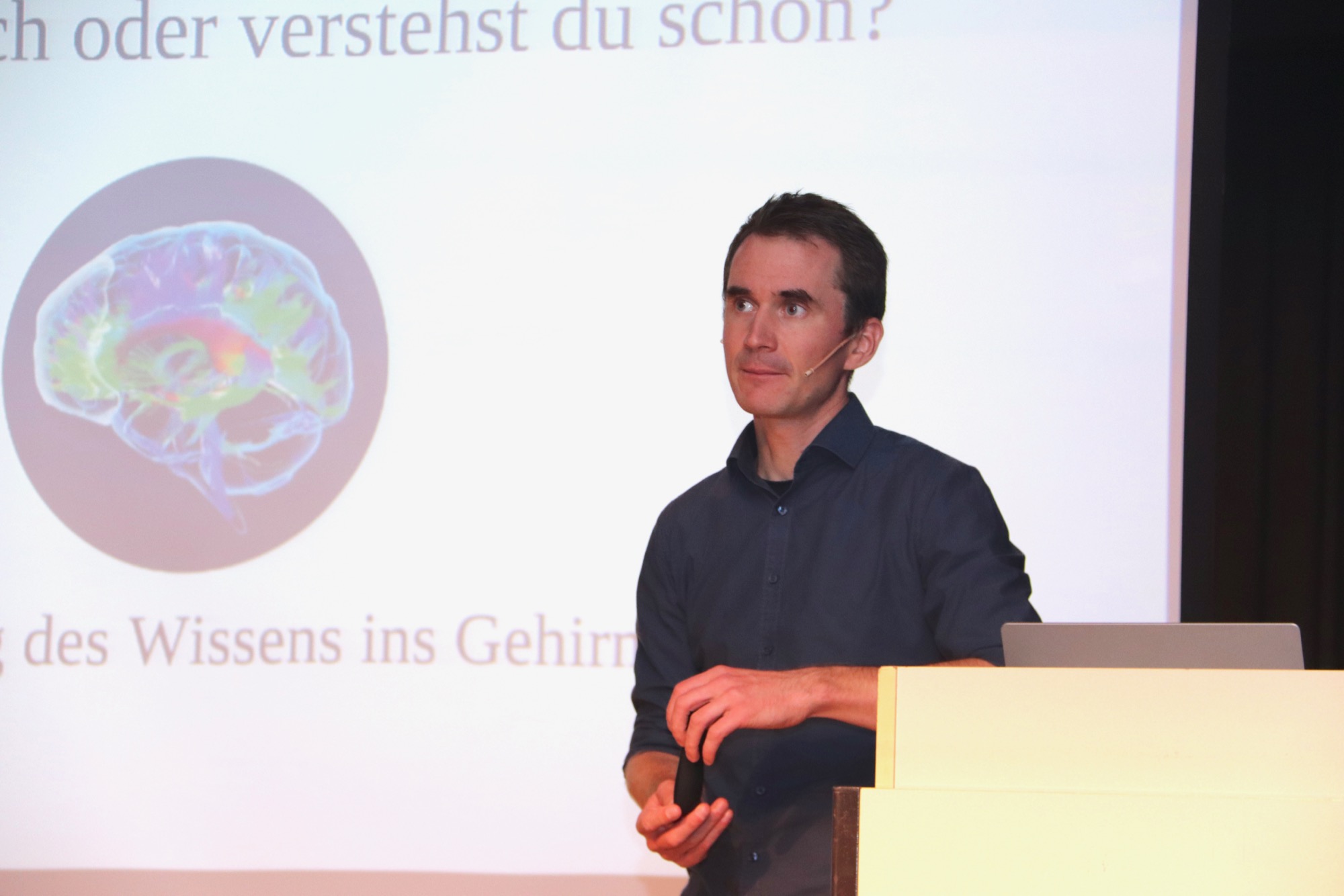 Auch die Frage, wie man diese Erkenntnisse im schulischen Umfeld umsetzen könne, beantwortete Dr. Beck auf inspirierende Art. Etwa sprach er sich für die Einführung von fachübergreifenden Projekten aus, da es einen hohen Lernerfolg ermögliche, wenn ein Problem aus mehreren Perspektiven betrachtet wird. Er betonte auch die Wichtigkeit von regelmäßigen Pausen beim Lernen, da in diesen Zeiten der Entspannung im Gehirn tiefgreifende Konzepte aufgebaut werden. Auch die aktive Rolle des Lernenden beim Lernprozess betonte Dr. Beck – wenn Wissen selbst erworben wird oder zumindest verstanden wird, warum gewisse  Sachverhalte gelernt werden, ist Wissensvermittlung wirksam. Dass Menschen Rätsel lieben, solle man proaktiv nutzen – wenn Unterricht geheimnisvoll sei, funktioniere er besser.