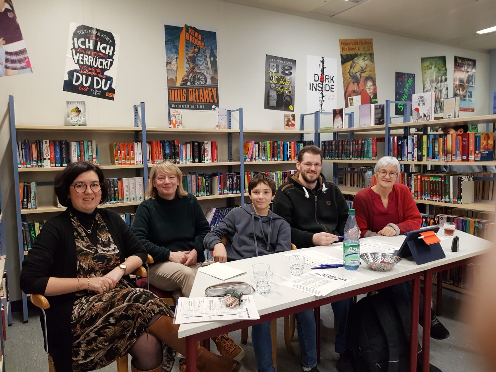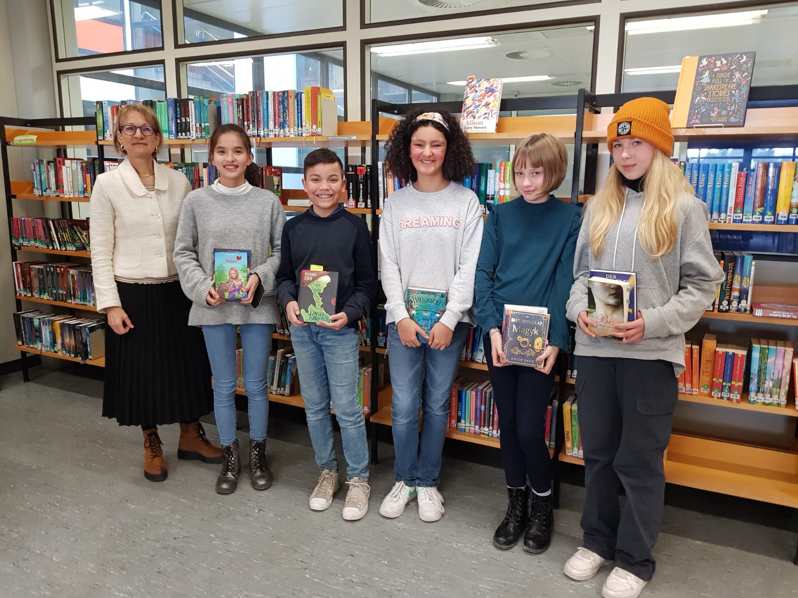 Am Donnerstag, den 8. Dezember fand erneut der Vorlesewettbewerb der sechsten Klassen in unserer Schulbibliothek statt. Auch dieses Jahr wurden interessante Bücher vorgestellt und die Jury, bestehend aus dem Vorjahressieger, Frau Hesse aus der Stadtbibliothek, zwei Deutschkollegen*innen und einer Mutter aus dem Bibliotheksteam, und die Fans durften sich an der guten Lesekompetenz der sechs Vorleser*innen erfreuen. Als Siegerin ging dabei Naelle Kim aus der Klasse 6c hervor, die aus dem Jugendroman „Sieben Pfoten für Penny – ein Fohlenfrühling“ von Thomas Brezina sehr überzeugend vorlas und auch den Fremdtext spielend meisterte. Auch die Zweitplatzierte, Rebecca Andresen aus der 6f, präsentierte einen gekonnten Vortrag. Die anschließenden Buchpräsente an alle Vorleser*innen wurden dankenswerterweise wieder von der Buchhandlung „Millenium“ gespendet.