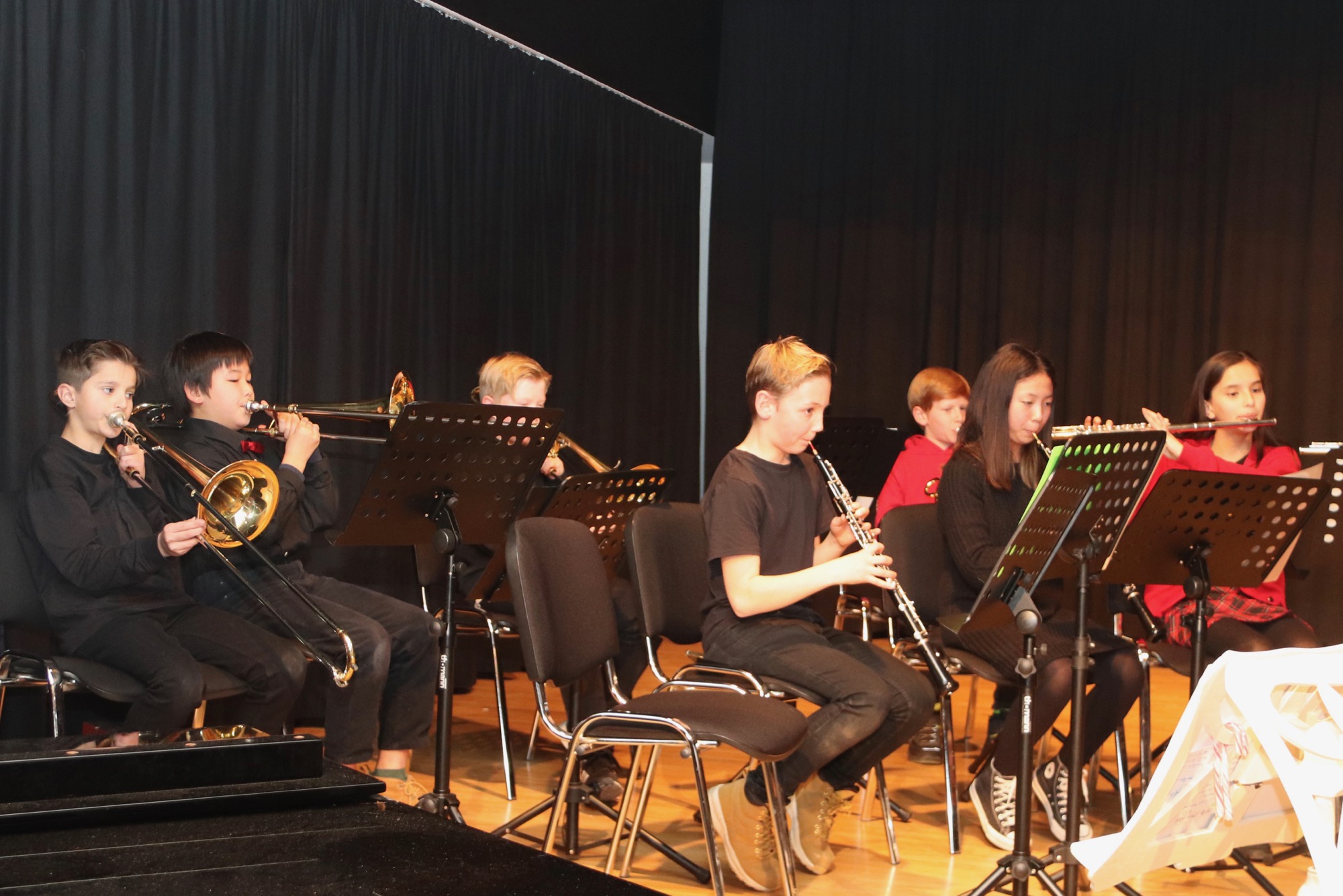 Die Bläsergruppe unter Leitung von Frau Unterlerchner spielte die Weihnachts-Klassiker "Jingle Bells", "O du fröhliche" und "We Wish you a Merry Christmas", und auch hier wurde deutlich, welch beeindruckende Arbeit an den Instrumenten und im Ensemble stattgefunden hat.