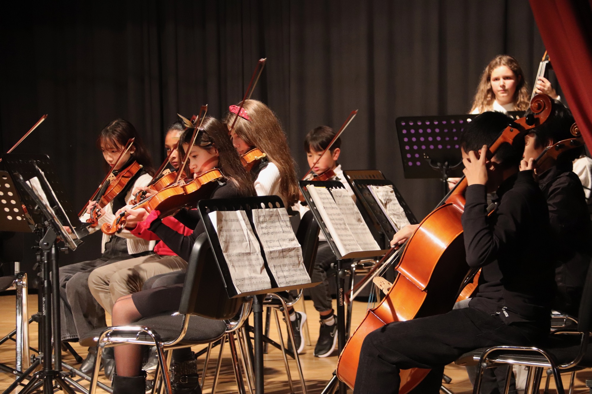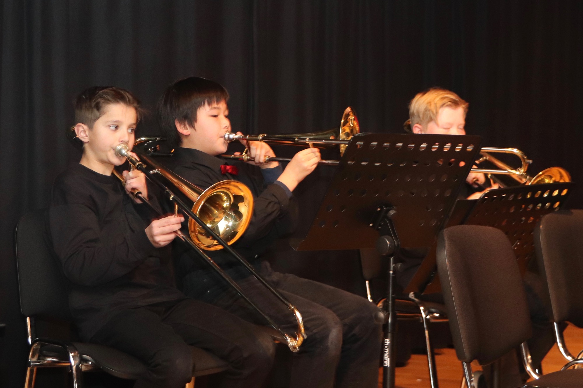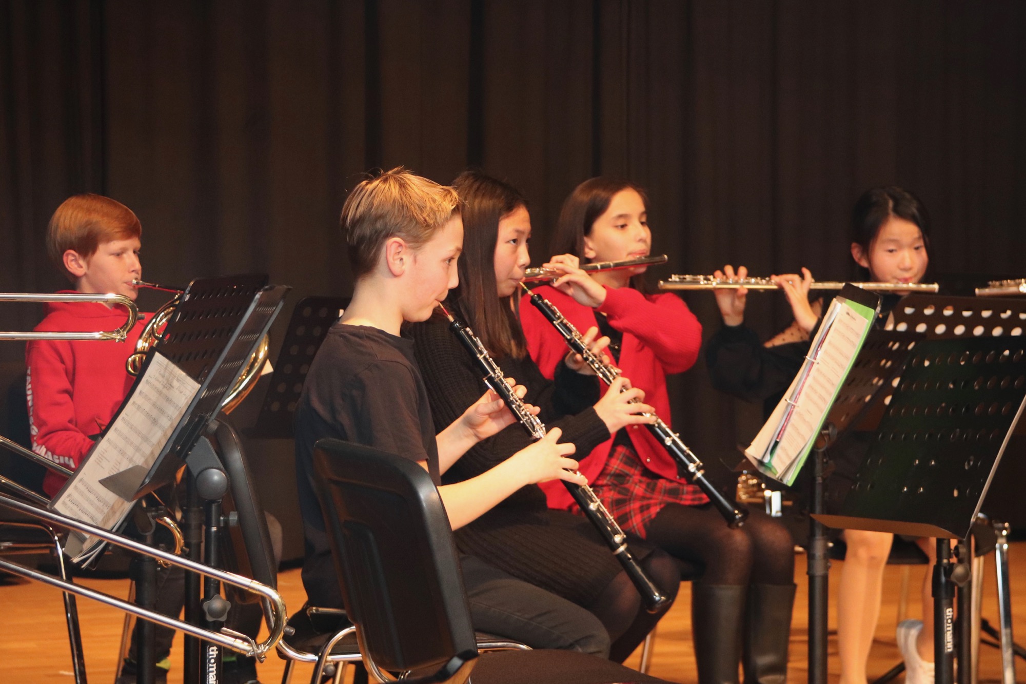 Beim Adventskonzert der Streichergruppe, Bläsergruppe und Gesangsgruppe der 6. Klassen kehrte eine besinnliche und gleichzeit mitreißende Atmosphäre im voll besetzten Theatersaal des Taunusgymnasiums ein.