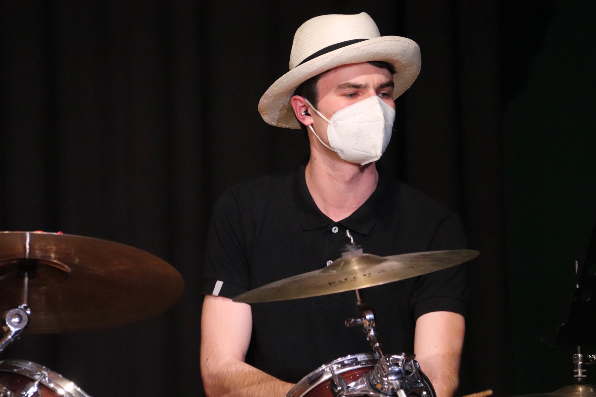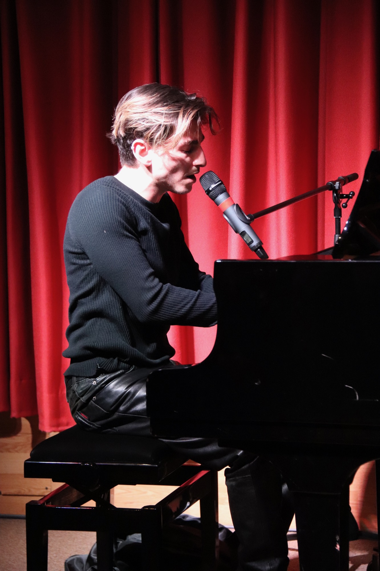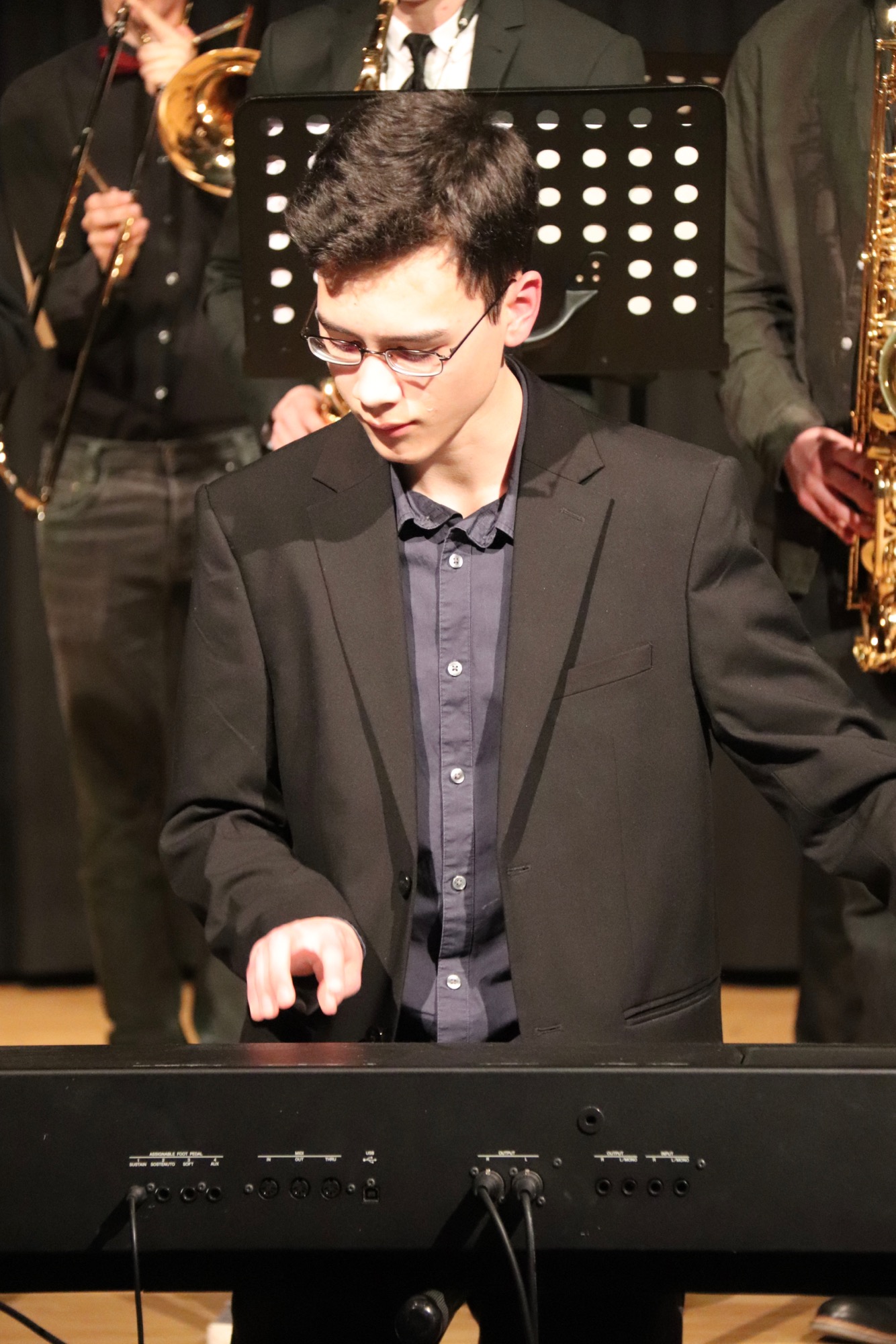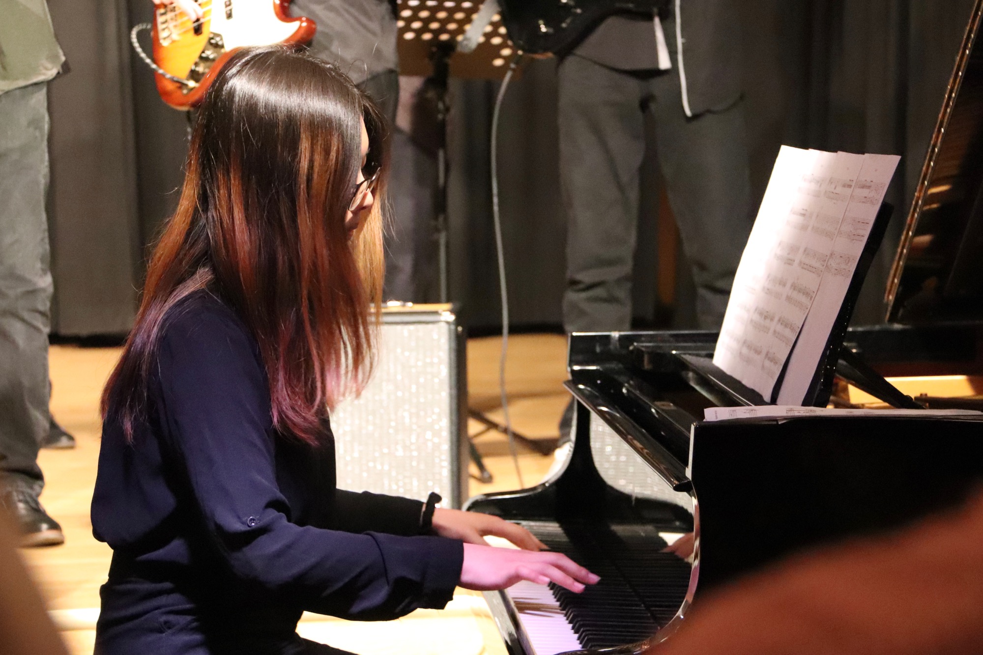 Mit Siar Yildiz trat nun ein weiterer Bekannter am Piano auf – der frühere Schüler des Taunusgymnasiums war bereits in verschiedenen Formationen und Musicals aufgetreten und verzauberte das Publikum mit einem beeindruckenden Klavierstück von Chilly Gonzales und dem sehr stimmungsvoll interpretierten Song „Crazy“ von Gnarls Barkley.