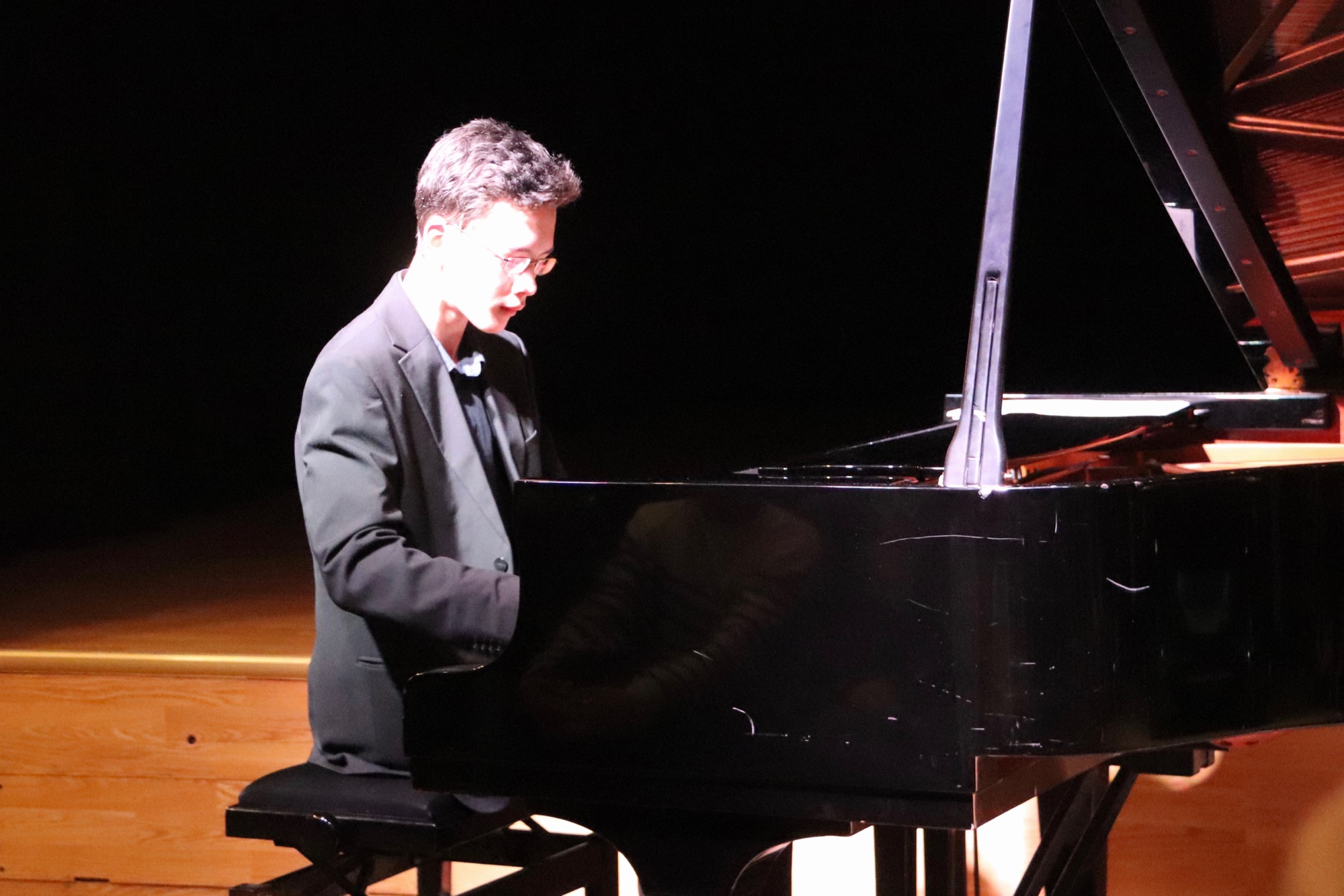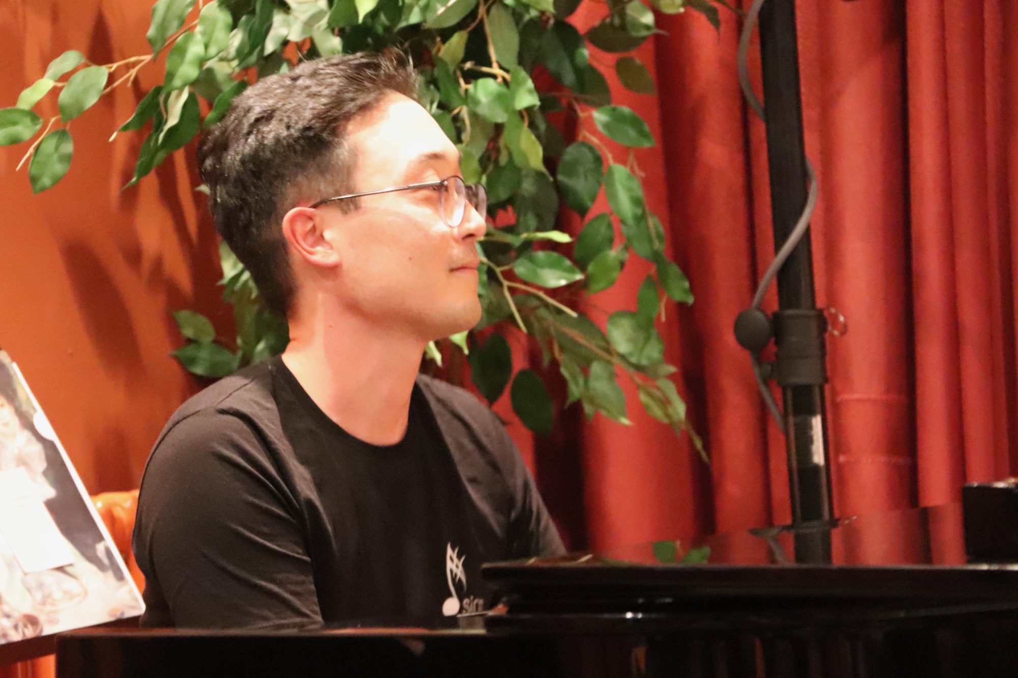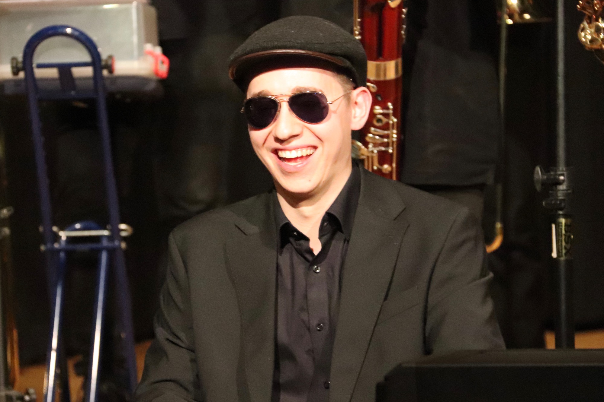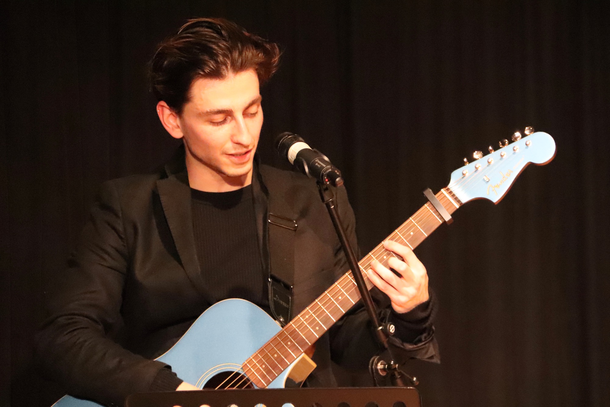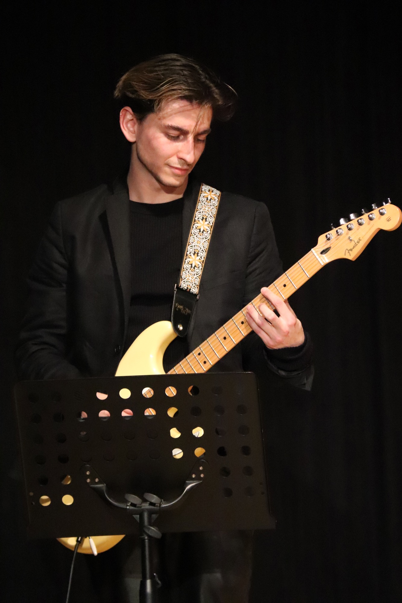Mit Siar Yildiz trat nun ein weiterer Bekannter am Piano auf – der frühere Schüler des Taunusgymnasiums war bereits in verschiedenen Formationen und Musicals aufgetreten und verzauberte das Publikum mit einem beeindruckenden Klavierstück von Chilly Gonzales und dem sehr stimmungsvoll interpretierten Song „Crazy“ von Gnarls Barkley.