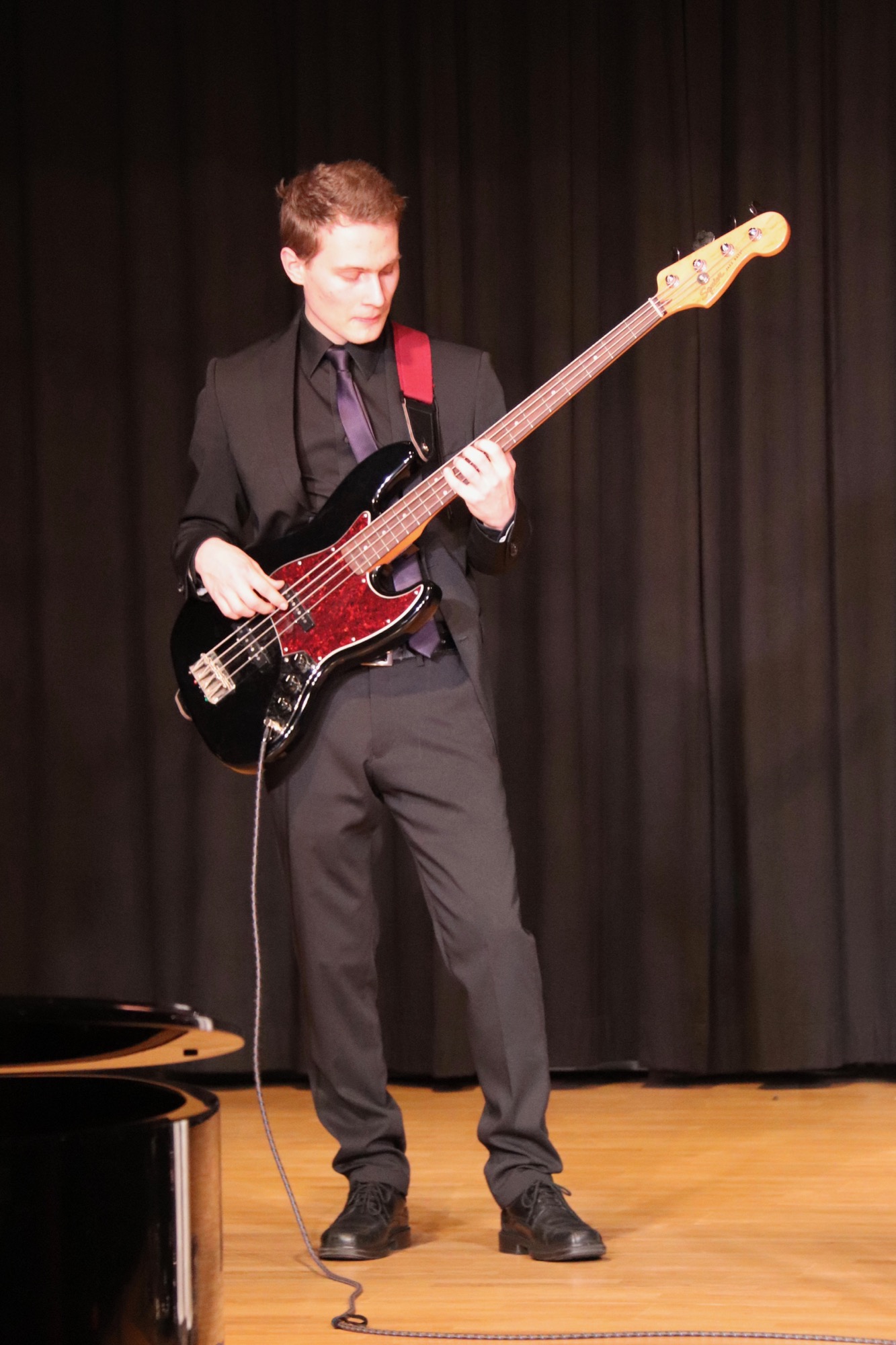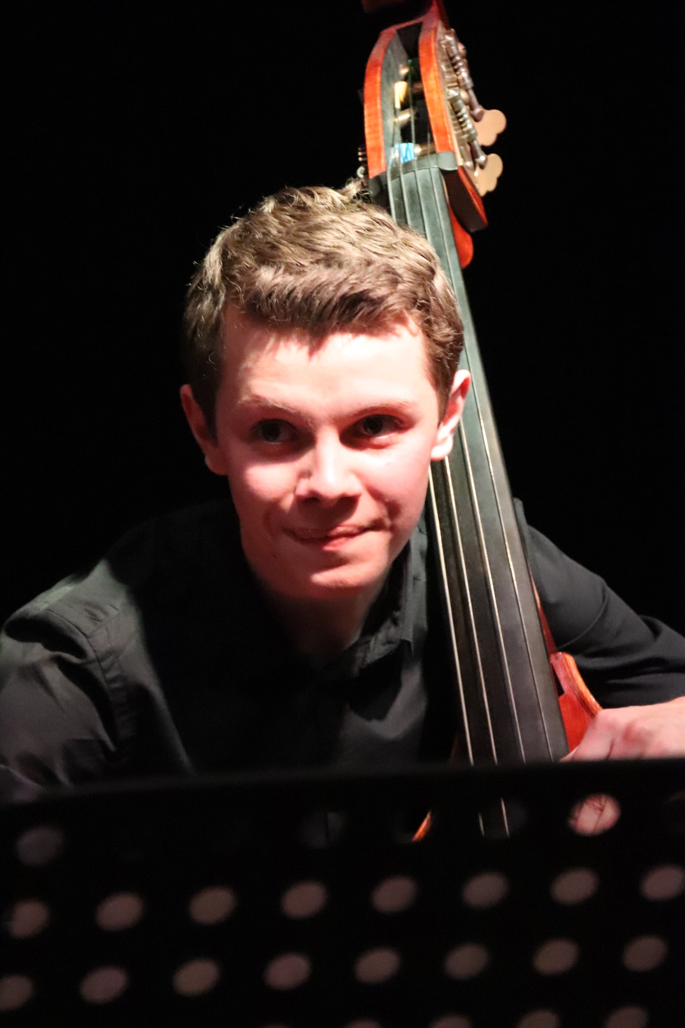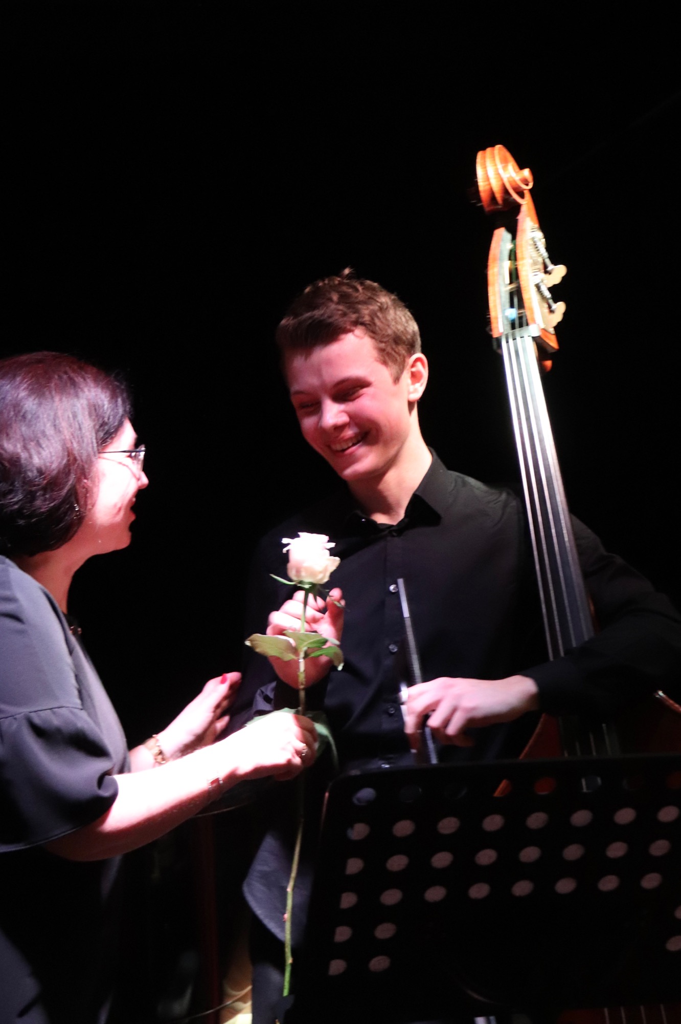 Eine Institution des Kul(tur)inarischen Abends trat nun mit Reinhold Wandel (Q4) vors Publikum: Dem Kontrabass-Virtuosen ist es gelungen, seit der 5. Klasse bis zur Q4 bei jedem „Kulti“ aufzutreten. Diesmal beeindruckte er das Publikum mit der „Valse Miniature, Op. 1, No. 2“ von Serge Koussevitzky, am Flügel begleitet von Elias Lemüller (E2). Elias, der im Bundeswettbewerb „Jugend musiziert“ kürzlich einen 1. Preis erhielt, spielte anschließend überragend das „Prelude No. 8“ von Frank Martin.