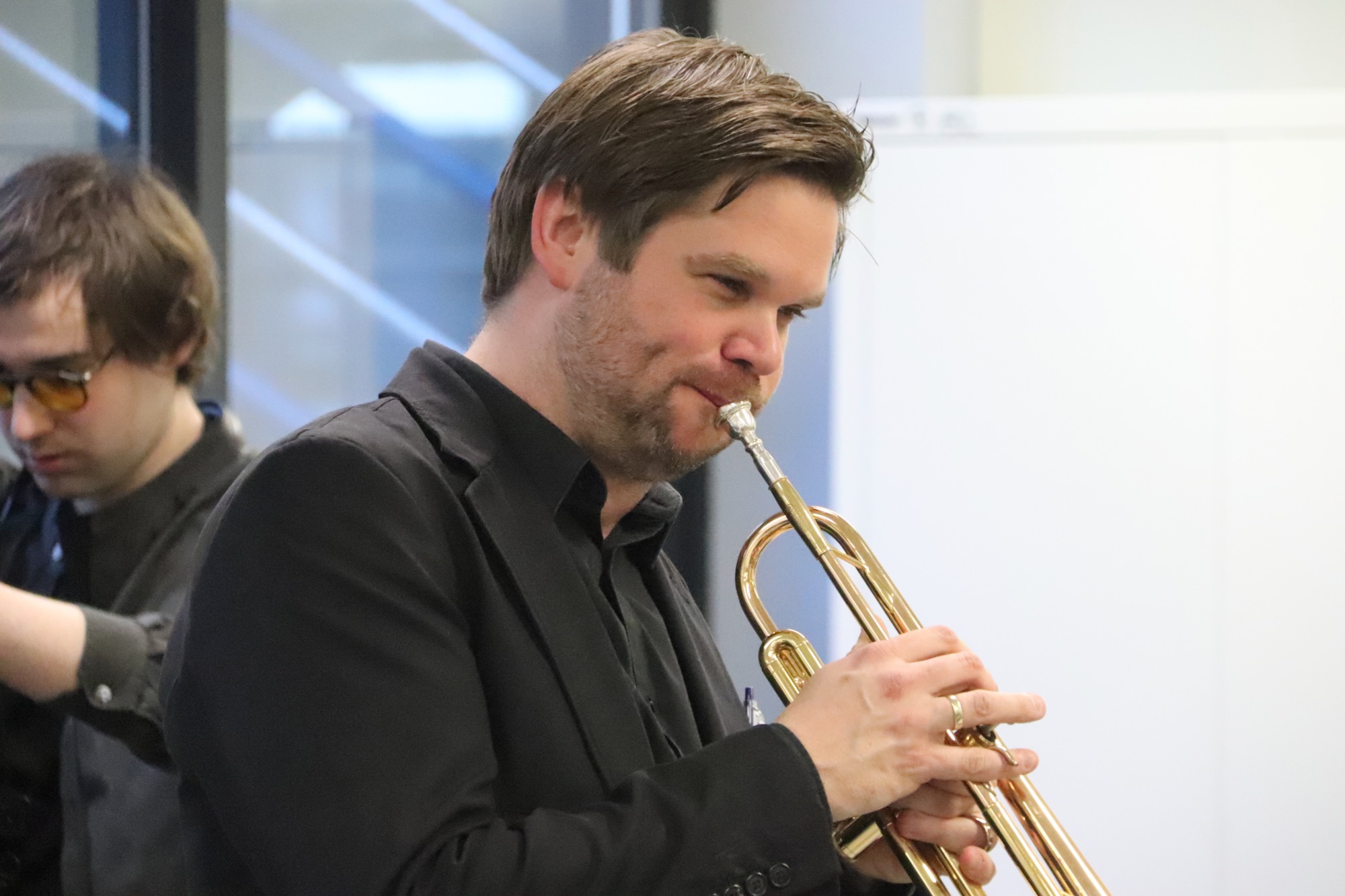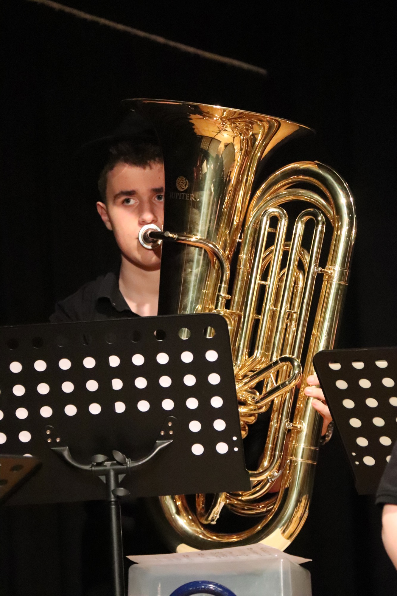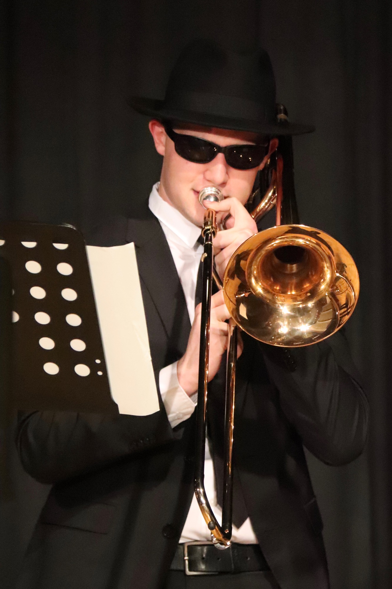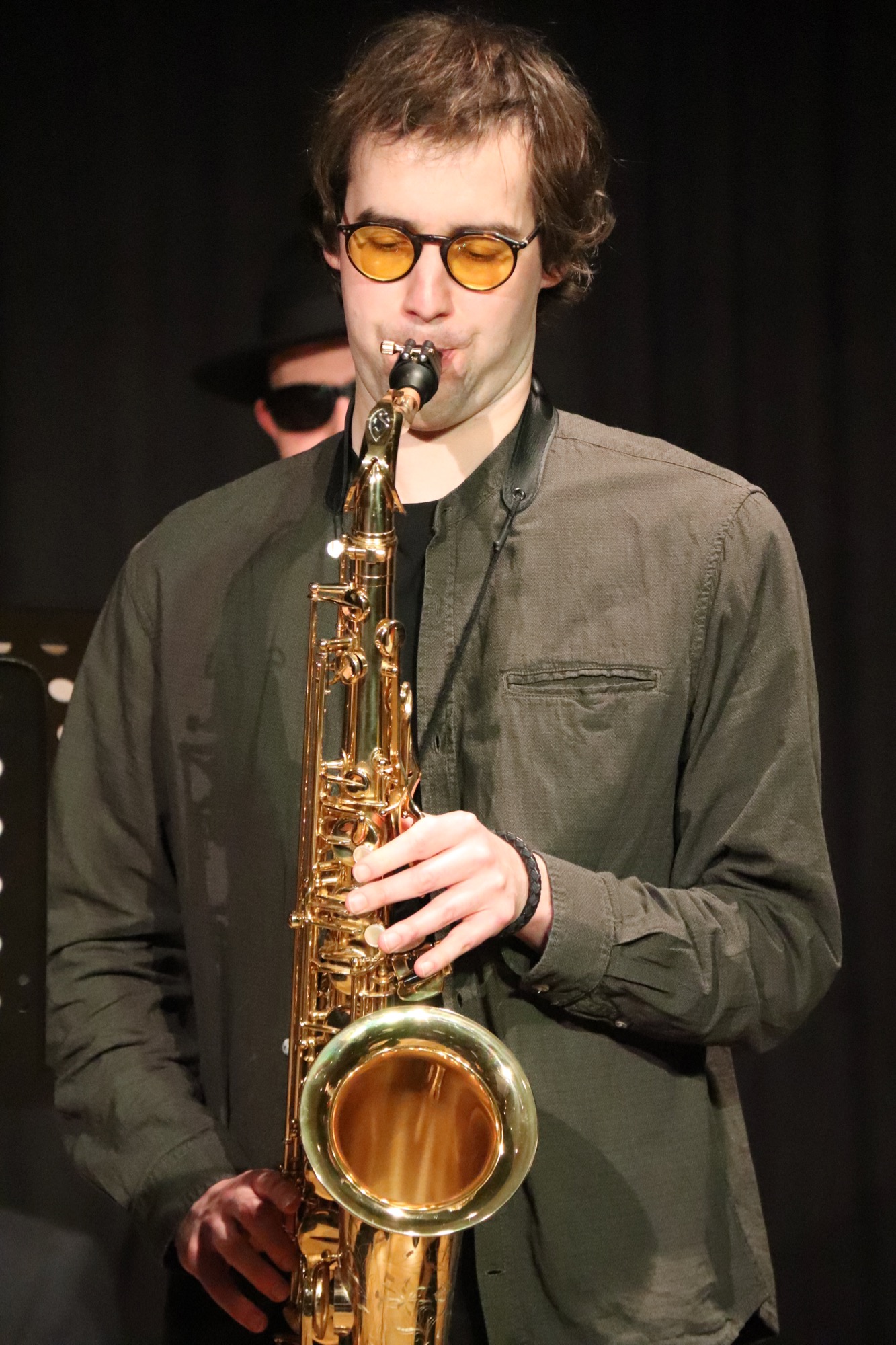 Ein eher selten zu hörendes Instrument brachte Sander Bock (Q2) zum Erklingen: Am Akkordeon spielte er die jüdische Volksweise „Klezmer-Champion“ und beeindruckte dabei mit seiner Fingerfertigkeit. Zu ihm gesellte sich daraufhin Felix Weiland (Q2) mit seiner Posaune; gemeinsam spielten sie das weltbekannte „My Way (Comme d’habitude)“, das im Arrangement von Sander und aufgrund der ungewöhnlichen Instrumentenkombination durchaus frisch und neuartig klang.