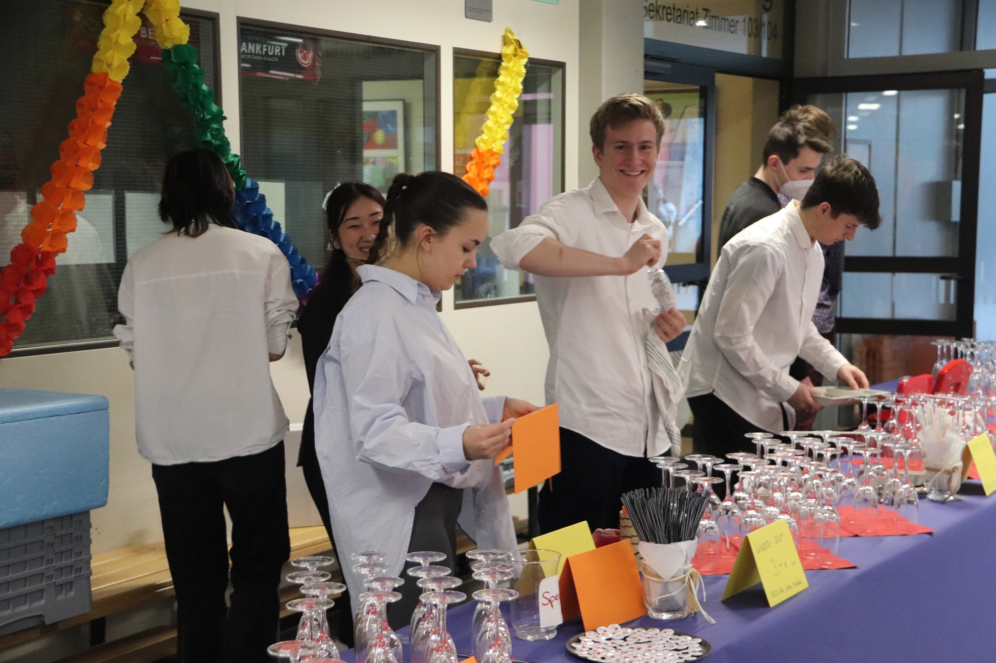 Eine weitere Tradition des Kul(tur)inarischen Abends sieht vor, dass das Plakat jedes Jahr aufs Neue von einer Schülerin oder einem Schüler gestaltet wird. Das diesjährige, äußerst gelungene Plakat kam von Gwyndel Sonogan (Q4). Im Gespräch mit Frau Antony schilderte Gwyndel, wie sie das Plakat im Rahmen einer Klausurersatzleistung bei Frau Schendzielorz erstellte.