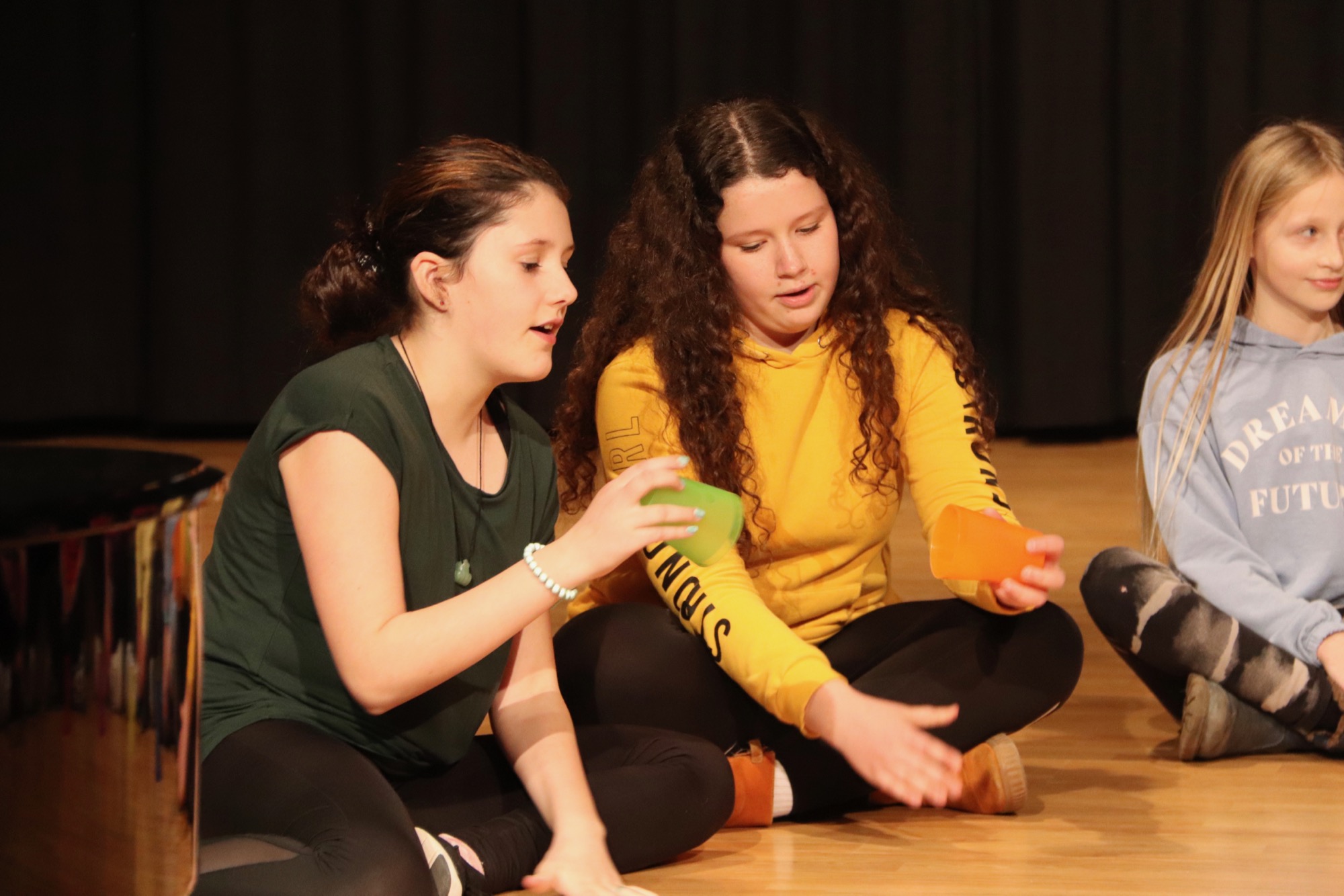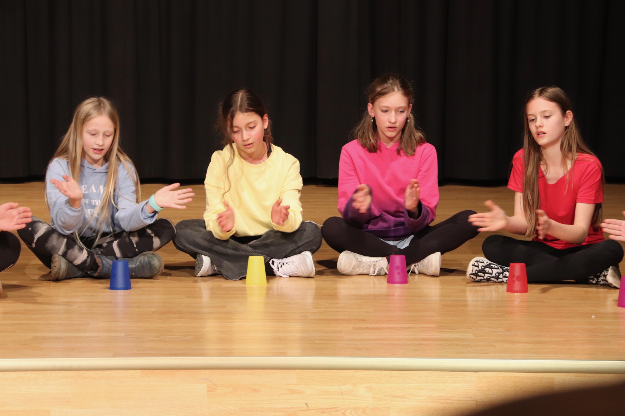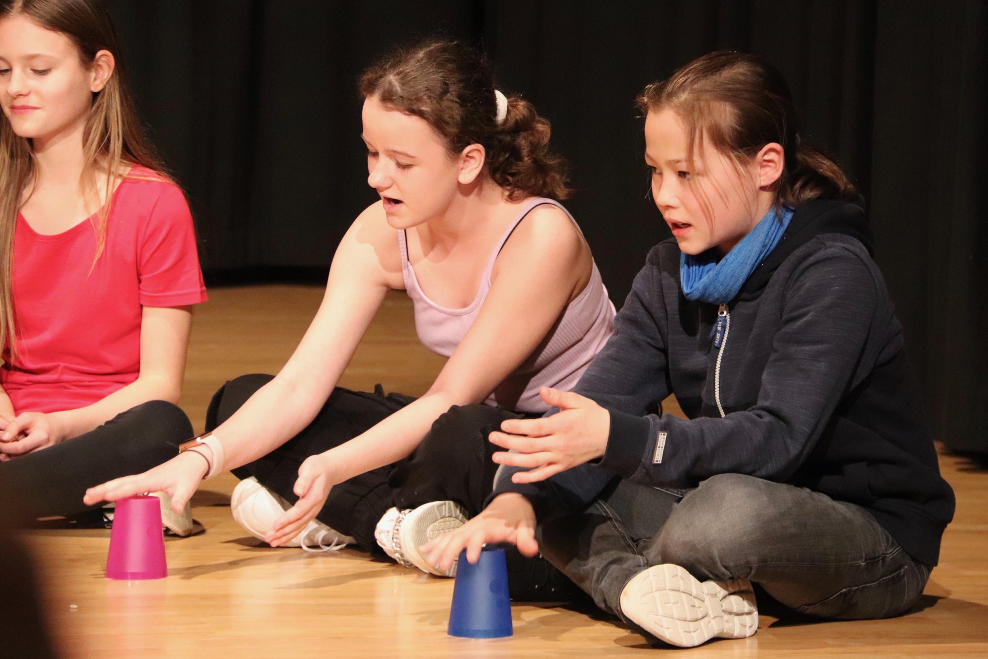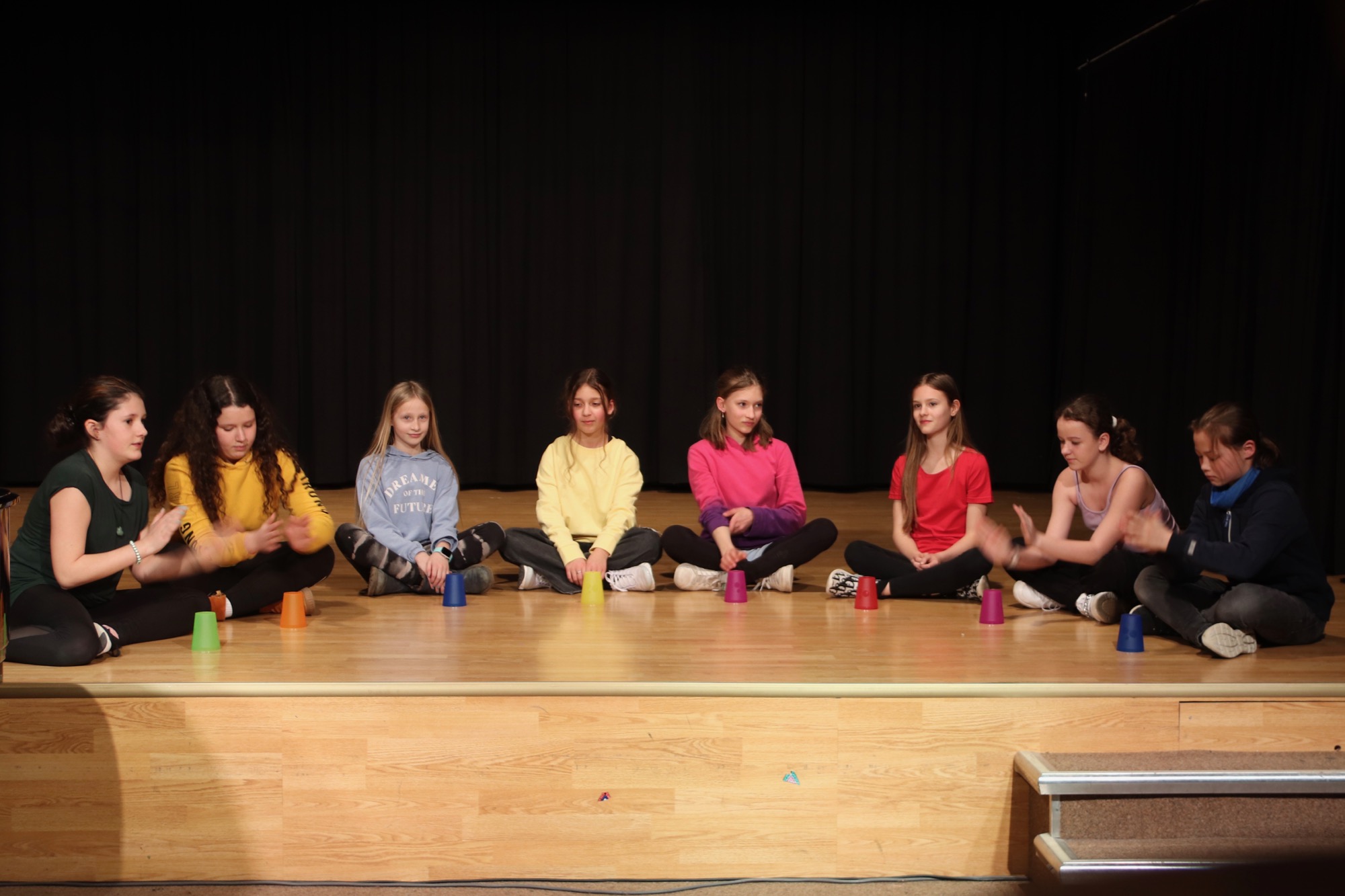 Mit dem Jugendchor „Hashtag Sing“ nahmen nun acht singbegeisterte Schüler*innen auf der Bühne Platz – und sogar ein Schülervater war an dem Auftritt maßgeblich beteiligt: Herr Fujita, Leiter des Chors, begleitete die Kinder aus den Jahrgangsstufen 5 und 6 auf dem Flügel. Der „Cup“-Song aus dem Musical-Film „Pitch Perfect“ sorgte mit mehrstimmigem Gesang und gleichzeitig gekonnten Becher-Percussions für Begeisterung im Publikum.