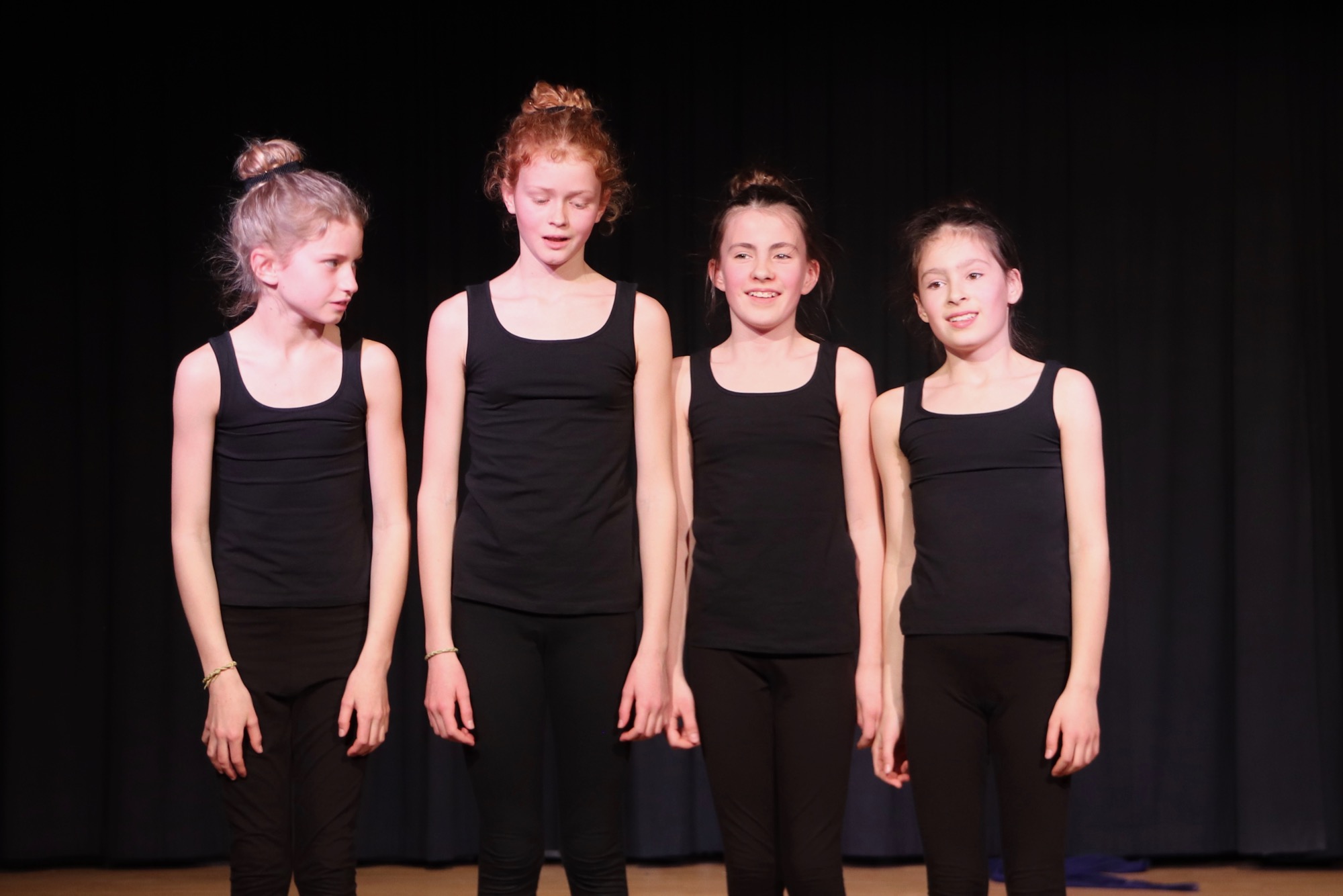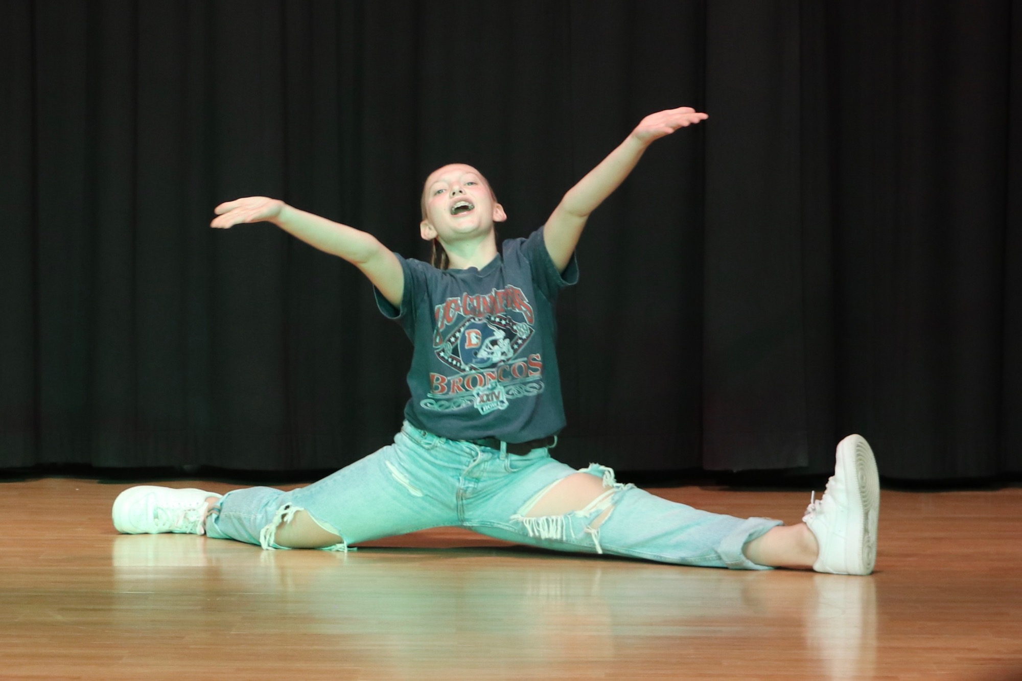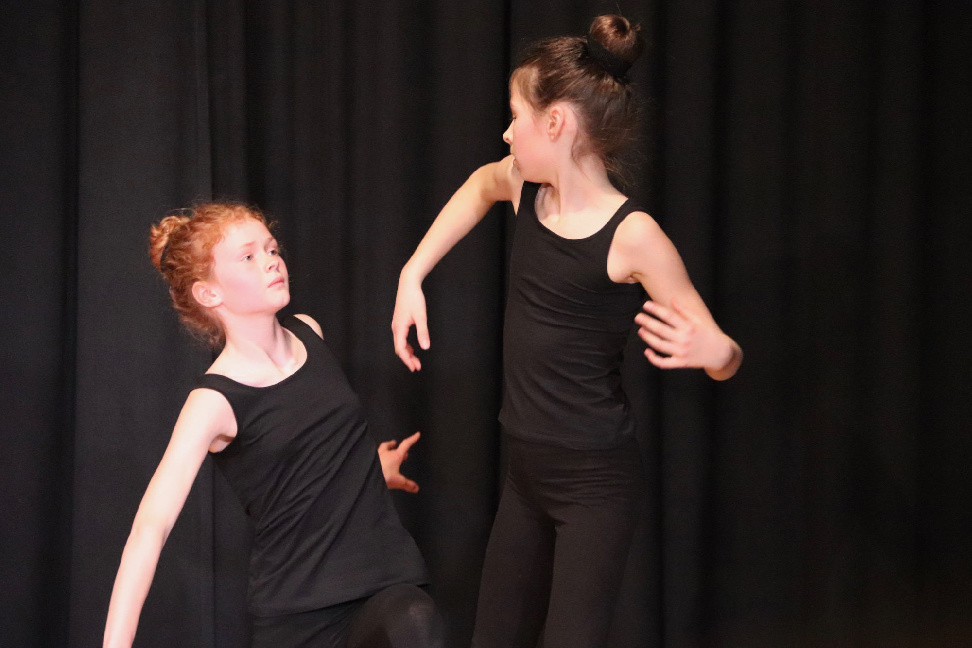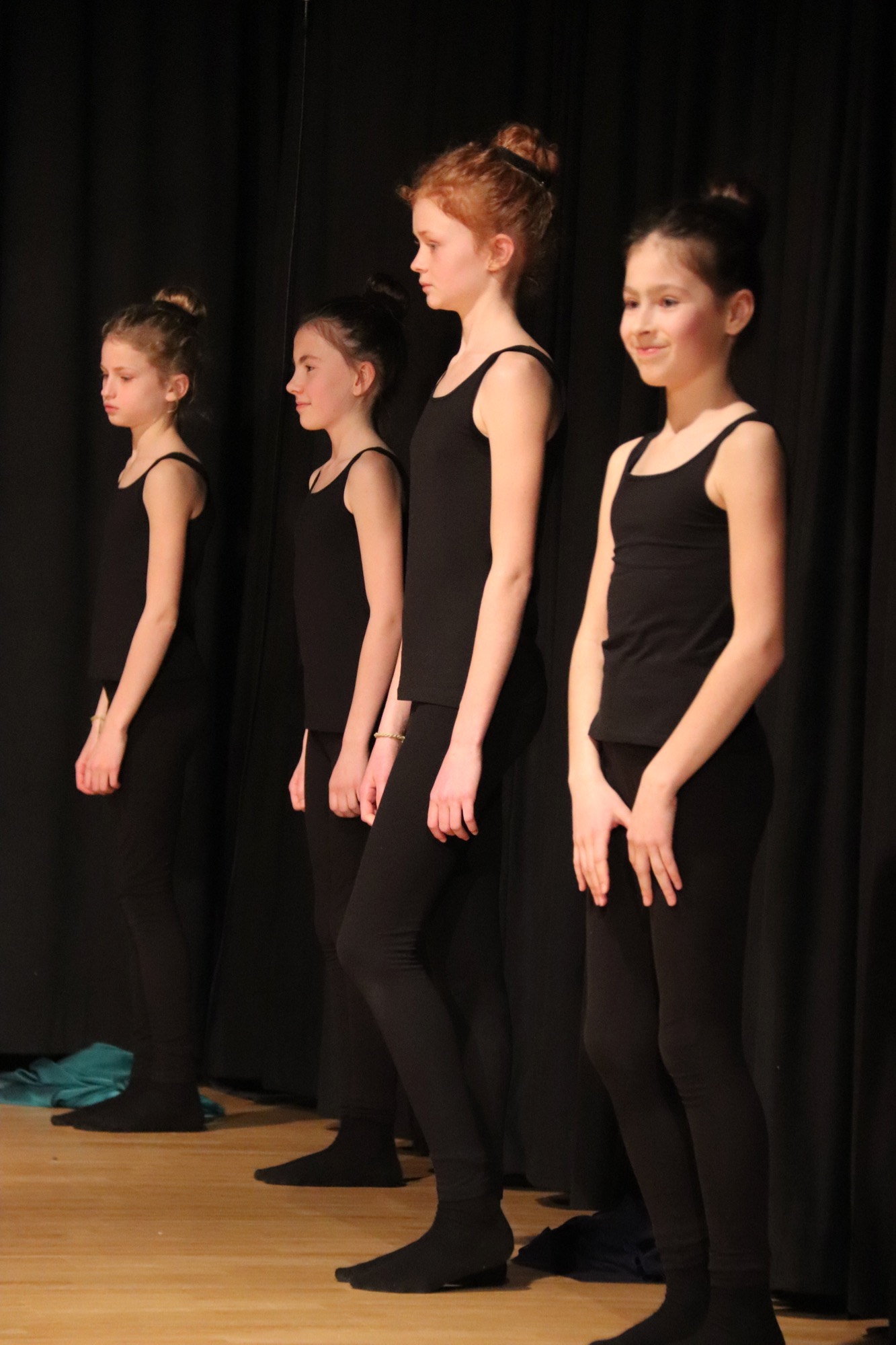 Auch Tanz ist immer wieder ein wichtiges Element des Kul(tur)inarischen Abends. Und unterschiedlicher konnten die Tanzstile der nun folgenden Künstler*innen kaum sein: Von Contemporary über Latin bis hin zu Hip-Hop entfaltete sich die Vielfalt dieser Kunstform auf der Bühne des Theaterraums. Zunächst führten die beiden Geschwisterpaare Hannah Diedrich (6d) und Nanni Diedrich (als Gast) sowie Anna und Kira Milke (6d) ihre selbst erarbeitete Choreographie „Aus der Spur“ auf und überzeugten mit ihrer anspruchsvollen und ausdrucksstarken Performance. Noah Quandt (7g), hessischer Vizemeister im Showtanz, brachte anschließend mit seinen wahrlich akrobatischen Hip-Hop-Tanzkünsten zum Song „Out Out“ den Theaterraum zum Beben. Hannah Toma (Q2) und der frühere Taunusgymnasiast Florian Menigat zeigten mit ihrer „Latin Ballroom Show“, wie anmutig und mitreißend moderner Paartanz aussehen kann.